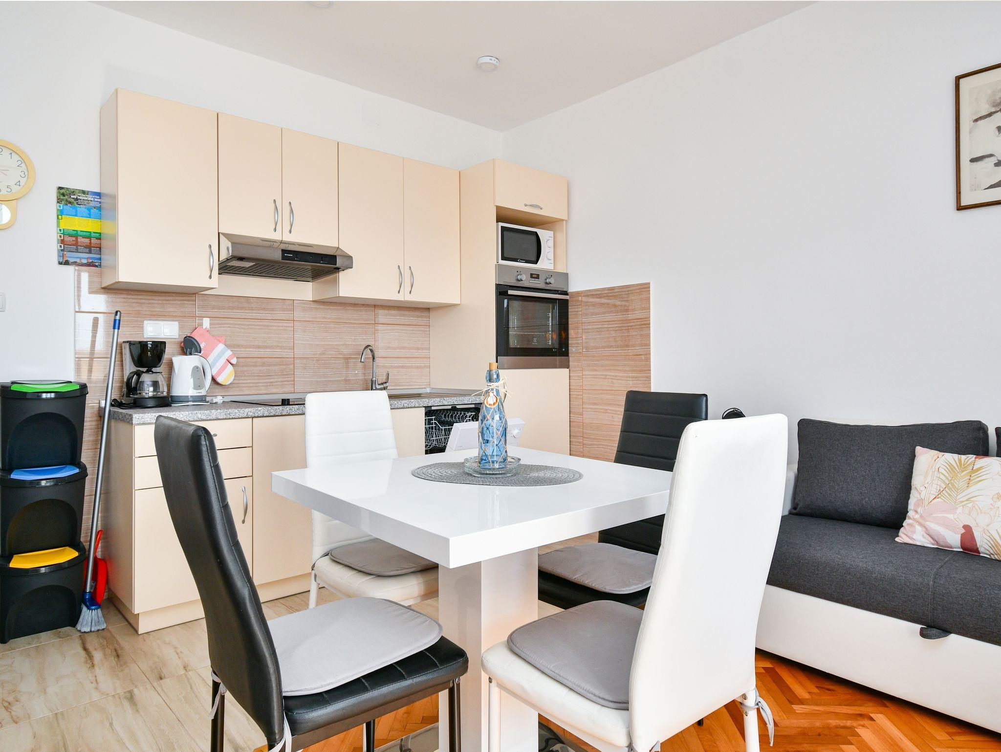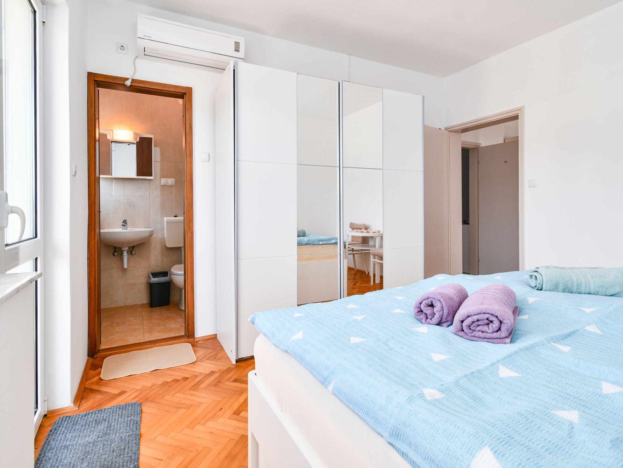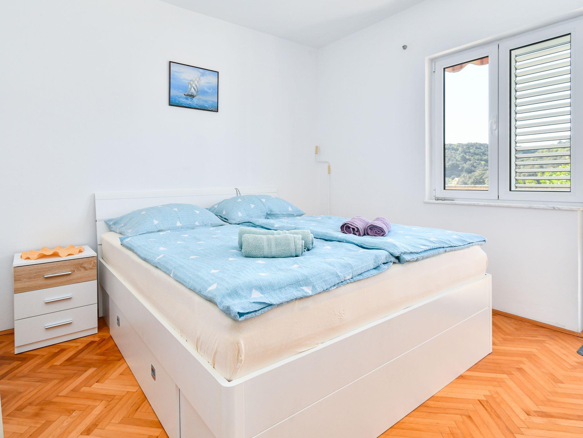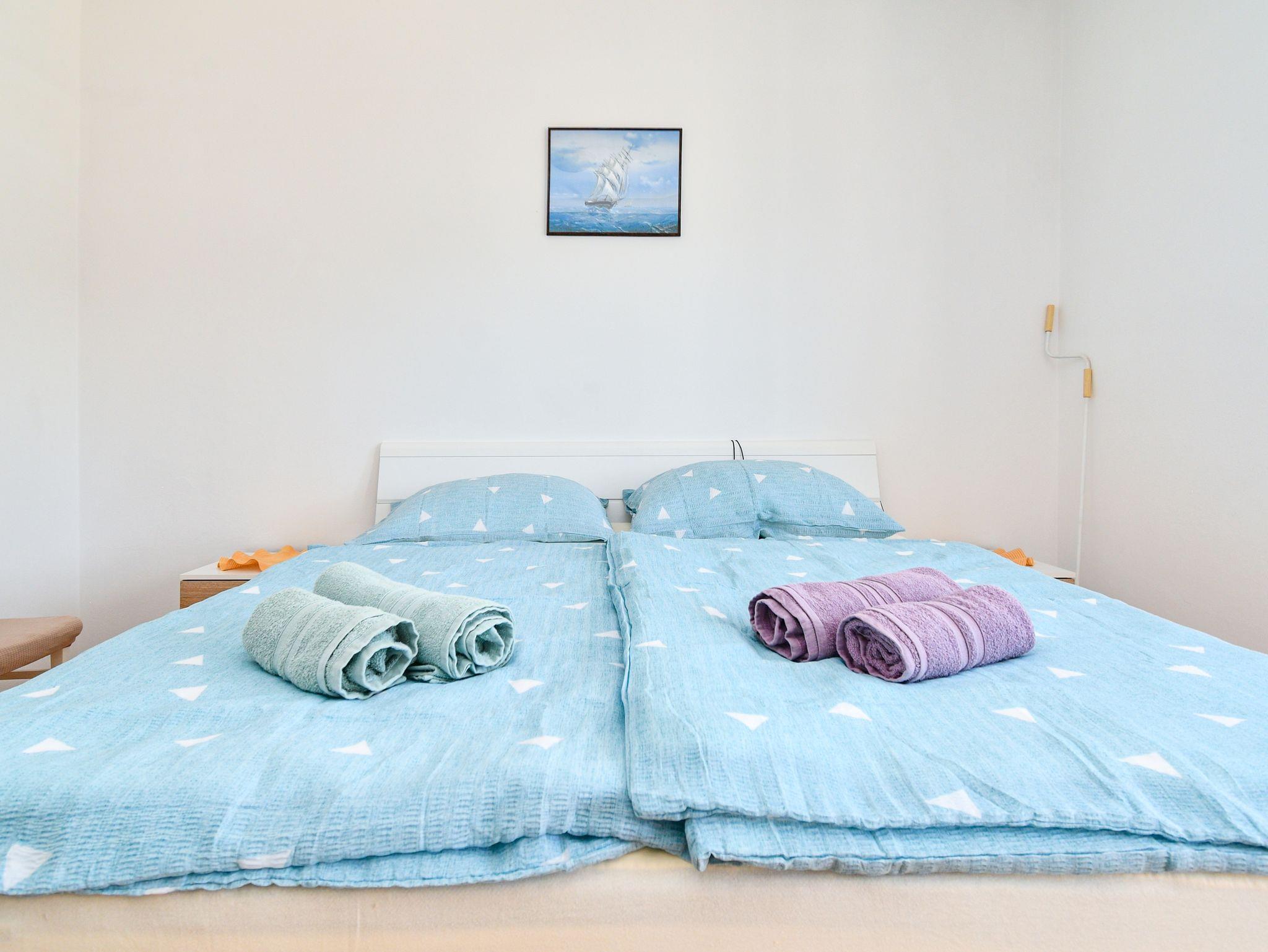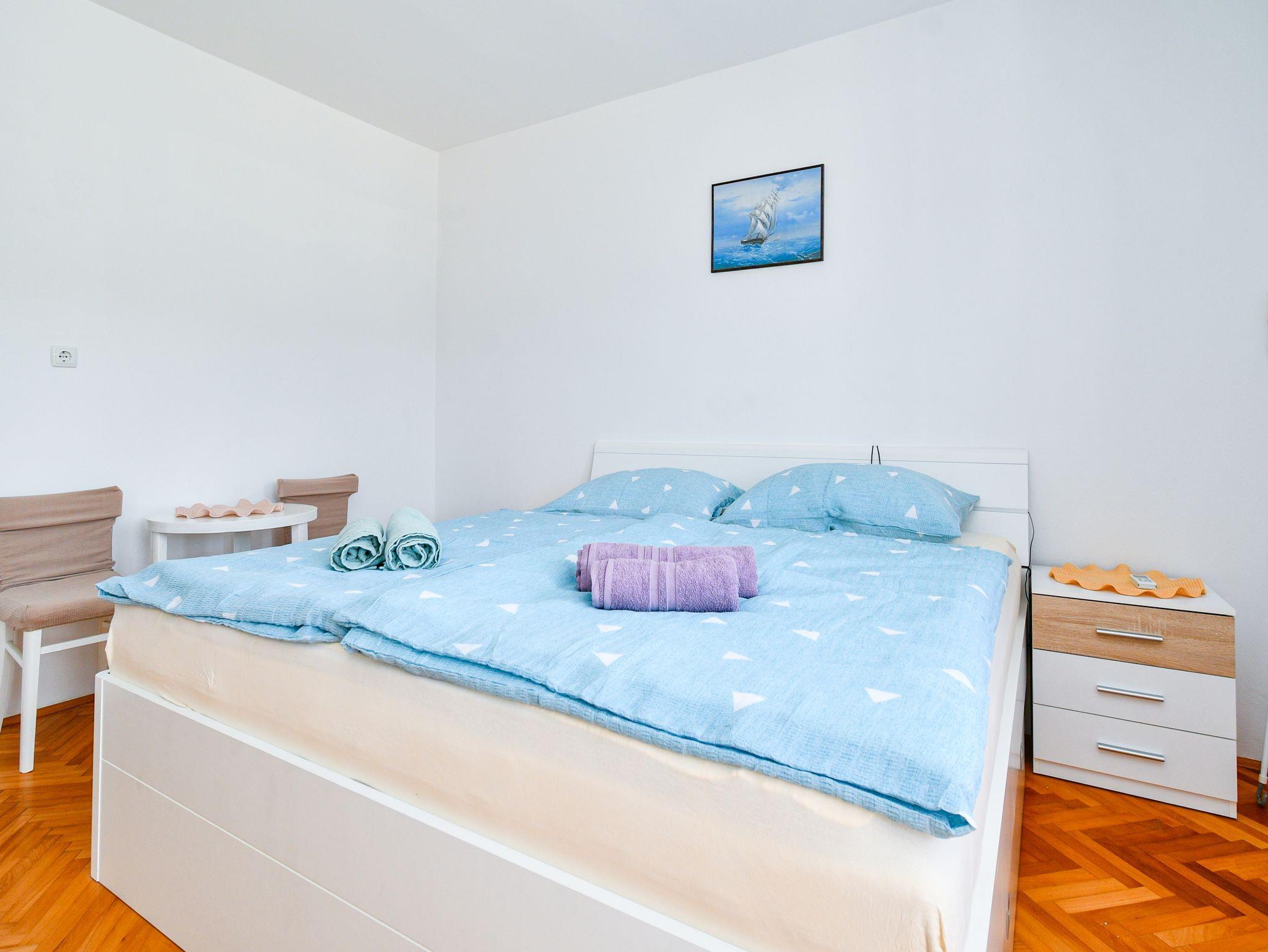 Ferienwohnung bietet Platz für 2 Gäste. Die Betten sind in Schlafzimmern, die es 1 gibt, innerhalb einer Gesamtfläche von 30m2, angeordnet. Die Gäste haben einen eigenen Balkon zur Verfügung, auf der sie in warmen Sommernächten genießen können. Das Apartment bietet Meerblick. Es ist erlaubt, Speisen auf dem Gemeinschafts-Grill vorzubereiten. In der Unterkunftseinheit besteht die Möglichkeit des Mitbringens von Haustieren gegen Aufpreis. IM PREIS INBEGRIFFEN: Kurtaxe, Endreinigung, Klimatisierung, Parkplatz, Internet, Bootsanlegeplatz, Liegestühle. VERBINDLICHE ZUSÄTZLICHE KOSTEN: Aufzahlung für Kurzaufenthalte (prozentualer Zuschlag pro Nächtigungsanzahl: 30% - 1, 20% - 2, 10% - 3). UNVERBINDLICHE ZUSÄTZLICHE KOSTEN: Frühstück (10,00 €, 50% Nachlass für Kinder zwischen 4 und 12 Jahren, Kinder bis 4 Jahre sind frei.), Haustiere (7,00 € pro Nacht). Die Verfügbarkeit zusätzlicher Dienstleistungen in Ihrem reservierten Termin und die Preise derselben (falls nicht aufgeführt) müssen im Voraus überprüft werden. Zusätzliche Dienstleistungen die in der Zahlungsaufforderung nicht aufgeführt sind werden direkt beim Vermieter bezahlt, angenommen der Gast nutzt auch diese.
