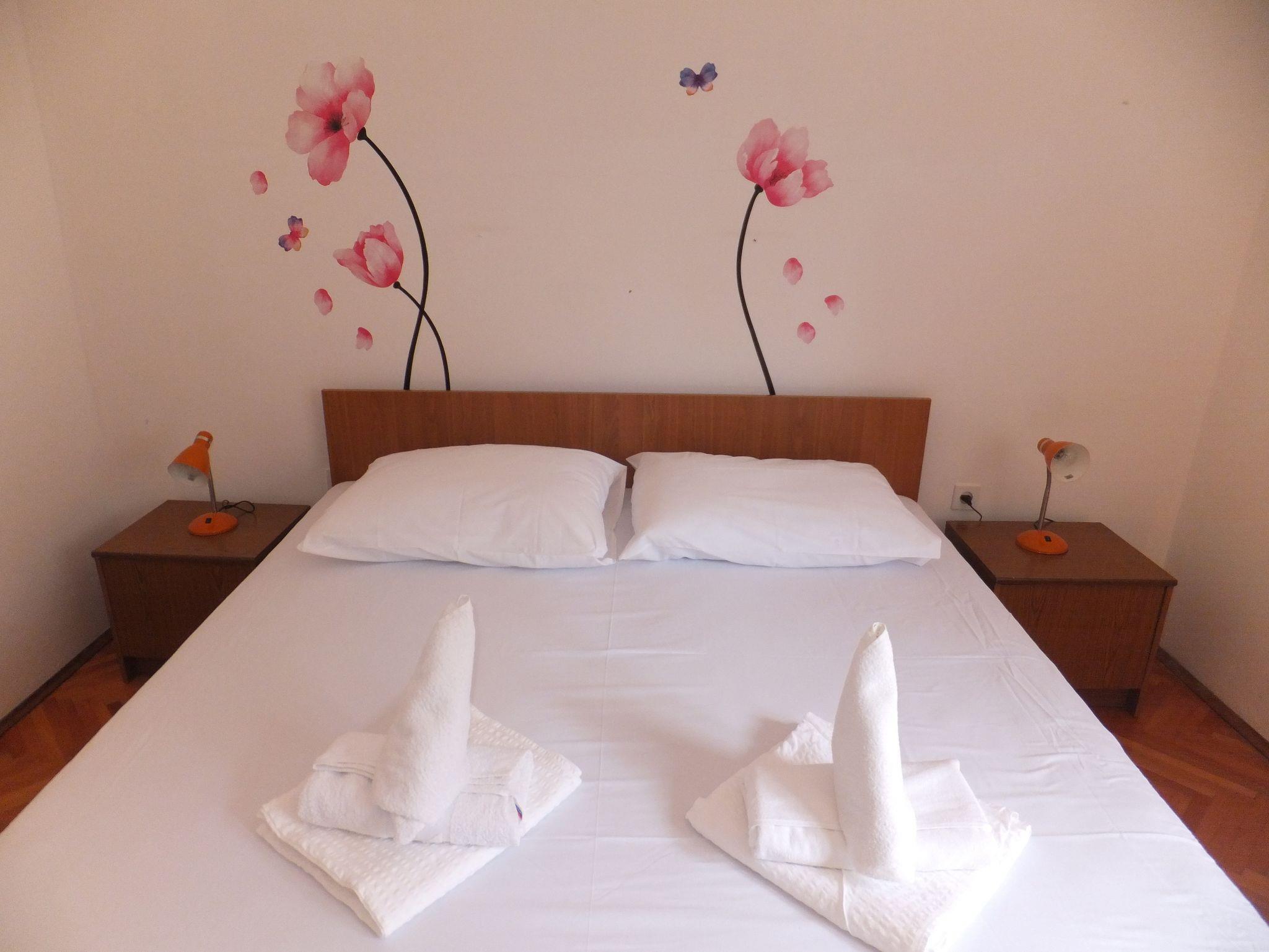 Ferienwohnung bietet Platz für 3 Gäste. Die Betten sind in Schlafzimmern, die es 1 gibt, und in Wohnzimmer, innerhalb einer Gesamtfläche von 36m2, angeordnet. Die Gäste haben einen eigenen Balkon zur Verfügung, auf der sie in warmen Sommernächten genießen können. Das Apartment bietet Meerblick. Es ist erlaubt, Speisen auf dem Gemeinschafts-Grill vorzubereiten. IM PREIS INBEGRIFFEN: Kurtaxe, Endreinigung, Klimatisierung, Parkplatz, Internet, Bügeleisen, Bügelbrett, Föhn, Liegestühle. VERBINDLICHE ZUSÄTZLICHE KOSTEN: Aufzahlung für Kurzaufenthalte (prozentualer Zuschlag pro Nächtigungsanzahl: 30% - 1, 20% - 2, 10% - 3). UNVERBINDLICHE ZUSÄTZLICHE KOSTEN: Bootsanlegeplatz (10,00 € pro Nacht), Zusatzbett (10,00 € pro Nacht). Die Verfügbarkeit zusätzlicher Dienstleistungen in Ihrem reservierten Termin und die Preise derselben (falls nicht aufgeführt) müssen im Voraus überprüft werden. Zusätzliche Dienstleistungen die in der Zahlungsaufforderung nicht aufgeführt sind werden direkt beim Vermieter bezahlt, angenommen der Gast nutzt auch diese.