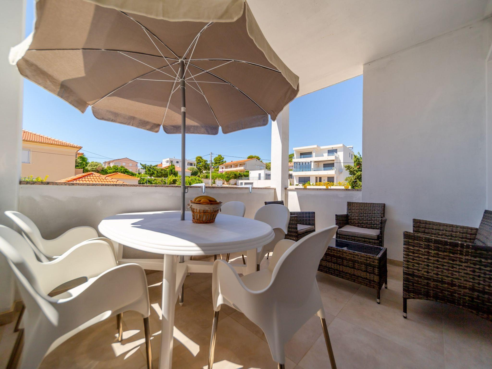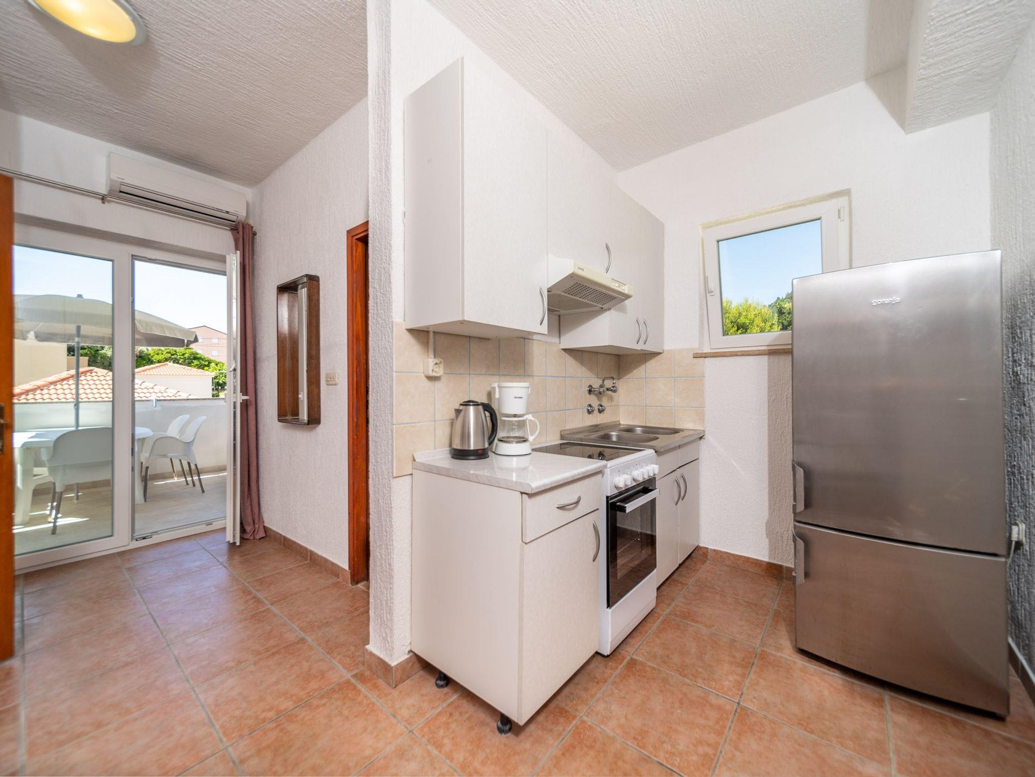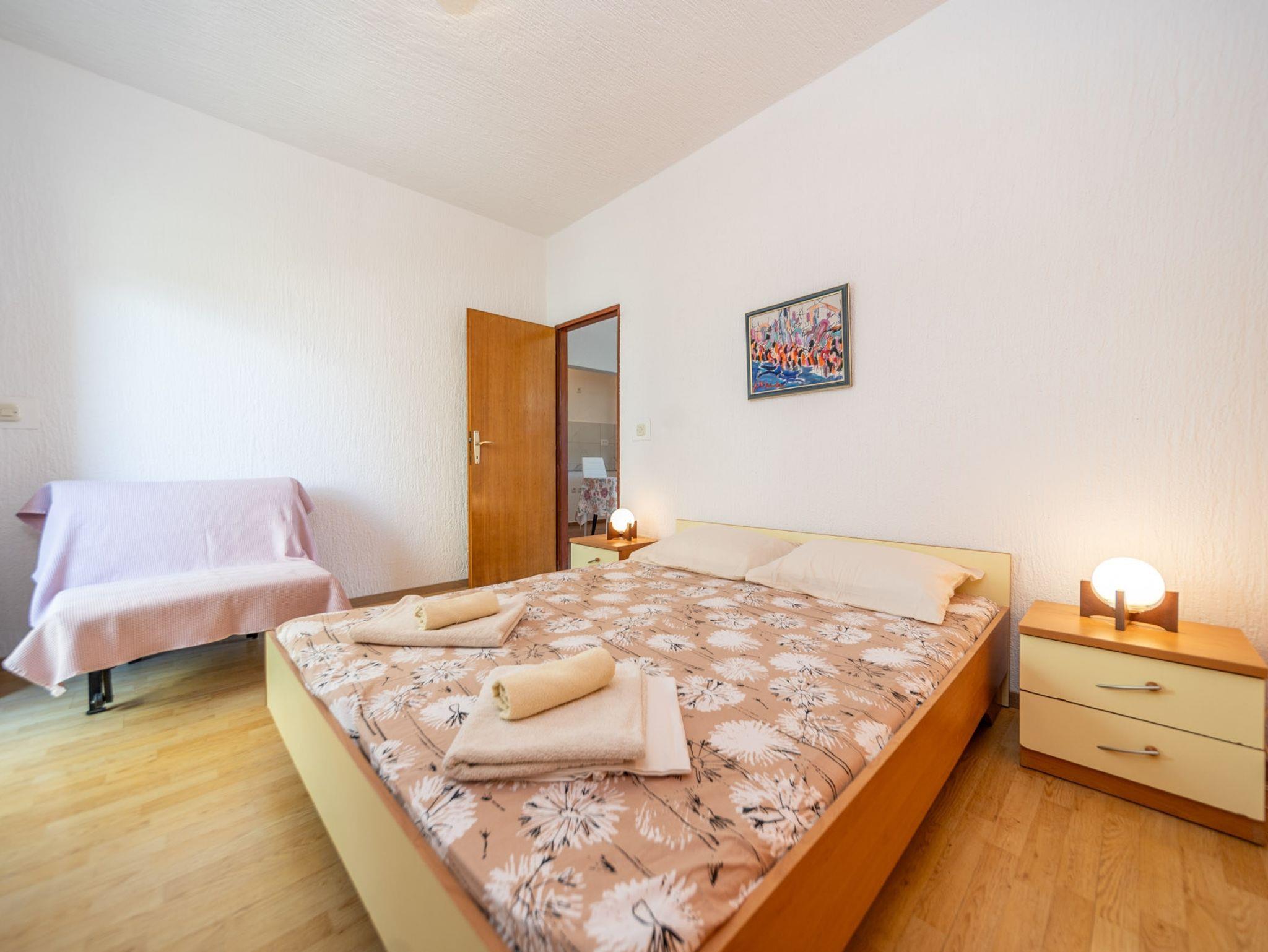 Ferienwohnung bietet Platz für 4 Gäste. Die Betten sind in Schlafzimmern, die es 2 gibt, innerhalb einer Gesamtfläche von 37m2, angeordnet. Die Gäste haben eine eigene Terrasse zur Verfügung, auf der sie in warmen Sommernächten genießen können. Es ist erlaubt, Speisen auf dem Gemeinschafts-Grill vorzubereiten. IM PREIS INBEGRIFFEN: Kurtaxe, Endreinigung, Klimatisierung, Parkplatz, Internet, Bügeleisen, Föhn. VERBINDLICHE ZUSÄTZLICHE KOSTEN: Aufzahlung für Kurzaufenthalte (prozentualer Zuschlag pro Nächtigungsanzahl: 30% - 1, 20% - 2, 10% - 3). UNVERBINDLICHE ZUSÄTZLICHE KOSTEN: Bootsanlegeplatz (10,00 € pro Nacht). Die Verfügbarkeit zusätzlicher Dienstleistungen in Ihrem reservierten Termin und die Preise derselben (falls nicht aufgeführt) müssen im Voraus überprüft werden. Zusätzliche Dienstleistungen die in der Zahlungsaufforderung nicht aufgeführt sind werden direkt beim Vermieter bezahlt, angenommen der Gast nutzt auch diese.