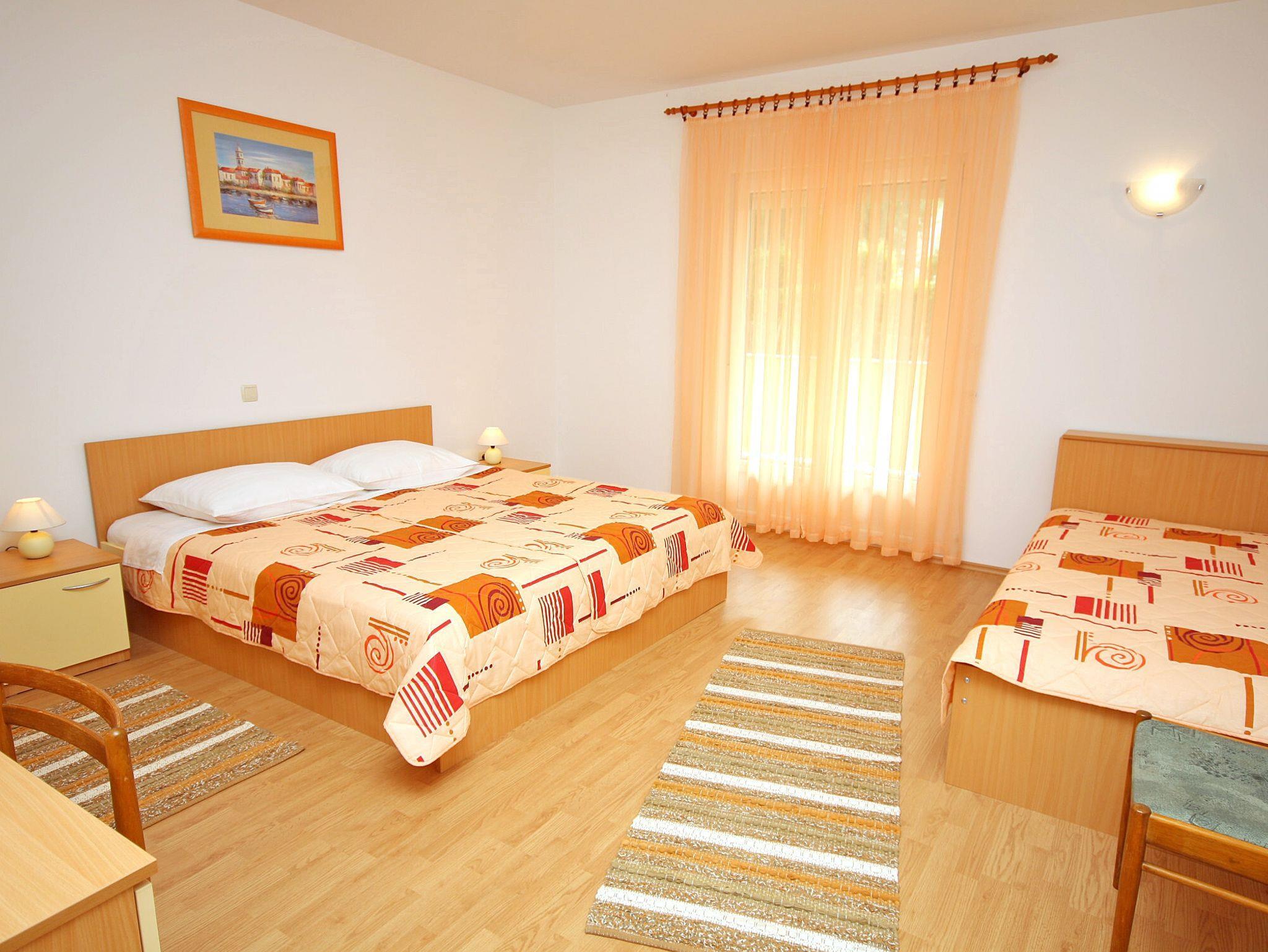 Ferienwohnung bietet Platz für 5 Gäste. Die Betten sind in Schlafzimmern, die es 2 gibt, innerhalb einer Gesamtfläche von 71m2, angeordnet. Die Gäste haben eine eigene Terrasse zur Verfügung, auf der sie in warmen Sommernächten genießen können. Es ist erlaubt, Speisen auf dem Gemeinschafts-Grill vorzubereiten. IM PREIS INBEGRIFFEN: Kurtaxe, Endreinigung, Klimatisierung, Parkplatz, Internet, Bügeleisen, Bügelbrett, Föhn. VERBINDLICHE ZUSÄTZLICHE KOSTEN: Aufzahlung für Kurzaufenthalte (prozentualer Zuschlag pro Nächtigungsanzahl: 30% - 1, 20% - 2, 10% - 3). UNVERBINDLICHE ZUSÄTZLICHE KOSTEN: Wäschewaschen (10,00 € Waschen), Bootsanlegeplatz (10,00 € pro Nacht). Die Verfügbarkeit zusätzlicher Dienstleistungen in Ihrem reservierten Termin und die Preise derselben (falls nicht aufgeführt) müssen im Voraus überprüft werden. Zusätzliche Dienstleistungen die in der Zahlungsaufforderung nicht aufgeführt sind werden direkt beim Vermieter bezahlt, angenommen der Gast nutzt auch diese.