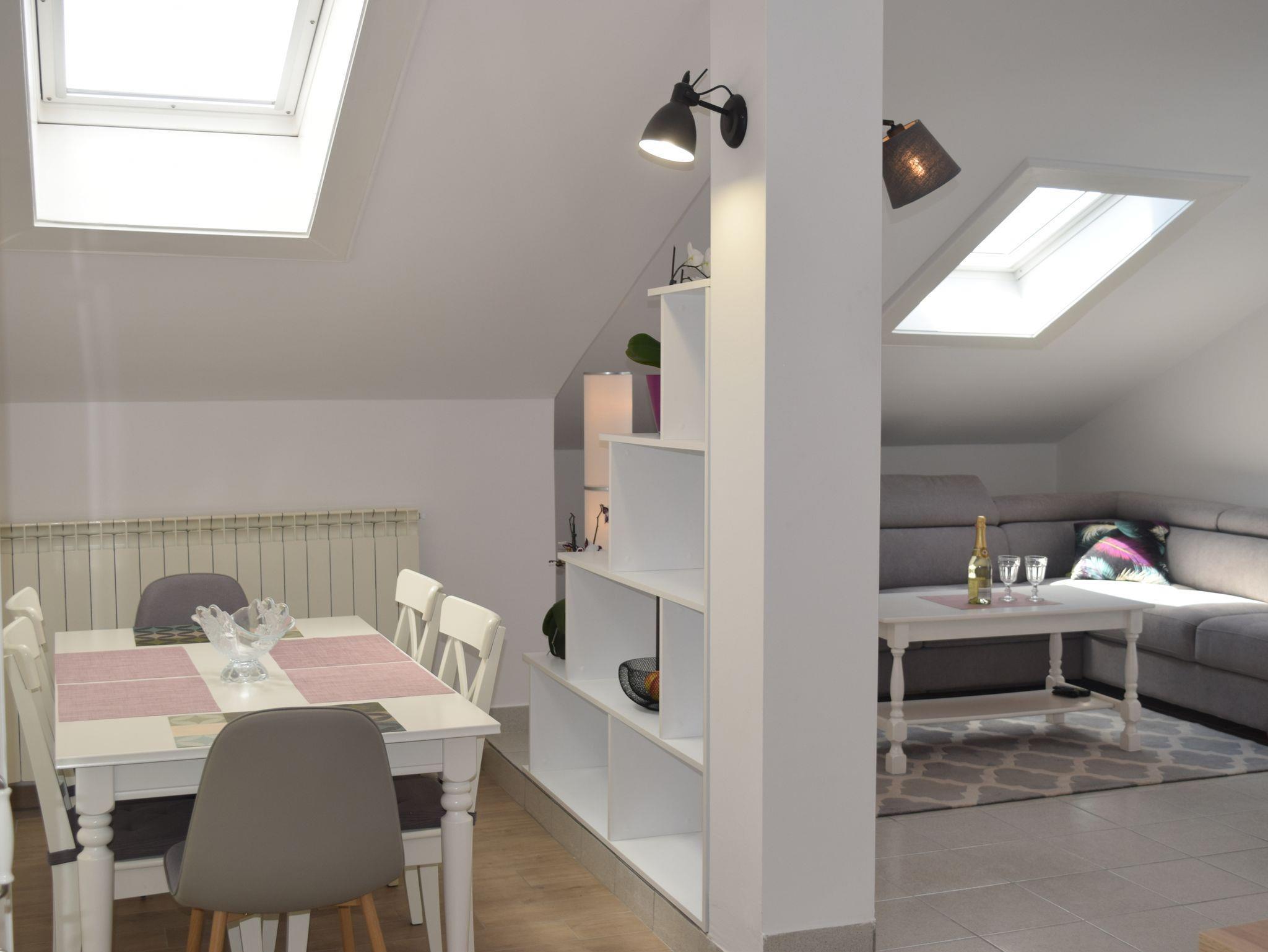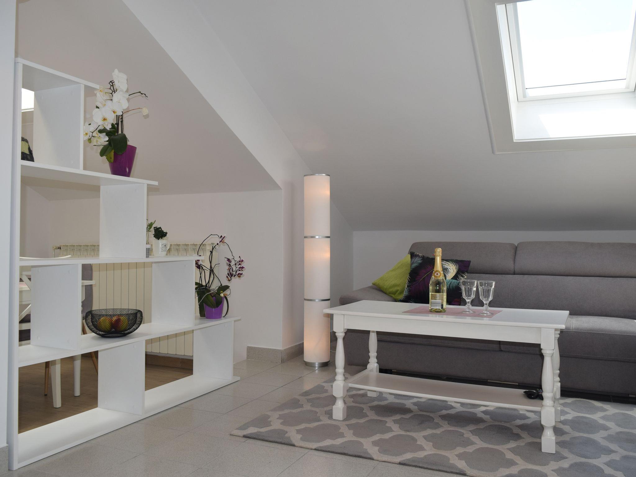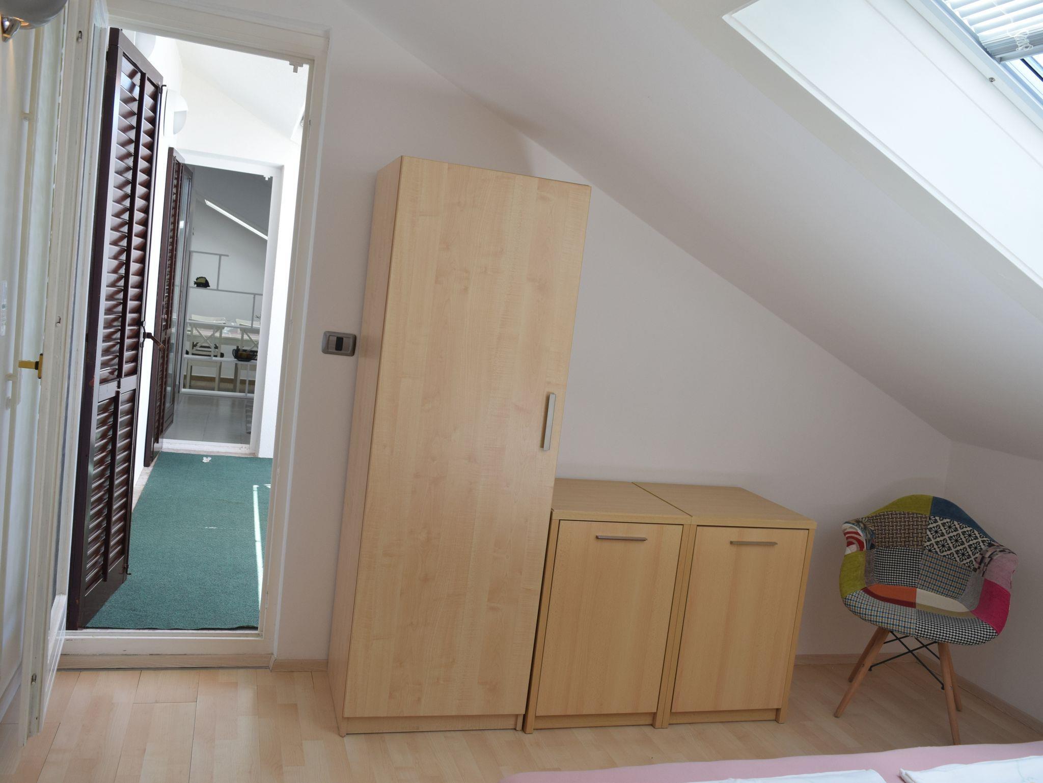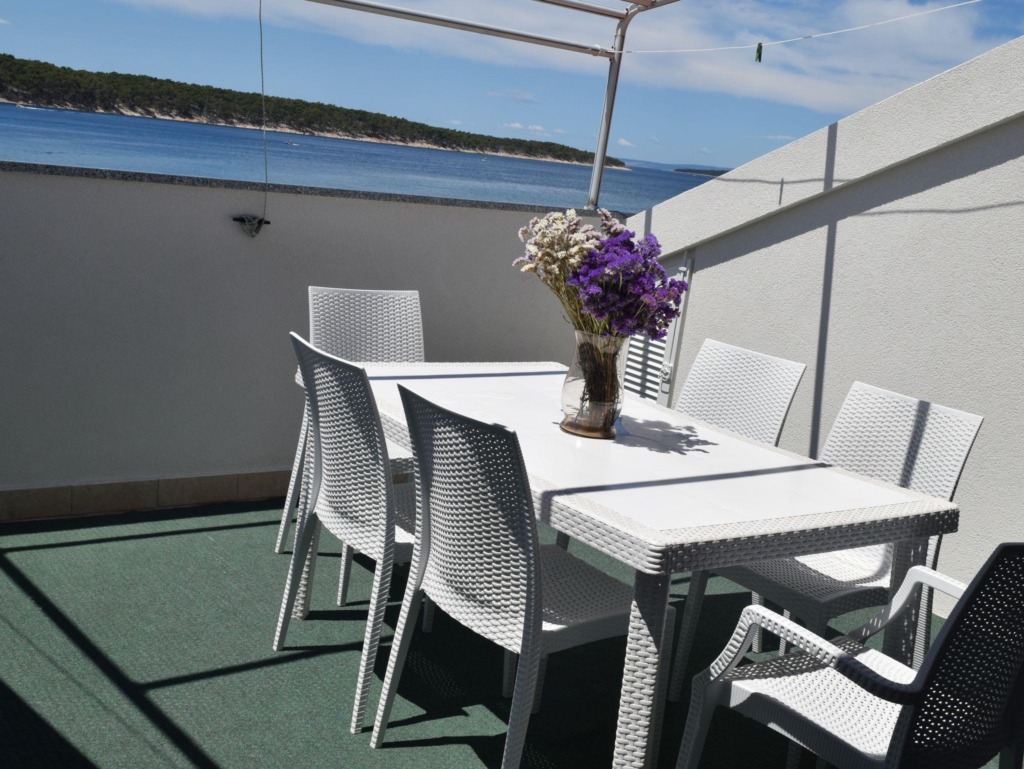 Ferienwohnung bietet Platz für 6 Gäste. Die Betten sind in Schlafzimmern, die es 3 gibt, innerhalb einer Gesamtfläche von 94m2, angeordnet. Die Gäste haben eine eigene Terrasse zur Verfügung, auf der sie in warmen Sommernächten genießen können. Das Apartment bietet Meerblick. Es ist erlaubt, Speisen auf dem Gemeinschafts-Grill vorzubereiten. IM PREIS INBEGRIFFEN: Kurtaxe, Endreinigung, Klimatisierung, Parkplatz, Internet, Kinderbett. VERBINDLICHE ZUSÄTZLICHE KOSTEN: Aufzahlung für Kurzaufenthalte (prozentualer Zuschlag pro Nächtigungsanzahl: 30% - 1, 20% - 2, 10% - 3). UNVERBINDLICHE ZUSÄTZLICHE KOSTEN: Frühstück (10,00 €, 50% Nachlass für Kinder zwischen 4 und 12 Jahren, Kinder bis 4 Jahre sind frei.), Wäschewaschen (3,00 € Waschen), Bootsanlegeplatz (10,00 € pro Nacht). Die Verfügbarkeit zusätzlicher Dienstleistungen in Ihrem reservierten Termin und die Preise derselben (falls nicht aufgeführt) müssen im Voraus überprüft werden. Zusätzliche Dienstleistungen die in der Zahlungsaufforderung nicht aufgeführt sind werden direkt beim Vermieter bezahlt, angenommen der Gast nutzt auch diese.