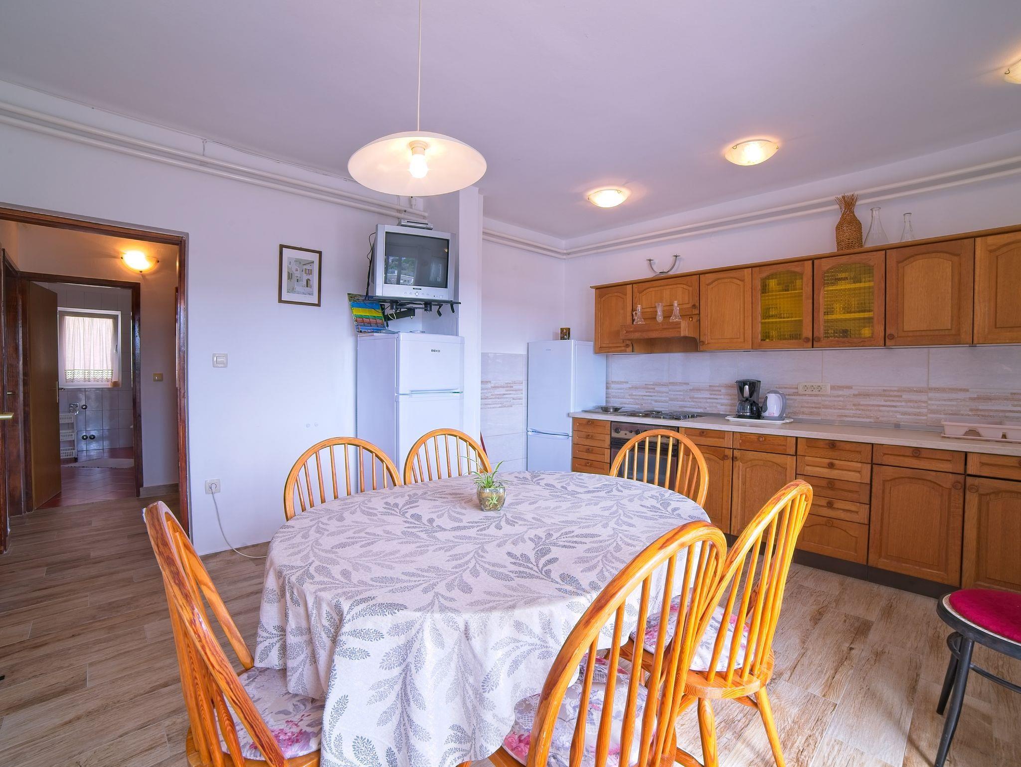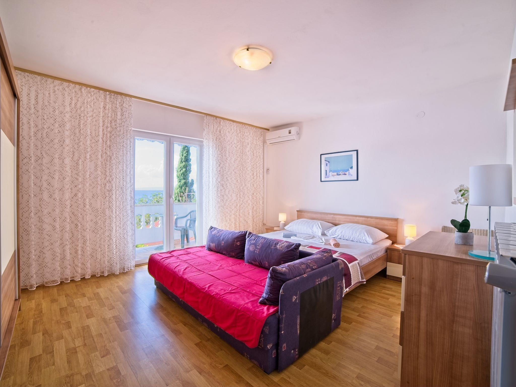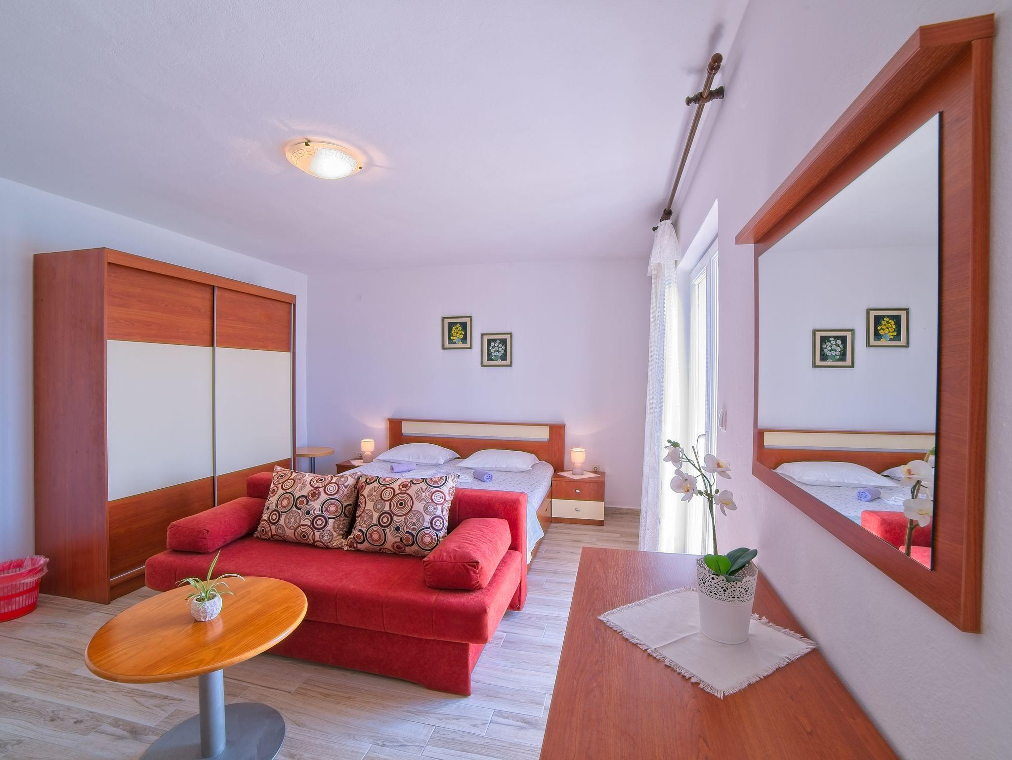 Ferienwohnung bietet Platz für 5 Gäste. Die Betten sind in Schlafzimmern, die es 2 gibt, innerhalb einer Gesamtfläche von 46m2, angeordnet. Die Gäste haben einen eigenen Balkon zur Verfügung, auf der sie in warmen Sommernächten genießen können. Das Apartment bietet Meerblick. Es ist erlaubt, Speisen auf dem Gemeinschafts-Grill vorzubereiten. IM PREIS INBEGRIFFEN: Kurtaxe, Endreinigung, Klimatisierung, Parkplatz, Internet, Bootsanlegeplatz, Liegestühle. VERBINDLICHE ZUSÄTZLICHE KOSTEN: Aufzahlung für Kurzaufenthalte (prozentualer Zuschlag pro Nächtigungsanzahl: 30% - 1, 20% - 2, 10% - 3). UNVERBINDLICHE ZUSÄTZLICHE KOSTEN: Wäschewaschen (5,00 € Waschen). Die Verfügbarkeit zusätzlicher Dienstleistungen in Ihrem reservierten Termin und die Preise derselben (falls nicht aufgeführt) müssen im Voraus überprüft werden. Zusätzliche Dienstleistungen die in der Zahlungsaufforderung nicht aufgeführt sind werden direkt beim Vermieter bezahlt, angenommen der Gast nutzt auch diese. Ermäßigung auf den Grundpreis: Gratistag 14=13 (bei einem Aufenthalt von 14 Tagen oder mehr erhalten Sie einen Gratistag für den Aufenthalt bis 31.12.26).