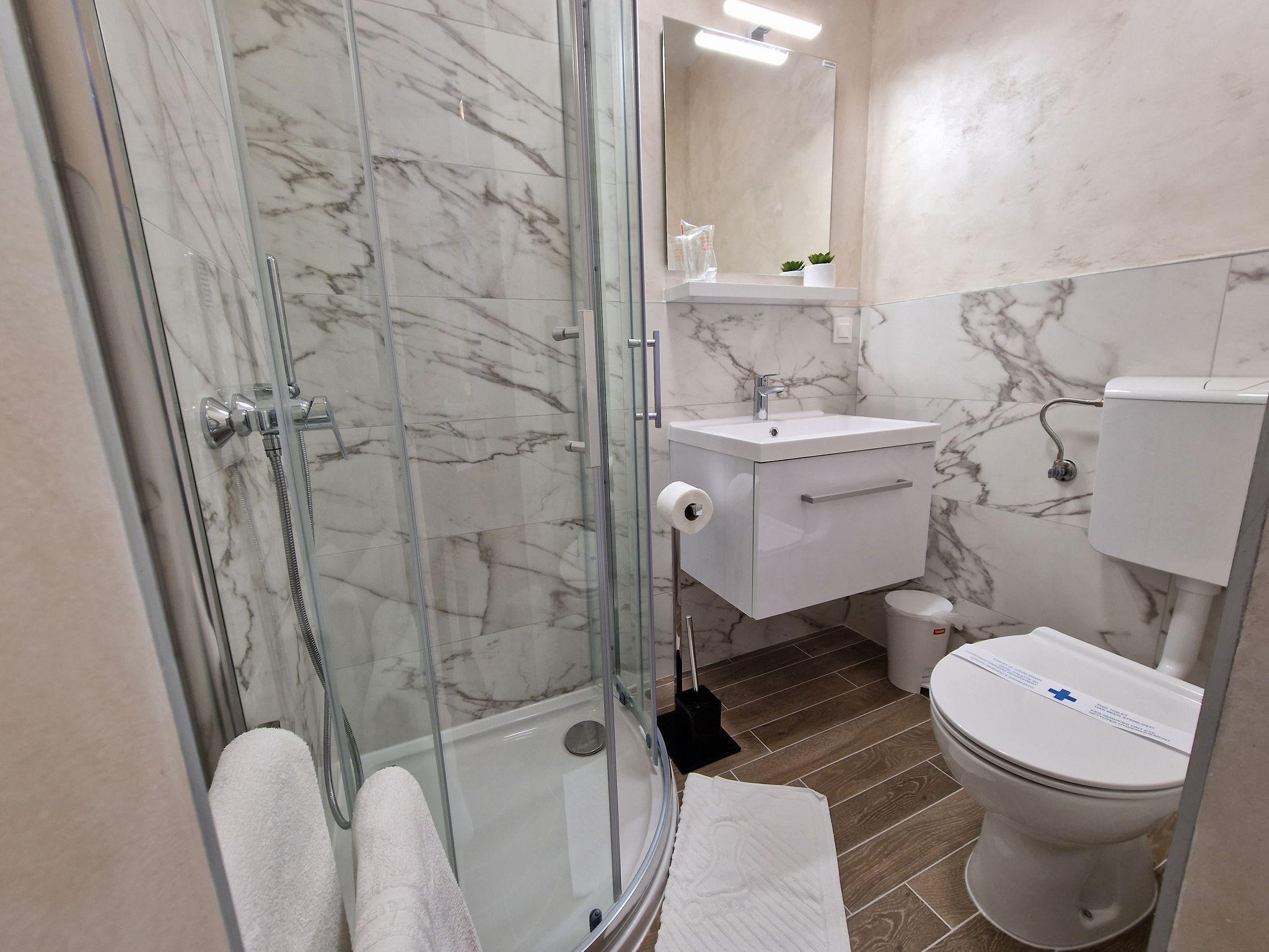 Studio bietet Platz für 2 Gäste. Die Betten sind in Schlafzimmern, die es 1 gibt, innerhalb einer Gesamtfläche von 14m2, angeordnet. Die Gäste haben eine eigene Terrasse zur Verfügung, auf der sie in warmen Sommernächten genießen können. Das Studio-Apartment bietet Meerblick. Es ist erlaubt, Speisen auf dem Gemeinschafts-Grill vorzubereiten. In der Unterkunftseinheit besteht die Möglichkeit des Mitbringens von Haustieren gegen Aufpreis. IM PREIS INBEGRIFFEN: Kurtaxe, Endreinigung, Klimatisierung, Parkplatz, Garage, Internet, Bügeleisen, Bügelbrett, Föhn. VERBINDLICHE ZUSÄTZLICHE KOSTEN: Aufzahlung für Kurzaufenthalte (prozentualer Zuschlag pro Nächtigungsanzahl: 30% - 1, 20% - 2, 10% - 3). UNVERBINDLICHE ZUSÄTZLICHE KOSTEN: Frühstück (8,00 €, 50% Nachlass für Kinder zwischen 4 und 12 Jahren, Kinder bis 4 Jahre sind frei.), Bootsanlegeplatz (10,00 € pro Nacht), Haustiere (5,00 € pro Nacht). Die Verfügbarkeit zusätzlicher Dienstleistungen in Ihrem reservierten Termin und die Preise derselben (falls nicht aufgeführt) müssen im Voraus überprüft werden. Zusätzliche Dienstleistungen die in der Zahlungsaufforderung nicht aufgeführt sind werden direkt beim Vermieter bezahlt, angenommen der Gast nutzt auch diese.