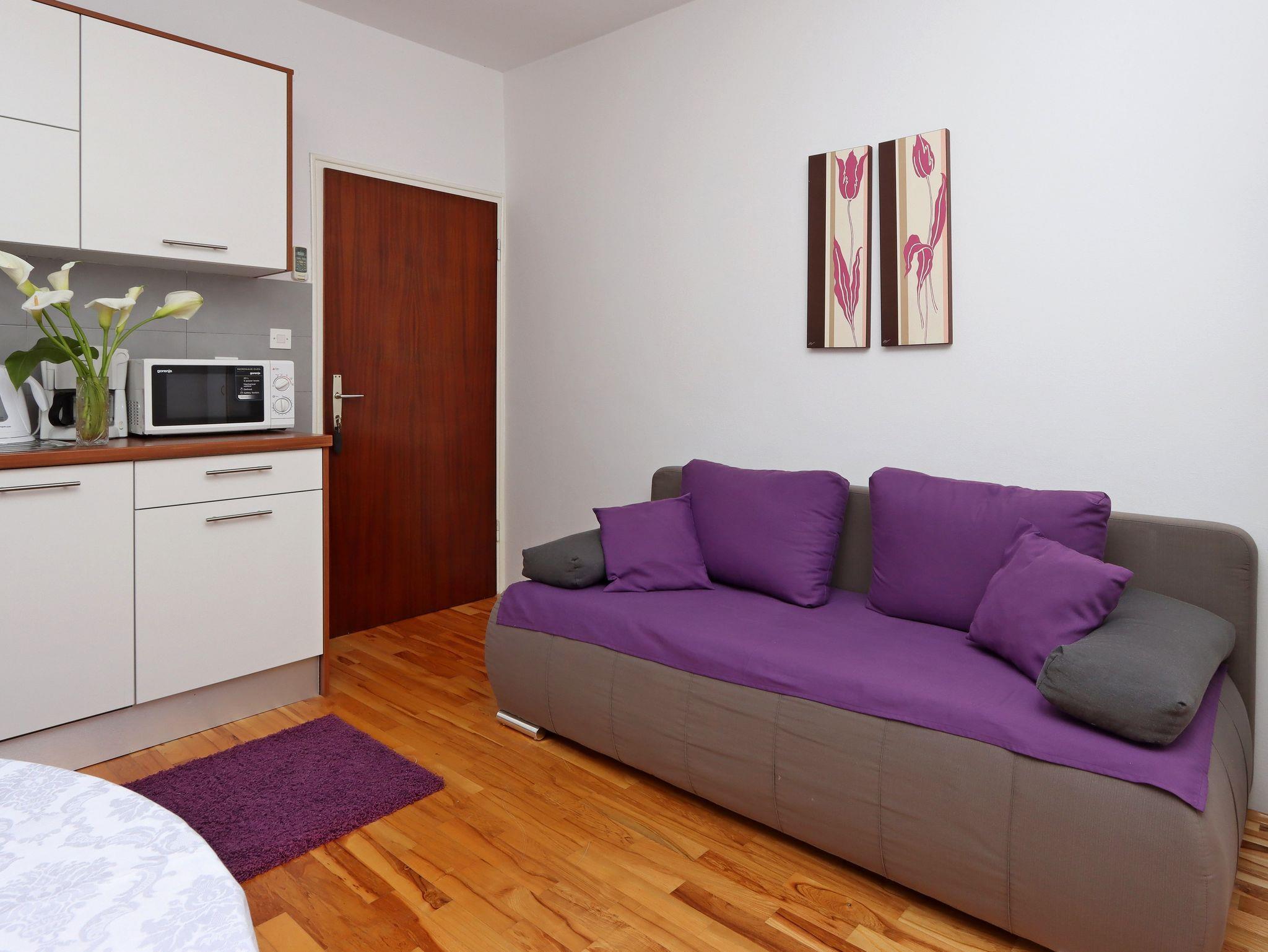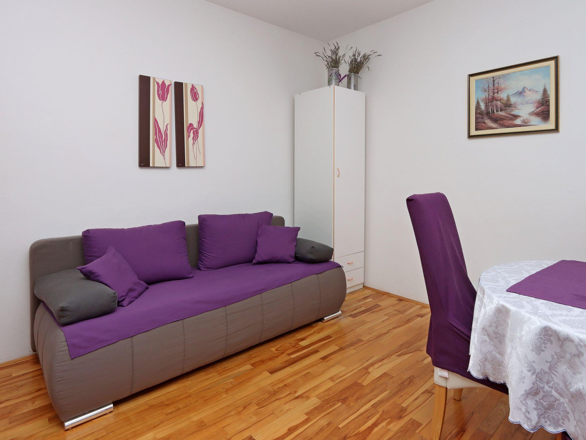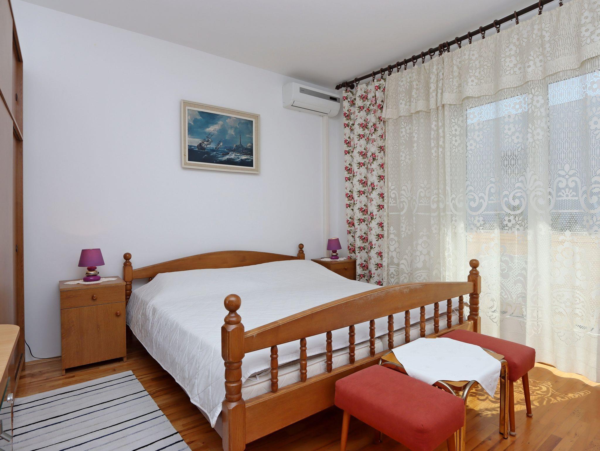 Ferienwohnung bietet Platz für 4 Gäste. Die Betten sind in Schlafzimmern, die es 1 gibt, und in Wohnzimmer, innerhalb einer Gesamtfläche von 35m2, angeordnet. Die Gäste haben einen eigenen Balkon zur Verfügung, auf der sie in warmen Sommernächten genießen können. Es ist erlaubt, Speisen auf dem Gemeinschafts-Grill vorzubereiten. IM PREIS INBEGRIFFEN: Kurtaxe, Endreinigung, Parkplatz, Internet, Bootsanlegeplatz, Kinderbett, Bügeleisen, Bügelbrett, Föhn, Sonnenschirm. VERBINDLICHE ZUSÄTZLICHE KOSTEN: Aufzahlung für Kurzaufenthalte (prozentualer Zuschlag pro Nächtigungsanzahl: 30% - 1, 20% - 2, 10% - 3). UNVERBINDLICHE ZUSÄTZLICHE KOSTEN: Frühstück (10,00 €, 50% Nachlass für Kinder zwischen 4 und 12 Jahren, Kinder bis 4 Jahre sind frei.), Klimatisierung (5,00 € pro Nacht). Die Verfügbarkeit zusätzlicher Dienstleistungen in Ihrem reservierten Termin und die Preise derselben (falls nicht aufgeführt) müssen im Voraus überprüft werden. Zusätzliche Dienstleistungen die in der Zahlungsaufforderung nicht aufgeführt sind werden direkt beim Vermieter bezahlt, angenommen der Gast nutzt auch diese.