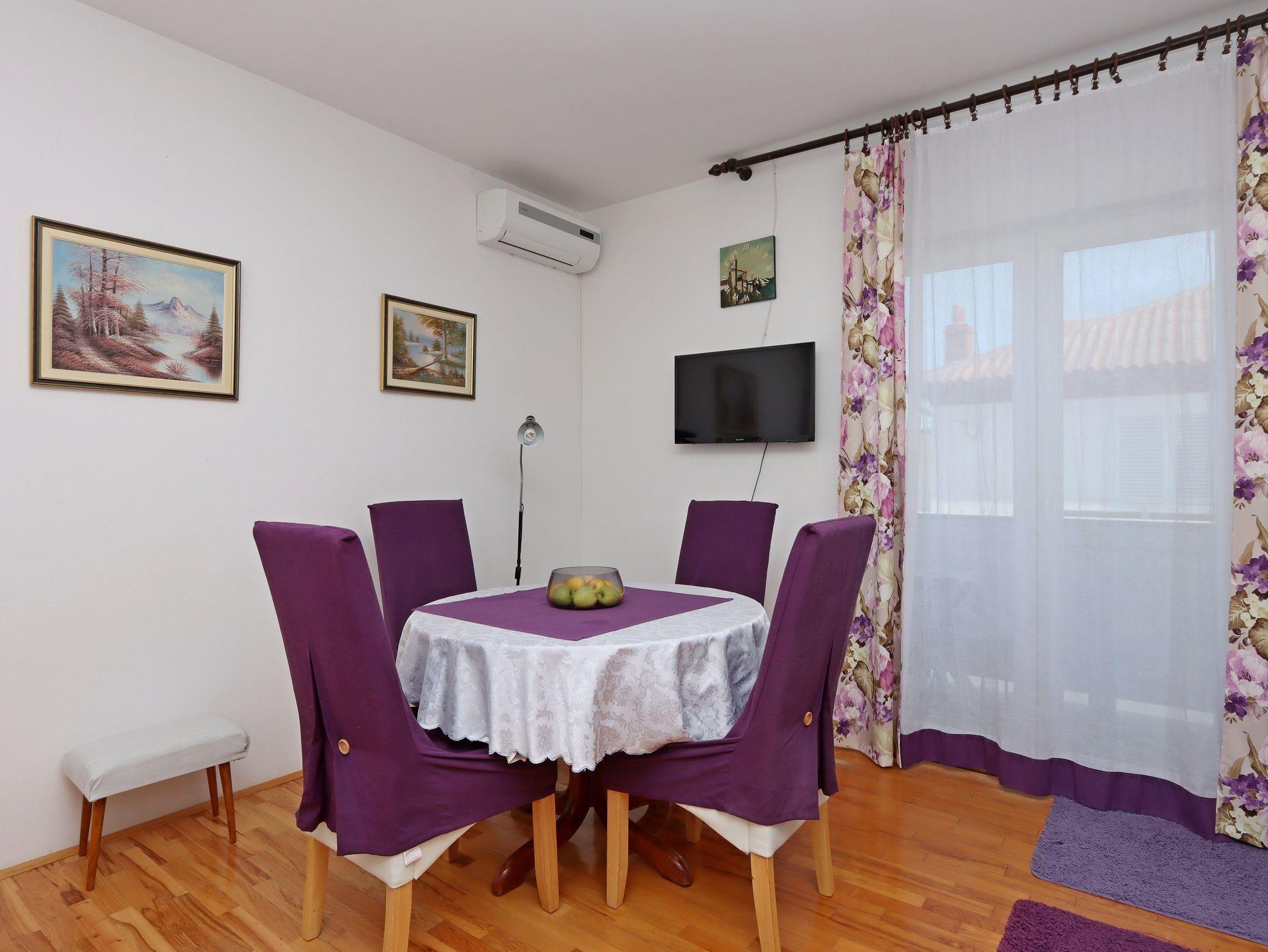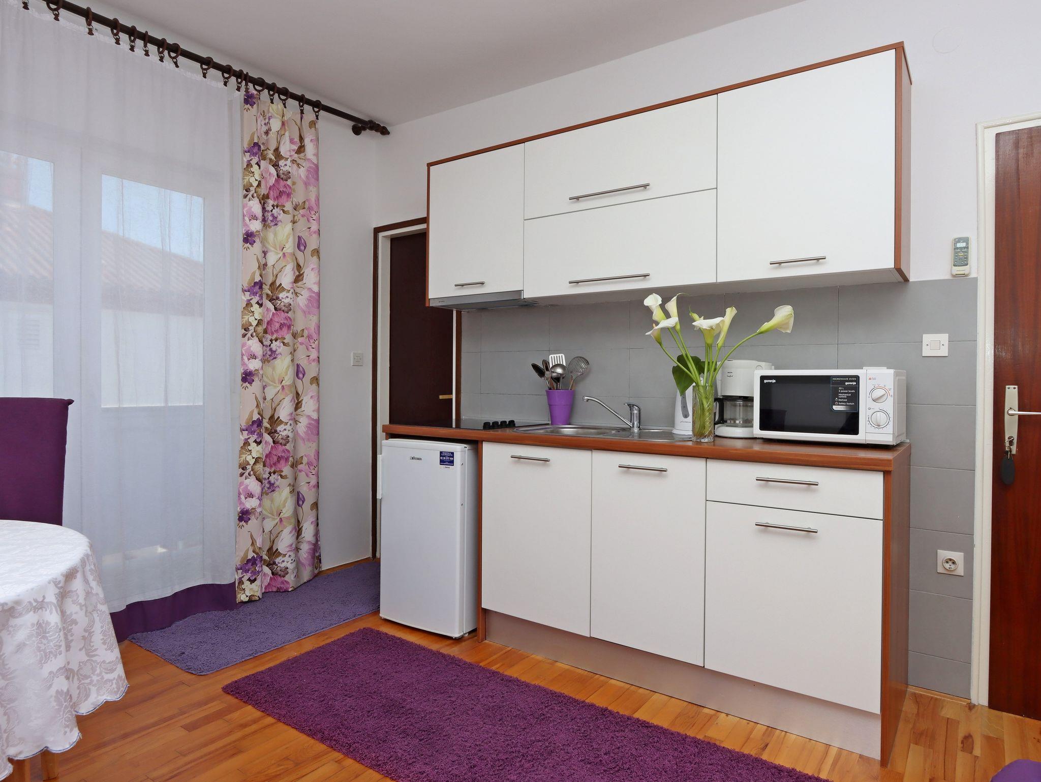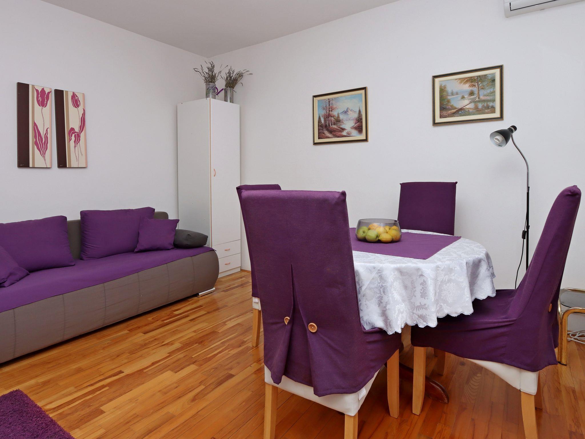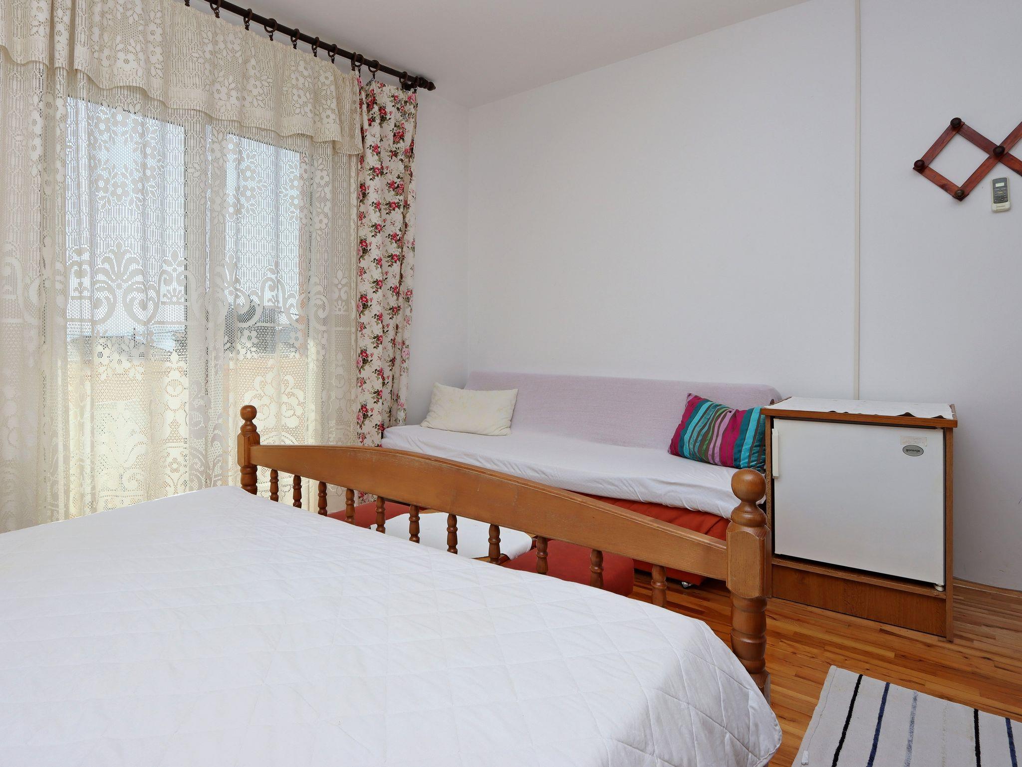 Ferienwohnung bietet Platz für 4 Gäste. Die Betten sind in Schlafzimmern, die es 1 gibt, und in Wohnzimmer, innerhalb einer Gesamtfläche von 35m2, angeordnet. Die Gäste haben einen eigenen Balkon zur Verfügung, auf der sie in warmen Sommernächten genießen können. Es ist erlaubt, Speisen auf dem Gemeinschafts-Grill vorzubereiten. IM PREIS INBEGRIFFEN: Kurtaxe, Endreinigung, Parkplatz, Internet, Bootsanlegeplatz, Kinderbett, Bügeleisen, Bügelbrett, Föhn, Sonnenschirm. VERBINDLICHE ZUSÄTZLICHE KOSTEN: Aufzahlung für Kurzaufenthalte (prozentualer Zuschlag pro Nächtigungsanzahl: 30% - 1, 20% - 2, 10% - 3). UNVERBINDLICHE ZUSÄTZLICHE KOSTEN: Frühstück (10,00 €, 50% Nachlass für Kinder zwischen 4 und 12 Jahren, Kinder bis 4 Jahre sind frei.), Klimatisierung (5,00 € pro Nacht). Die Verfügbarkeit zusätzlicher Dienstleistungen in Ihrem reservierten Termin und die Preise derselben (falls nicht aufgeführt) müssen im Voraus überprüft werden. Zusätzliche Dienstleistungen die in der Zahlungsaufforderung nicht aufgeführt sind werden direkt beim Vermieter bezahlt, angenommen der Gast nutzt auch diese.