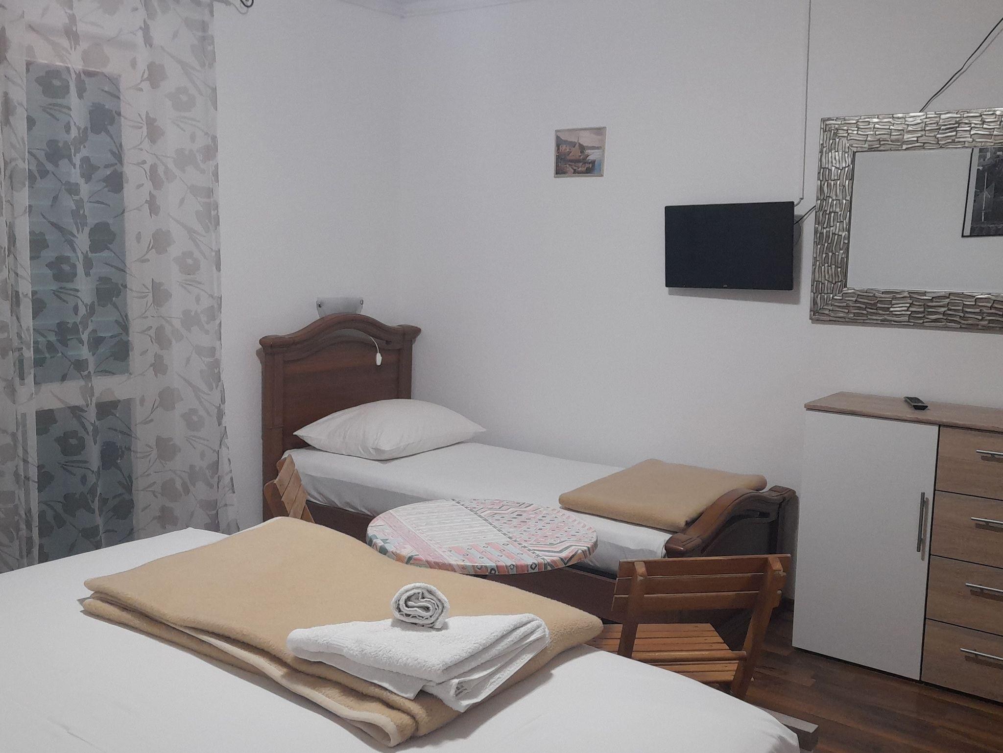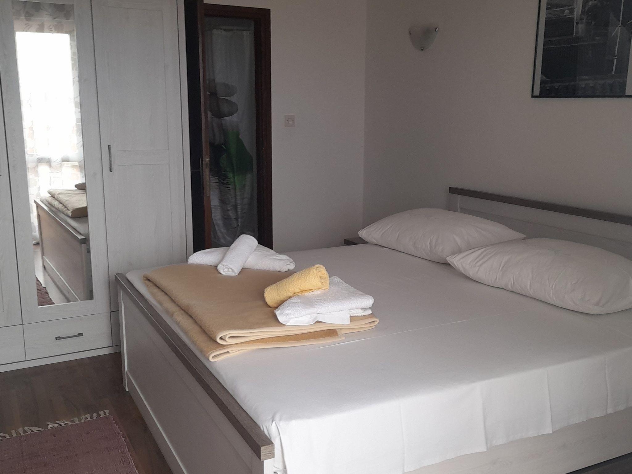 Zimmer bietet Platz für 3 Gäste. Die Betten sind in Schlafzimmern, die es 1 gibt, innerhalb einer Gesamtfläche von 19m2, angeordnet. Die Nutzung einer gemeinsamen Küche ist möglich. Die Gäste haben eine eigene Terrasse zur Verfügung, auf der sie in warmen Sommernächten genießen können. Das Zimmer bietet Meerblick. Es ist erlaubt, Speisen auf dem Gemeinschafts-Grill vorzubereiten. In der Unterkunftseinheit besteht die Möglichkeit des Mitbringens von Haustieren gegen Aufpreis. Die reservierte Unterkunftseinheit ist ein Zimmer mit eigenem Badezimmer mit der Möglichkeit der Nutzung einer Küche ohne Zuzahlung. IM PREIS INBEGRIFFEN: Kurtaxe, Endreinigung, gemeinsame Küche, Parkplatz, Internet. VERBINDLICHE ZUSÄTZLICHE KOSTEN: Aufzahlung für Kurzaufenthalte (prozentualer Zuschlag pro Nächtigungsanzahl: 30% - 1, 20% - 2, 10% - 3). UNVERBINDLICHE ZUSÄTZLICHE KOSTEN: Haustiere (5,00 € pro Nacht). Die Verfügbarkeit zusätzlicher Dienstleistungen in Ihrem reservierten Termin und die Preise derselben (falls nicht aufgeführt) müssen im Voraus überprüft werden. Zusätzliche Dienstleistungen die in der Zahlungsaufforderung nicht aufgeführt sind werden direkt beim Vermieter bezahlt, angenommen der Gast nutzt auch diese. Ermäßigung auf den Grundpreis: Gratistag 14=13 (bei einem Aufenthalt von 14 Tagen oder mehr erhalten Sie einen Gratistag für den Aufenthalt bis 31.12.26).