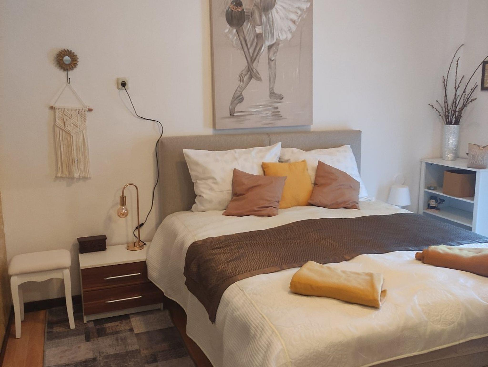 Ferienwohnung bietet Platz für 4 Gäste. Die Betten sind in Schlafzimmern, die es 1 gibt, und in Wohnzimmer, innerhalb einer Gesamtfläche von 44m2, angeordnet. Die Gäste haben eine eigene Terrasse zur Verfügung, auf der sie in warmen Sommernächten genießen können. Es ist erlaubt, Speisen auf dem Gemeinschafts-Grill vorzubereiten. In der Unterkunftseinheit besteht die Möglichkeit des Mitbringens von Haustieren gegen Aufpreis. IM PREIS INBEGRIFFEN: Kurtaxe, Endreinigung, Klimatisierung, Parkplatz, Internet, Föhn. UNVERBINDLICHE ZUSÄTZLICHE KOSTEN: Wäschewaschen (5,00 € Waschen), Bootsanlegeplatz (10,00 € pro Nacht), Haustiere (5,00 € pro Nacht). Die Verfügbarkeit zusätzlicher Dienstleistungen in Ihrem reservierten Termin und die Preise derselben (falls nicht aufgeführt) müssen im Voraus überprüft werden. Zusätzliche Dienstleistungen die in der Zahlungsaufforderung nicht aufgeführt sind werden direkt beim Vermieter bezahlt, angenommen der Gast nutzt auch diese. Ermäßigung auf den Grundpreis: Gratistag 14=13 (bei einem Aufenthalt von 14 Tagen oder mehr erhalten Sie einen Gratistag für den Aufenthalt bis 31.12.26).