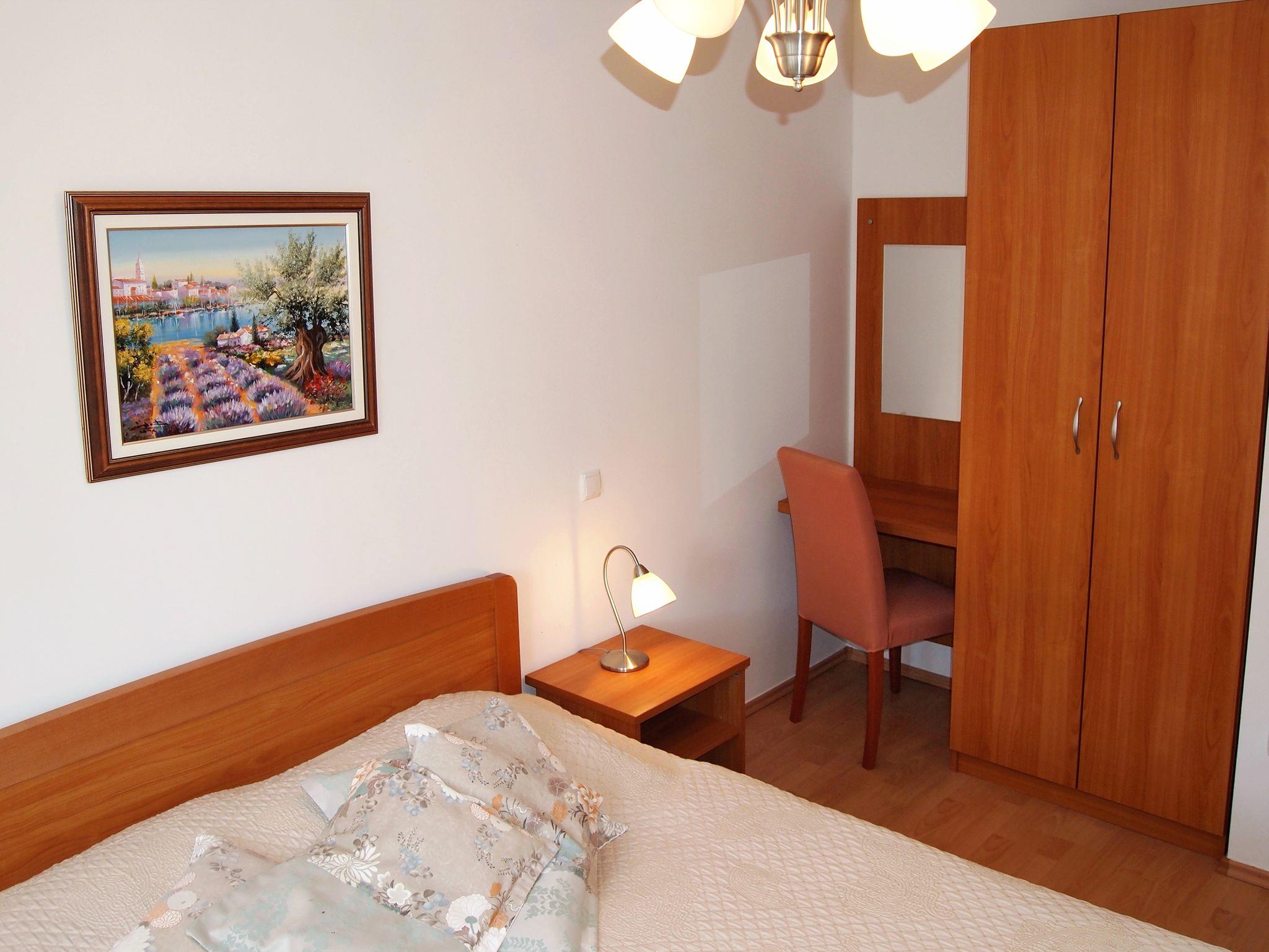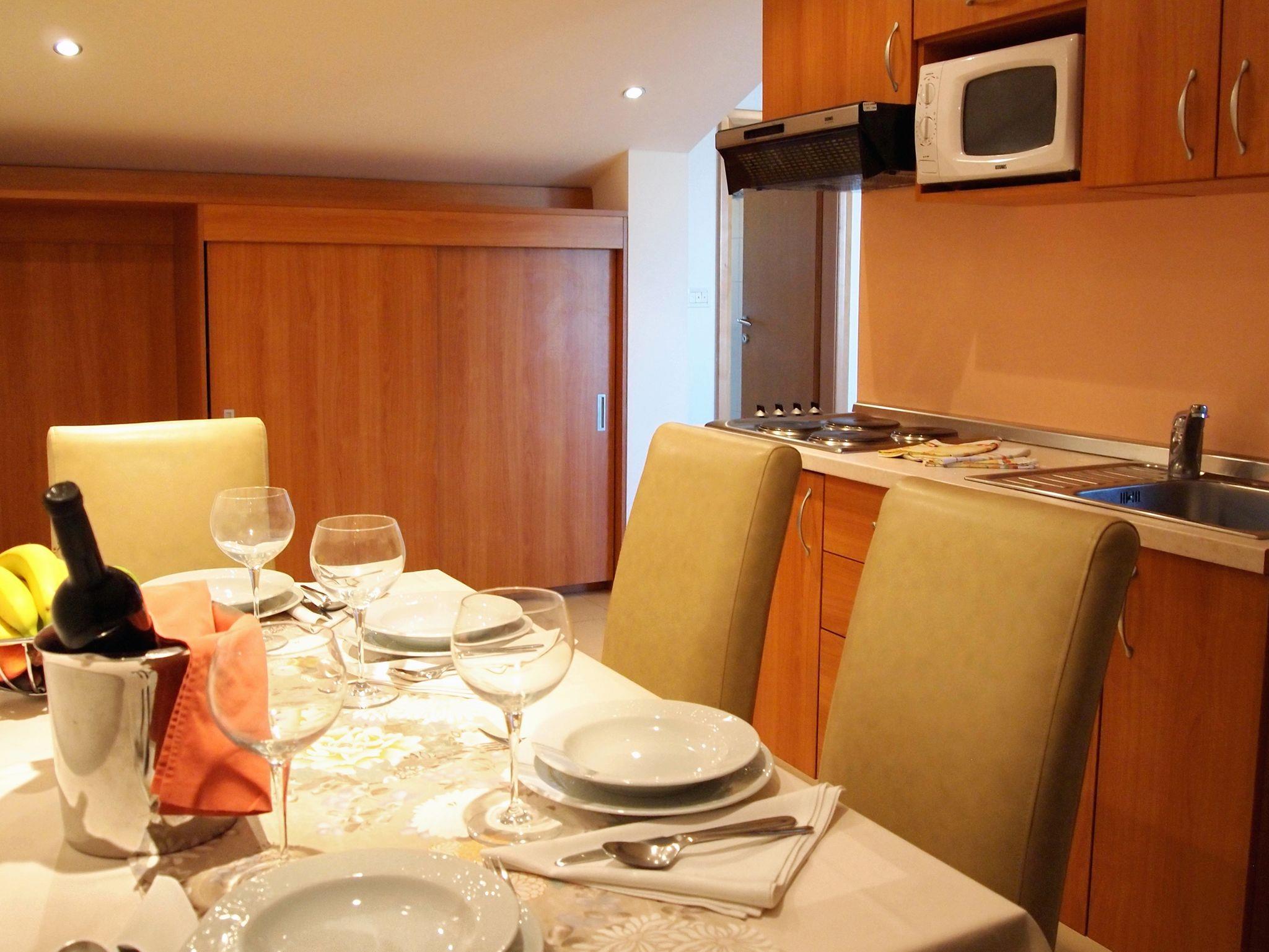 Ferienwohnung bietet Platz für 4 Gäste. Die Betten sind in Schlafzimmern, die es 1 gibt, und in Wohnzimmer, innerhalb einer Gesamtfläche von 42m2, angeordnet. Die Gäste haben eine eigene Terrasse zur Verfügung, auf der sie in warmen Sommernächten genießen können. Das Apartment bietet Meerblick. Es ist erlaubt, Speisen auf dem Gemeinschafts-Grill vorzubereiten. Während ihres Aufenthalts können Gäste das gemeinsam zur Nutzung stehende Schwimmbad benutzen. In der gebuchten Unterkunftseinheit zahlt man am Ort ein Depositum ( der Preis ist an der Internetseite angeführt ). IM PREIS INBEGRIFFEN: Endreinigung, Klimatisierung, Pool, Parkplatz, Internet, Föhn. VERBINDLICHE ZUSÄTZLICHE KOSTEN: Kurtaxe (Erwachsene 0,93 € - 1,90 € Nacht/Person, Kinderermäßigung 12 - 17 Jahre), Kaution (100,00 € Einmalzahlung). Die Verfügbarkeit zusätzlicher Dienstleistungen in Ihrem reservierten Termin und die Preise derselben (falls nicht aufgeführt) müssen im Voraus überprüft werden. Zusätzliche Dienstleistungen die in der Zahlungsaufforderung nicht aufgeführt sind werden direkt beim Vermieter bezahlt, angenommen der Gast nutzt auch diese.