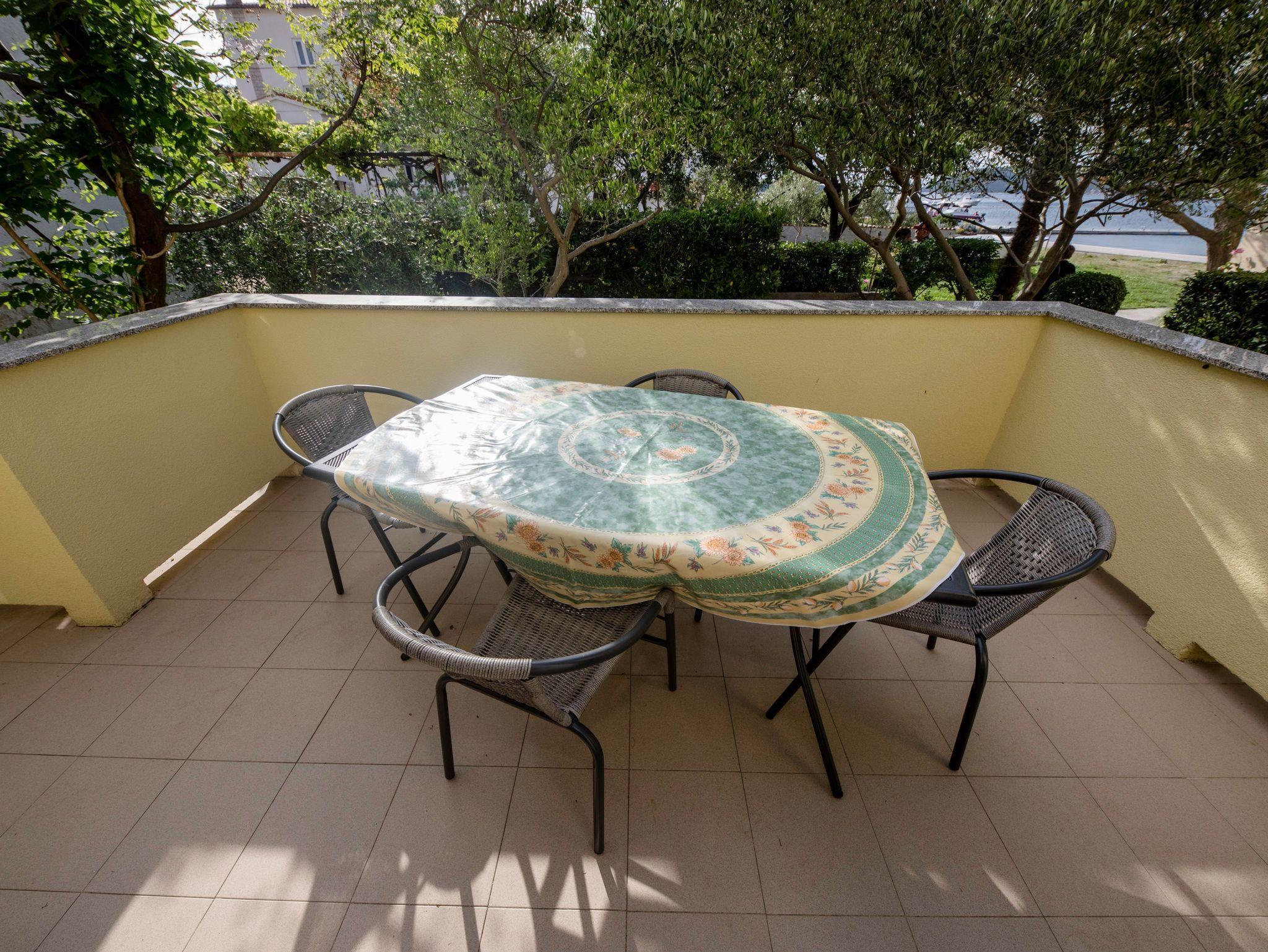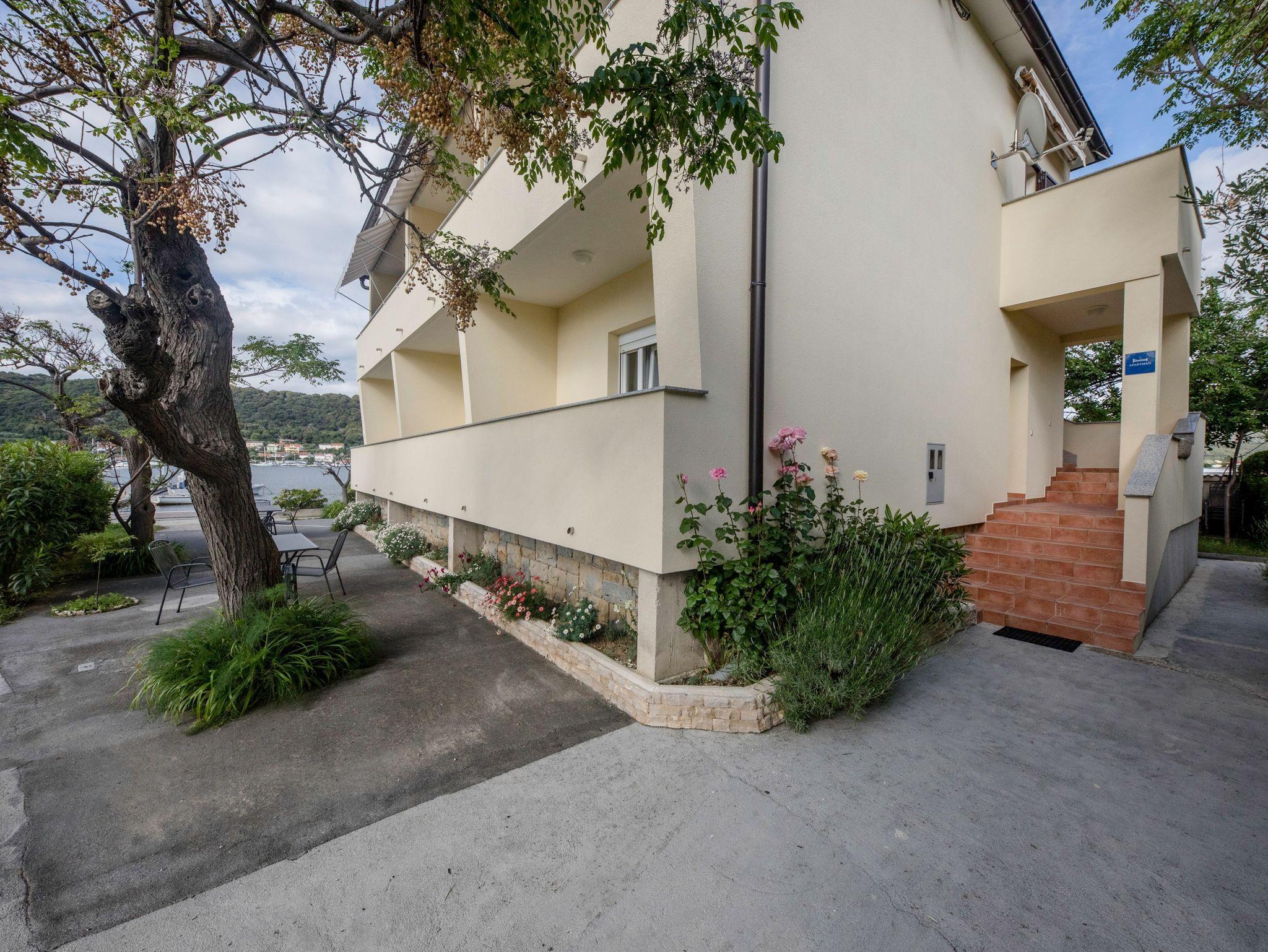 Ferienwohnung bietet Platz für 5 Gäste. Die Betten sind in Schlafzimmern, die es 2 gibt, innerhalb einer Gesamtfläche von 57m2, angeordnet. Die Gäste haben eine eigene Terrasse zur Verfügung, auf der sie in warmen Sommernächten genießen können. Das Apartment bietet Meerblick. Es ist erlaubt, Speisen auf dem Gemeinschafts-Grill vorzubereiten. In der Unterkunftseinheit besteht die Möglichkeit des Mitbringens von Haustieren gegen Aufpreis. IM PREIS INBEGRIFFEN: Kurtaxe, Endreinigung, Klimatisierung, Parkplatz, Internet, Wäschewaschen, Kinderbett, Bügeleisen, Föhn. VERBINDLICHE ZUSÄTZLICHE KOSTEN: Aufzahlung für Kurzaufenthalte (prozentualer Zuschlag pro Nächtigungsanzahl: 30% - 1, 20% - 2, 10% - 3). UNVERBINDLICHE ZUSÄTZLICHE KOSTEN: Bootsanlegeplatz (5,00 € pro Nacht), Haustiere (5,00 € pro Nacht). Die Verfügbarkeit zusätzlicher Dienstleistungen in Ihrem reservierten Termin und die Preise derselben (falls nicht aufgeführt) müssen im Voraus überprüft werden. Zusätzliche Dienstleistungen die in der Zahlungsaufforderung nicht aufgeführt sind werden direkt beim Vermieter bezahlt, angenommen der Gast nutzt auch diese.