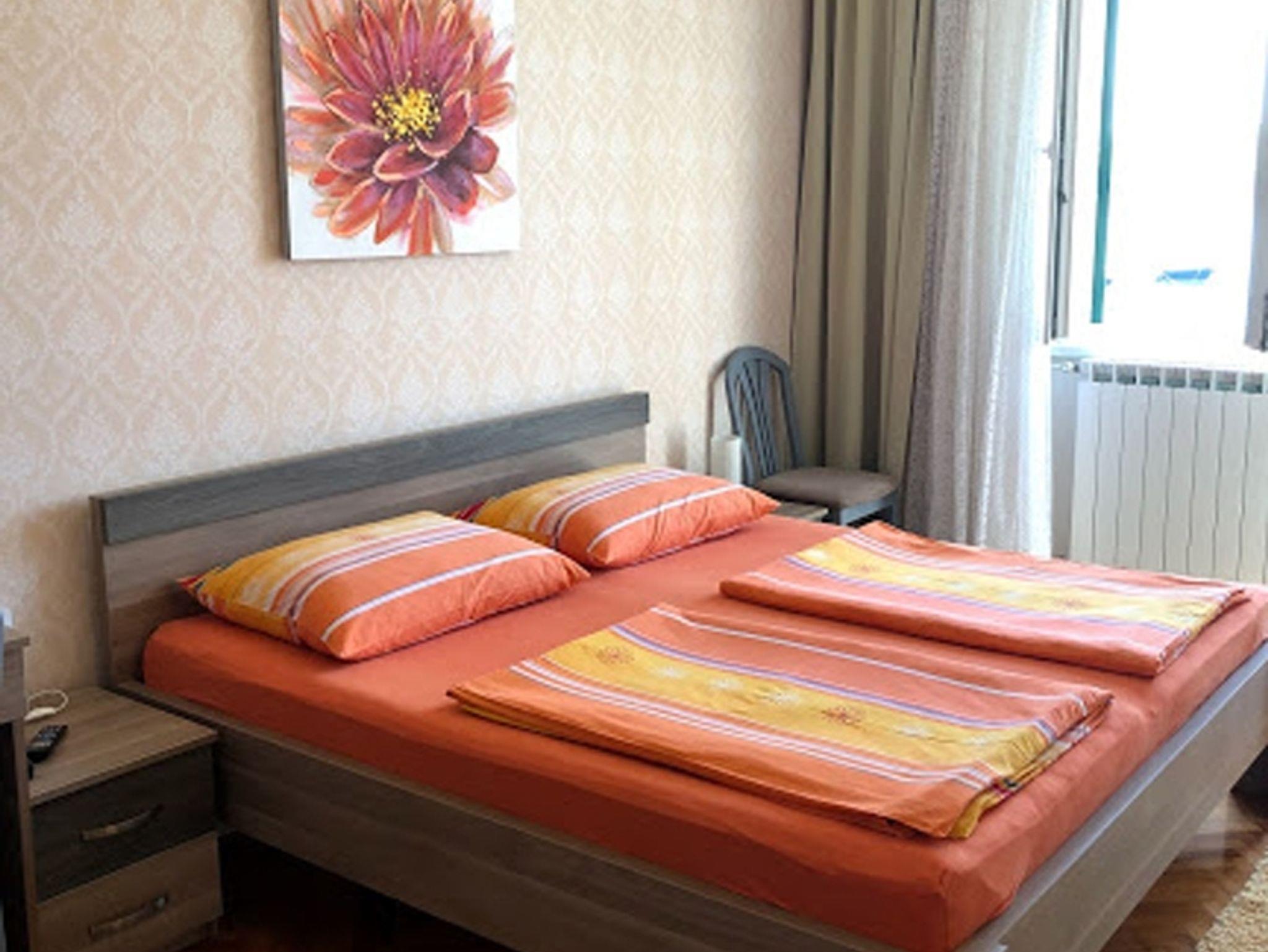 Zimmer bietet Platz für 2 Gäste. Die Betten sind in Schlafzimmern, die es 1 gibt, innerhalb einer Gesamtfläche von 15m2, angeordnet. Die Gäste haben einen eigenen Balkon zur Verfügung, auf der sie in warmen Sommernächten genießen können. Das Zimmer bietet Meerblick. Es ist erlaubt, Speisen auf dem Gemeinschafts-Grill vorzubereiten. Die reservierte Unterkunftseinheit ist ein Zimmer mit eigenem Badezimmer ohne die Möglichkeit der Nutzung einer Küche. IM PREIS INBEGRIFFEN: Kurtaxe, Endreinigung, Klimatisierung, Parkplatz, Internet, Kinderbett. VERBINDLICHE ZUSÄTZLICHE KOSTEN: Aufzahlung für Kurzaufenthalte (prozentualer Zuschlag pro Nächtigungsanzahl: 30% - 1, 20% - 2, 10% - 3). UNVERBINDLICHE ZUSÄTZLICHE KOSTEN: Frühstück (10,00 €, 50% Nachlass für Kinder zwischen 4 und 12 Jahren, Kinder bis 4 Jahre sind frei.), Wäschewaschen (3,00 € Waschen), Bootsanlegeplatz (10,00 € pro Nacht). Die Verfügbarkeit zusätzlicher Dienstleistungen in Ihrem reservierten Termin und die Preise derselben (falls nicht aufgeführt) müssen im Voraus überprüft werden. Zusätzliche Dienstleistungen die in der Zahlungsaufforderung nicht aufgeführt sind werden direkt beim Vermieter bezahlt, angenommen der Gast nutzt auch diese.