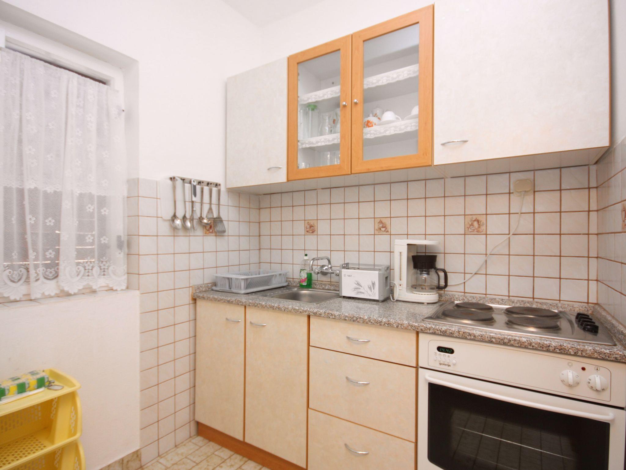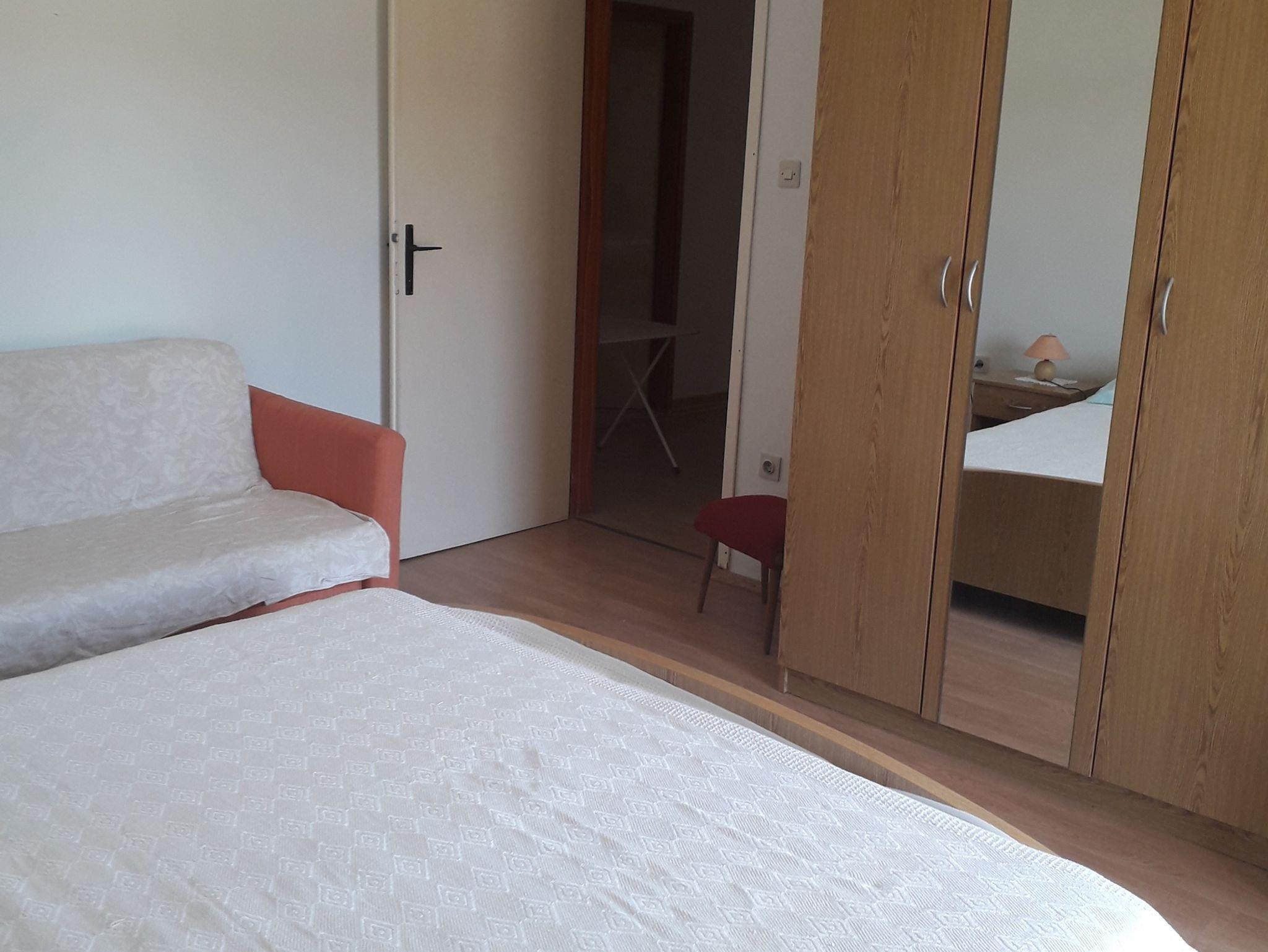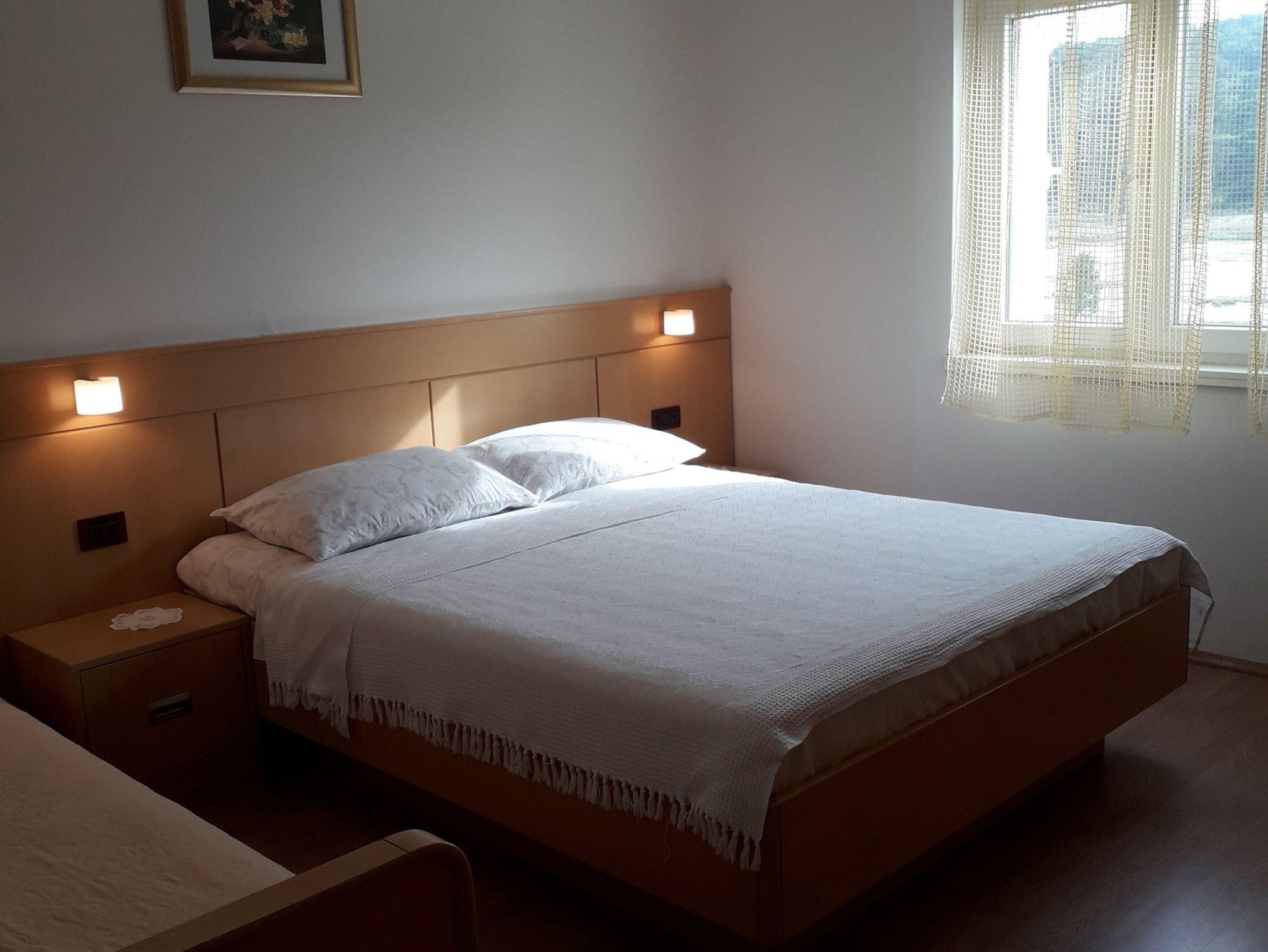 Ferienwohnung bietet Platz für 4 Gäste. Die Betten sind in Schlafzimmern, die es 2 gibt, innerhalb einer Gesamtfläche von 60m2, angeordnet. Die Gäste haben eine eigene Terrasse zur Verfügung, auf der sie in warmen Sommernächten genießen können. Das Apartment bietet Meerblick. Es ist erlaubt, Speisen auf dem Gemeinschafts-Grill vorzubereiten. Unterkunftseinheit hat Räume, die von dem Rest der Einheit abgetrennt werden. IM PREIS INBEGRIFFEN: Kurtaxe, Endreinigung, Klimatisierung, Parkplatz, Internet. VERBINDLICHE ZUSÄTZLICHE KOSTEN: Aufzahlung für Kurzaufenthalte (prozentualer Zuschlag pro Nächtigungsanzahl: 30% - 1, 20% - 2, 10% - 3). UNVERBINDLICHE ZUSÄTZLICHE KOSTEN: Wäschewaschen (5,00 € Waschen), Bootsanlegeplatz (5,00 € pro Nacht). Die Verfügbarkeit zusätzlicher Dienstleistungen in Ihrem reservierten Termin und die Preise derselben (falls nicht aufgeführt) müssen im Voraus überprüft werden. Zusätzliche Dienstleistungen die in der Zahlungsaufforderung nicht aufgeführt sind werden direkt beim Vermieter bezahlt, angenommen der Gast nutzt auch diese. Ermäßigung auf den Grundpreis: Gratistag 14=13 (bei einem Aufenthalt von 14 Tagen oder mehr erhalten Sie einen Gratistag für den Aufenthalt bis 31.12.26).