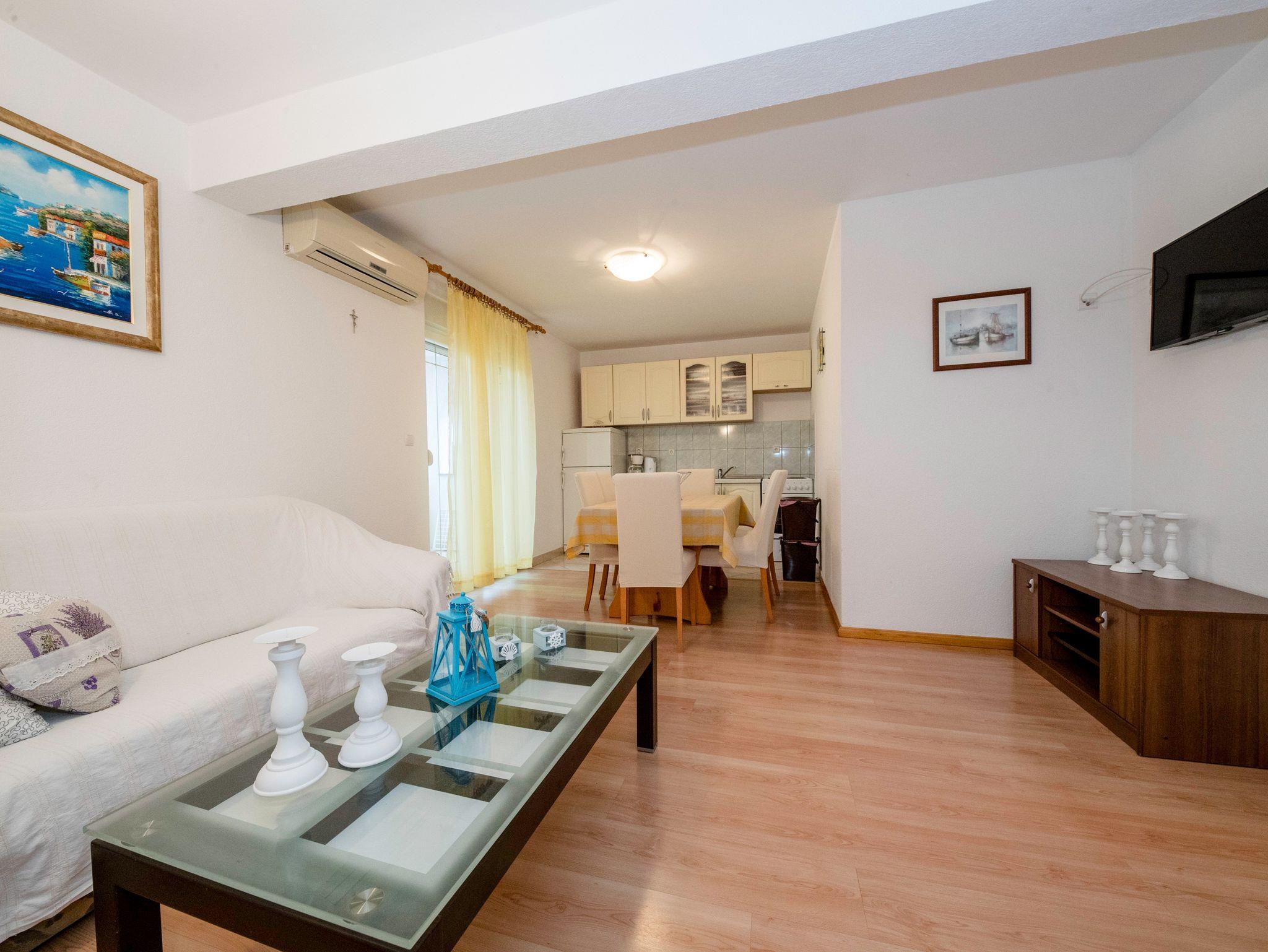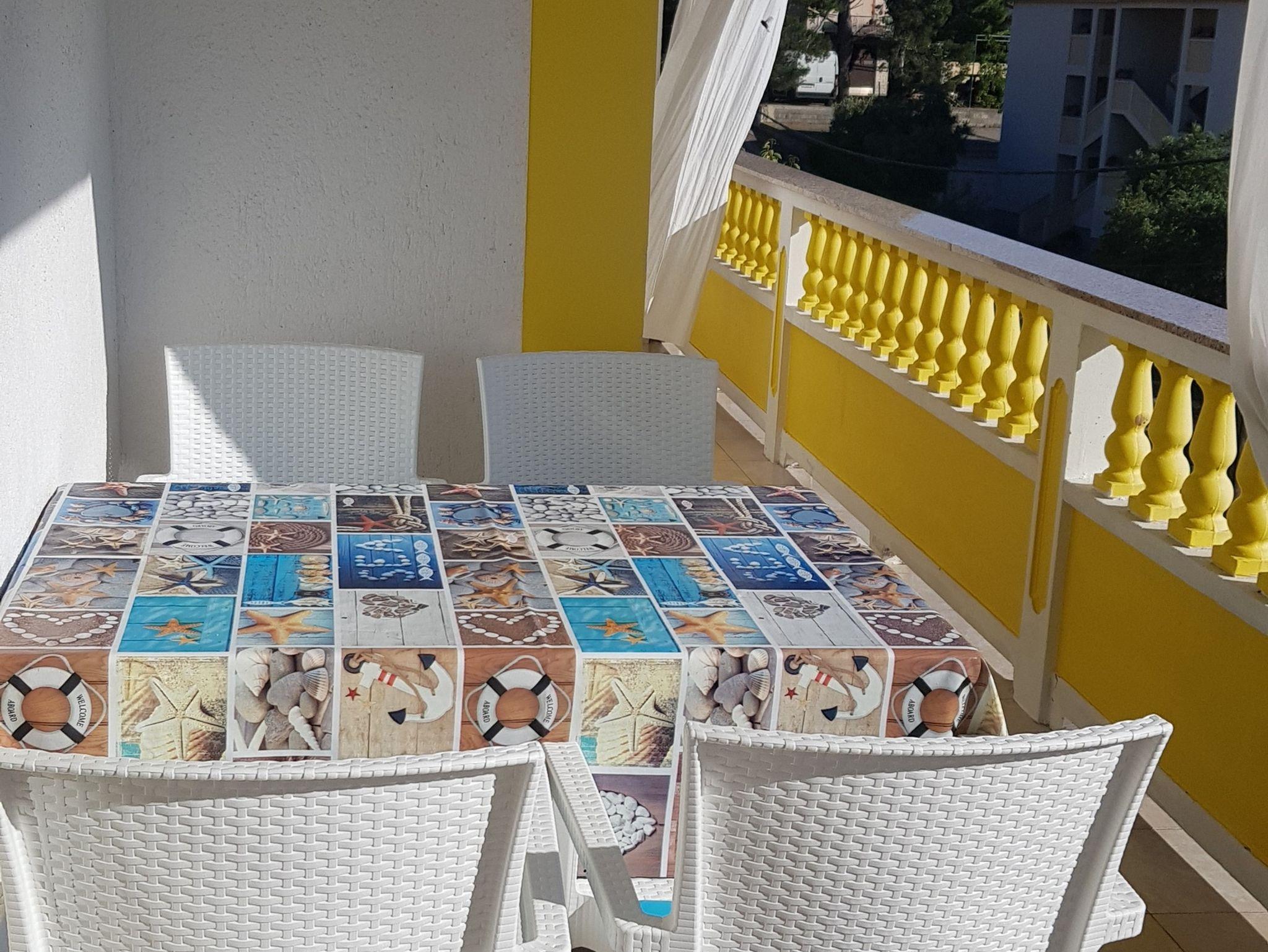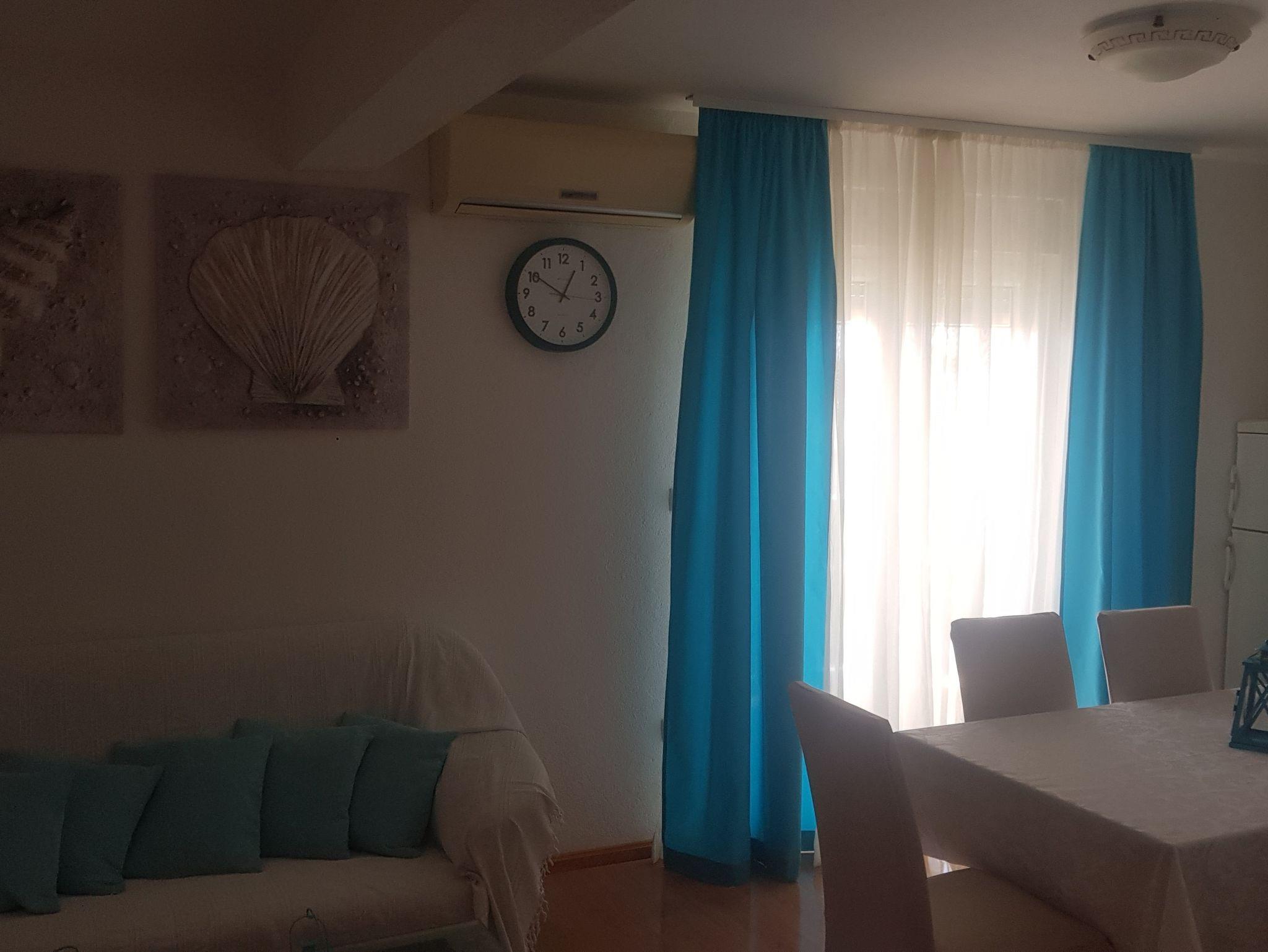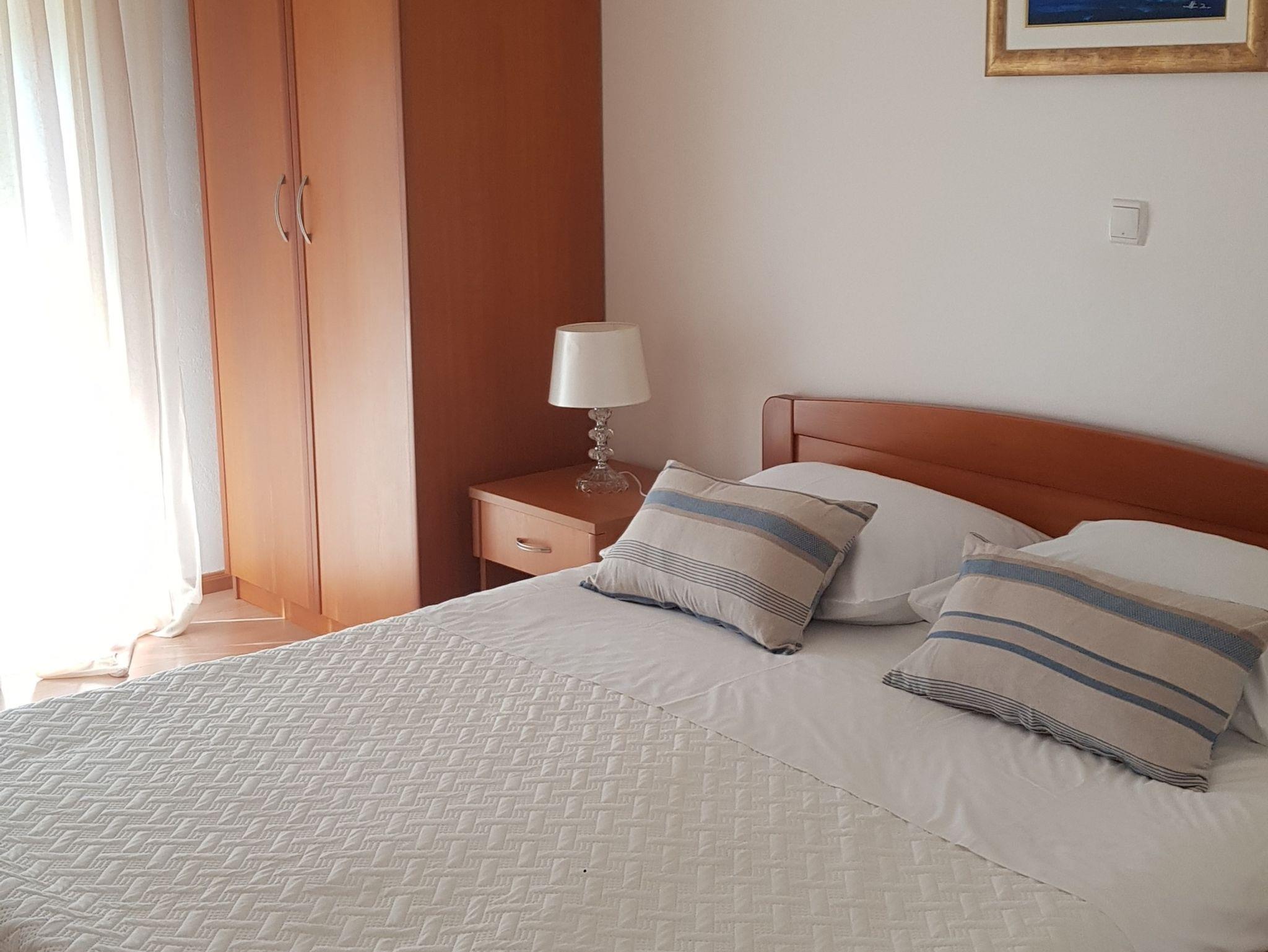 Ferienwohnung bietet Platz für 4 Gäste. Die Betten sind in Schlafzimmern, die es 2 gibt, innerhalb einer Gesamtfläche von 52m2, angeordnet. Die Gäste haben eine eigene Terrasse zur Verfügung, auf der sie in warmen Sommernächten genießen können. Das Apartment bietet Meerblick. Es ist erlaubt, Speisen auf dem Gemeinschafts-Grill vorzubereiten. IM PREIS INBEGRIFFEN: Kurtaxe, Endreinigung, Parkplatz, Internet, Wäschewaschen, Zusatzbett, Bügeleisen, Bügelbrett, Föhn. VERBINDLICHE ZUSÄTZLICHE KOSTEN: Aufzahlung für Kurzaufenthalte (prozentualer Zuschlag pro Nächtigungsanzahl: 30% - 1, 20% - 2, 10% - 3). UNVERBINDLICHE ZUSÄTZLICHE KOSTEN: Klimatisierung (5,00 € pro Nacht), Bootsanlegeplatz (5,00 € pro Nacht). Die Verfügbarkeit zusätzlicher Dienstleistungen in Ihrem reservierten Termin und die Preise derselben (falls nicht aufgeführt) müssen im Voraus überprüft werden. Zusätzliche Dienstleistungen die in der Zahlungsaufforderung nicht aufgeführt sind werden direkt beim Vermieter bezahlt, angenommen der Gast nutzt auch diese.