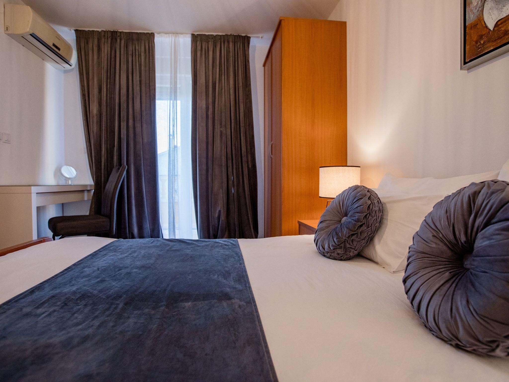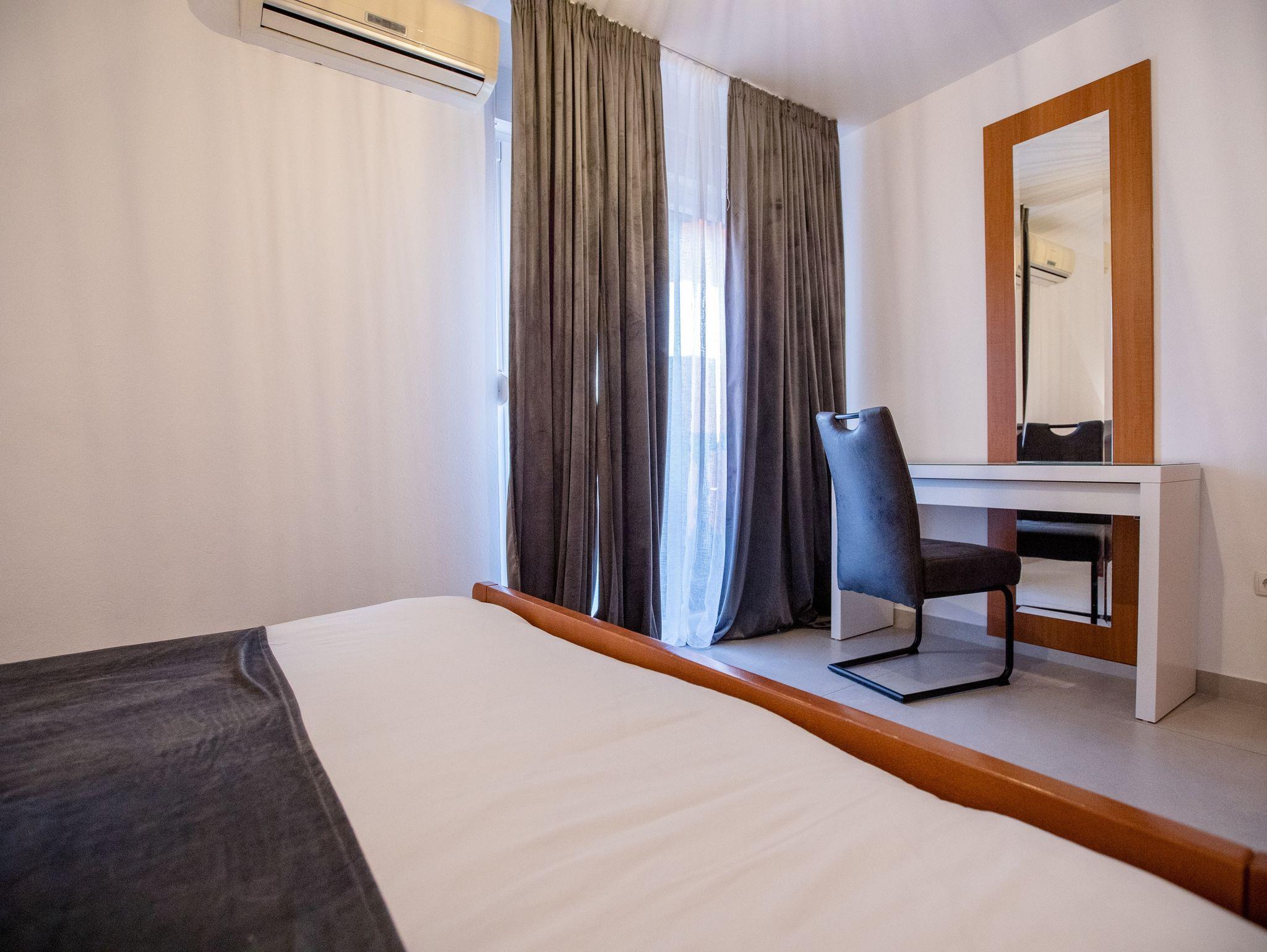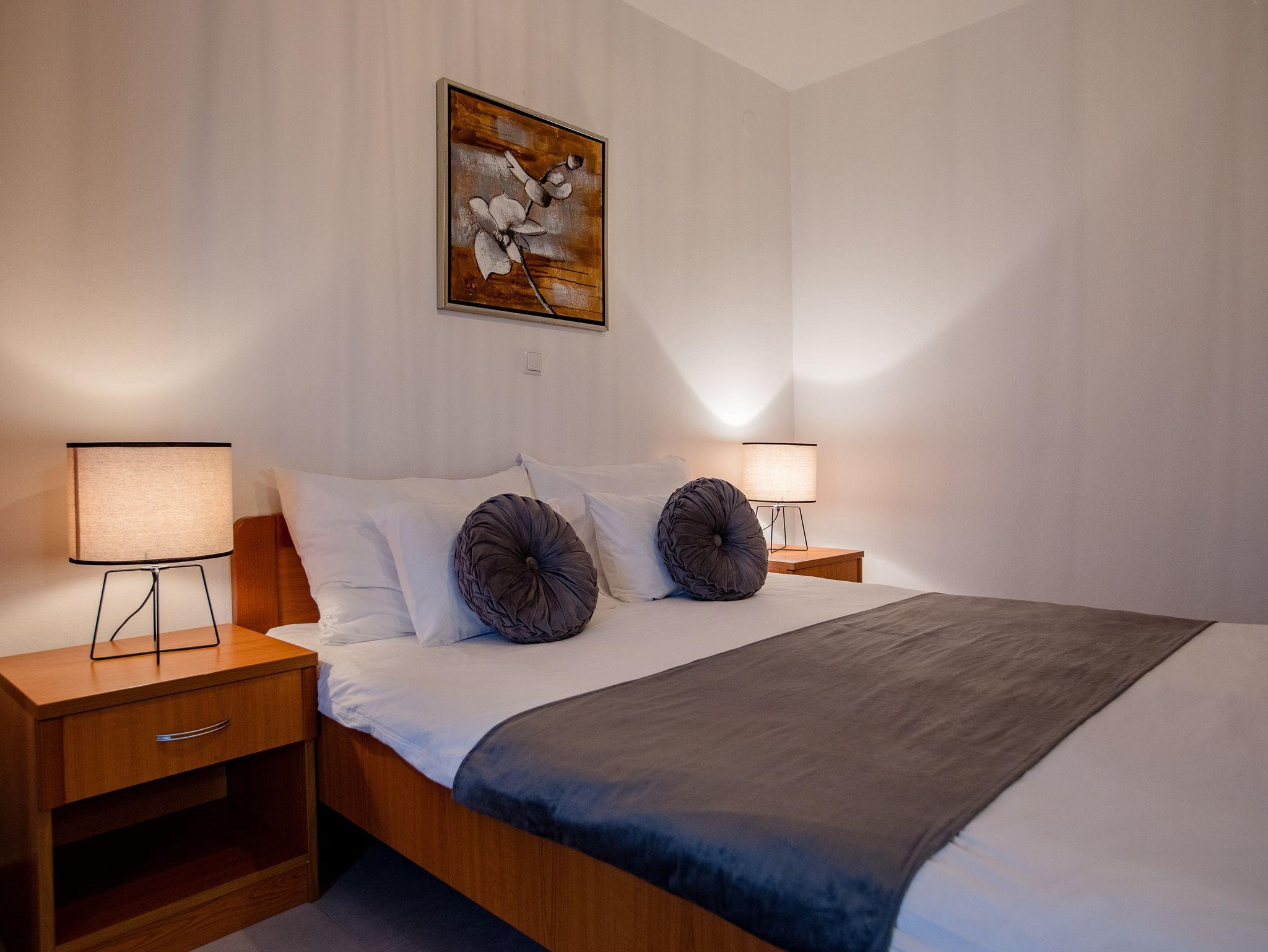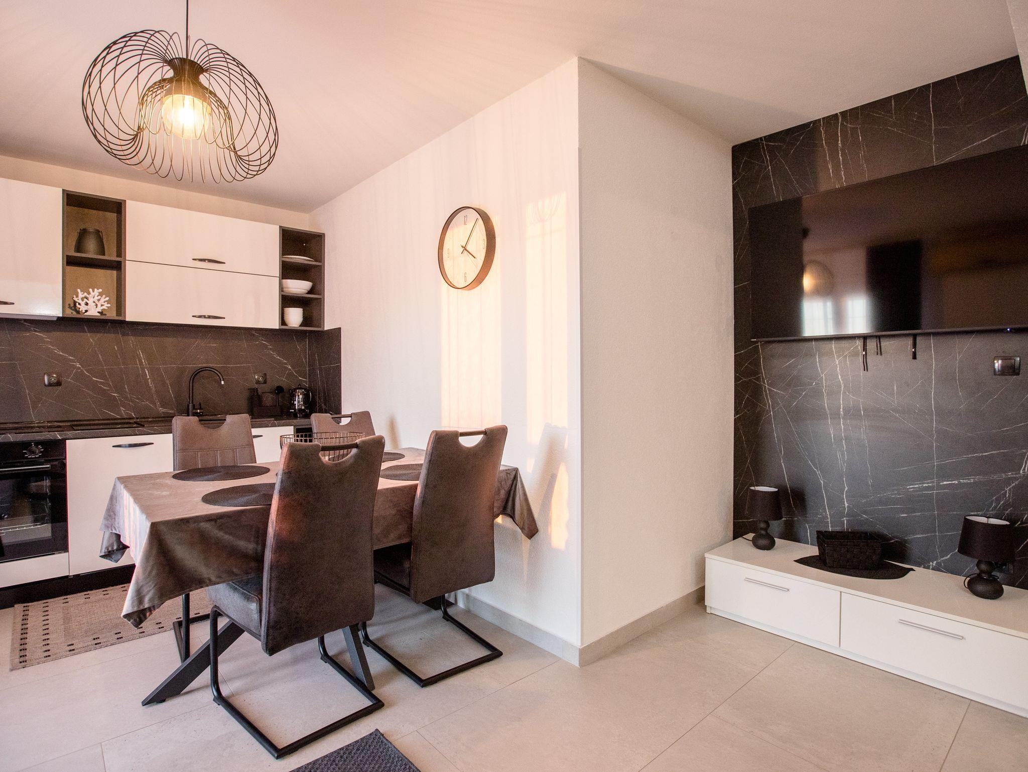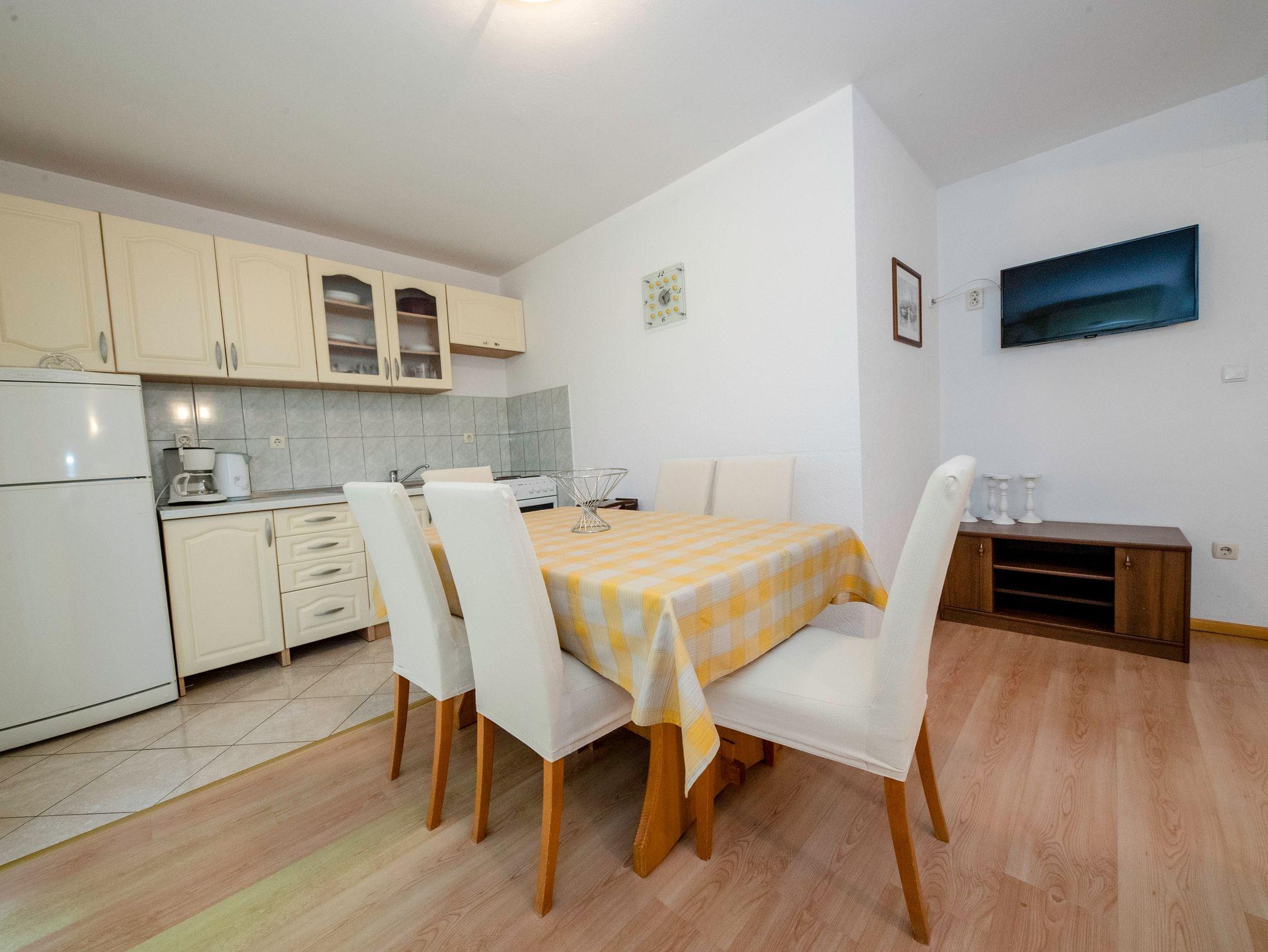 Ferienwohnung bietet Platz für 4 Gäste. Die Betten sind in Schlafzimmern, die es 2 gibt, innerhalb einer Gesamtfläche von 52m2, angeordnet. Die Gäste haben eine eigene Terrasse zur Verfügung, auf der sie in warmen Sommernächten genießen können. Das Apartment bietet Meerblick. Es ist erlaubt, Speisen auf dem Gemeinschafts-Grill vorzubereiten. IM PREIS INBEGRIFFEN: Kurtaxe, Endreinigung, Parkplatz, Internet, Wäschewaschen, Zusatzbett, Bügeleisen, Bügelbrett, Föhn. VERBINDLICHE ZUSÄTZLICHE KOSTEN: Aufzahlung für Kurzaufenthalte (prozentualer Zuschlag pro Nächtigungsanzahl: 30% - 1, 20% - 2, 10% - 3). UNVERBINDLICHE ZUSÄTZLICHE KOSTEN: Klimatisierung (5,00 € pro Nacht), Bootsanlegeplatz (5,00 € pro Nacht). Die Verfügbarkeit zusätzlicher Dienstleistungen in Ihrem reservierten Termin und die Preise derselben (falls nicht aufgeführt) müssen im Voraus überprüft werden. Zusätzliche Dienstleistungen die in der Zahlungsaufforderung nicht aufgeführt sind werden direkt beim Vermieter bezahlt, angenommen der Gast nutzt auch diese.