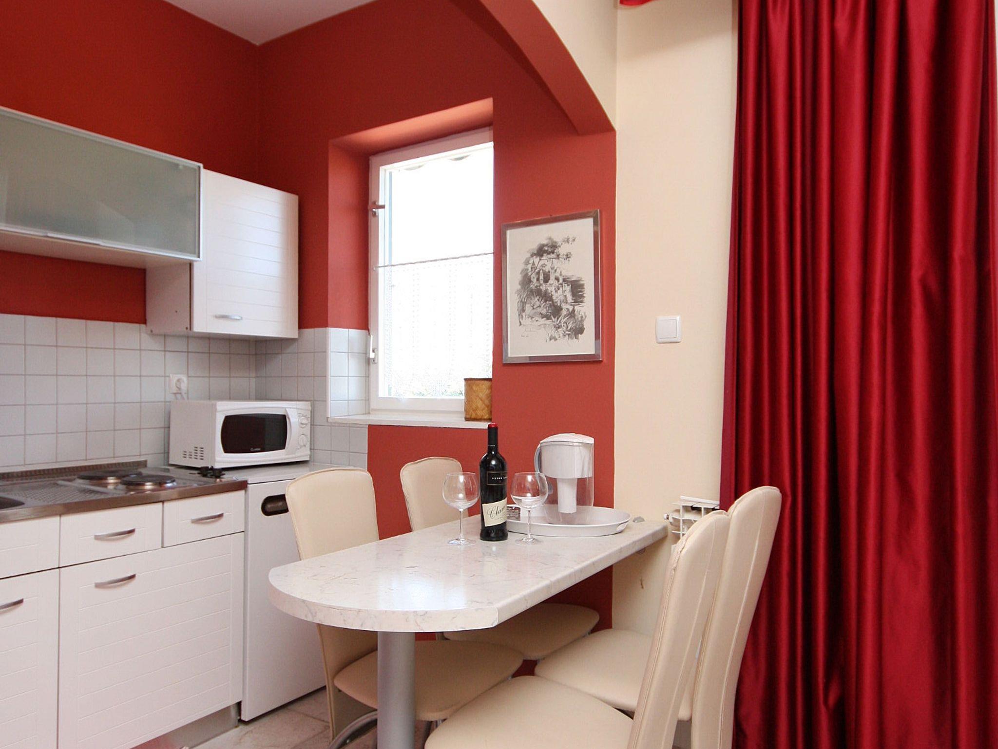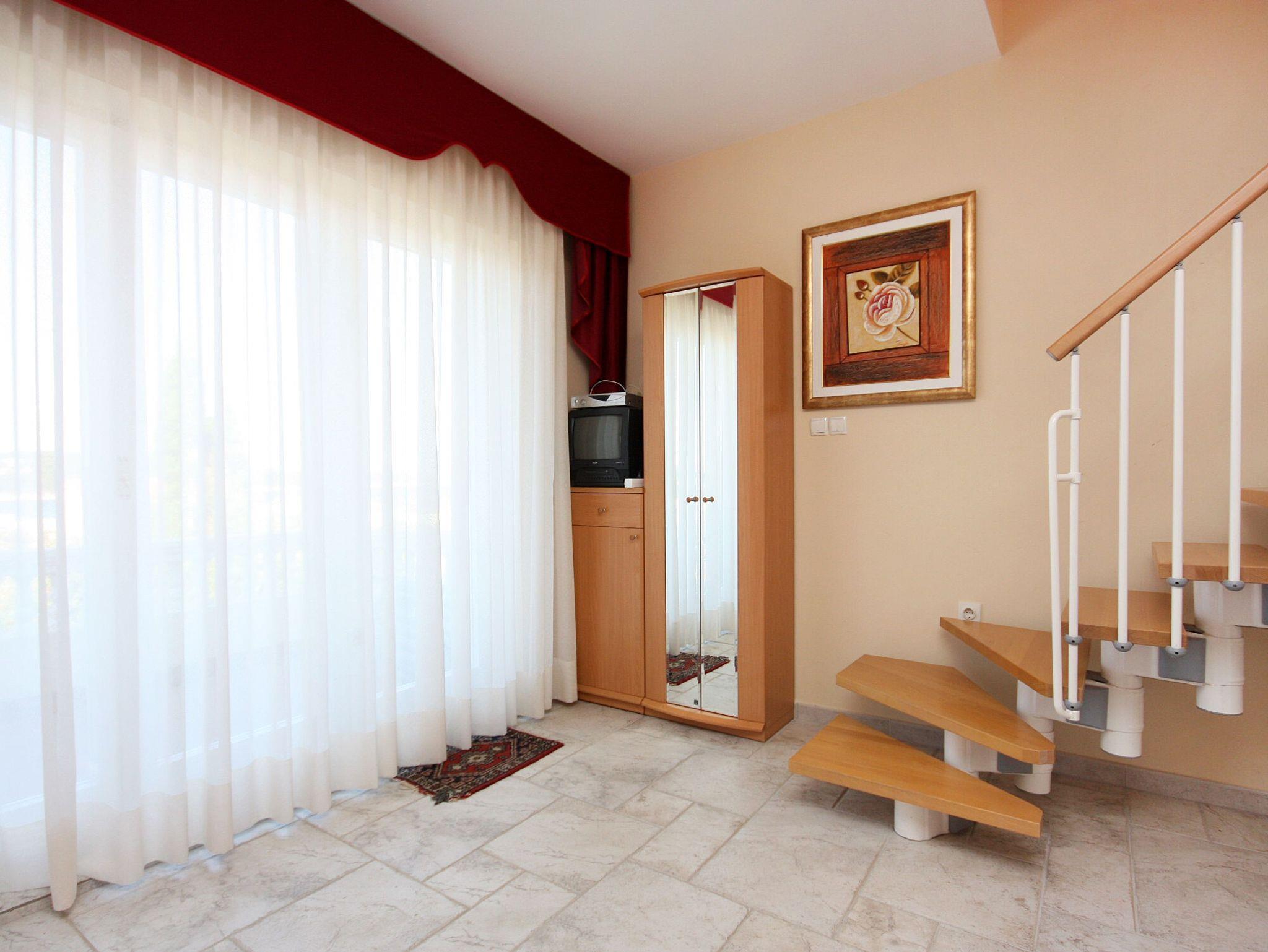 Studio bietet Platz für 2 Gäste. Die Betten sind in Schlafzimmern, die es 1 gibt, innerhalb einer Gesamtfläche von 54m2, angeordnet. Die Gäste haben eine eigene Terrasse zur Verfügung, auf der sie in warmen Sommernächten genießen können. Das Studio-Apartment bietet Meerblick. Es ist erlaubt, Speisen auf dem Gemeinschafts-Grill vorzubereiten. In der Unterkunftseinheit besteht die Möglichkeit des Mitbringens von Haustieren gegen Aufpreis. IM PREIS INBEGRIFFEN: Kurtaxe, Endreinigung, Klimatisierung, Zentralheizung, Parkplatz, Internet, Kinderbett, Bügeleisen, Bügelbrett, Föhn. VERBINDLICHE ZUSÄTZLICHE KOSTEN: Aufzahlung für Kurzaufenthalte (prozentualer Zuschlag pro Nächtigungsanzahl: 30% - 1, 20% - 2, 10% - 3). UNVERBINDLICHE ZUSÄTZLICHE KOSTEN: Bootsanlegeplatz (10,00 € pro Nacht), Haustiere (10,00 € pro Nacht), 2 Kinderbettchen (10,00 € Person/Tag). Die Verfügbarkeit zusätzlicher Dienstleistungen in Ihrem reservierten Termin und die Preise derselben (falls nicht aufgeführt) müssen im Voraus überprüft werden. Zusätzliche Dienstleistungen die in der Zahlungsaufforderung nicht aufgeführt sind werden direkt beim Vermieter bezahlt, angenommen der Gast nutzt auch diese. Ermäßigung auf den Grundpreis: Gratistag 21=19 (bei einem Aufenthalt von 21 Tagen oder mehr erhalten Sie 2 Gratistage für den Aufenthalt bis 31.12.26).