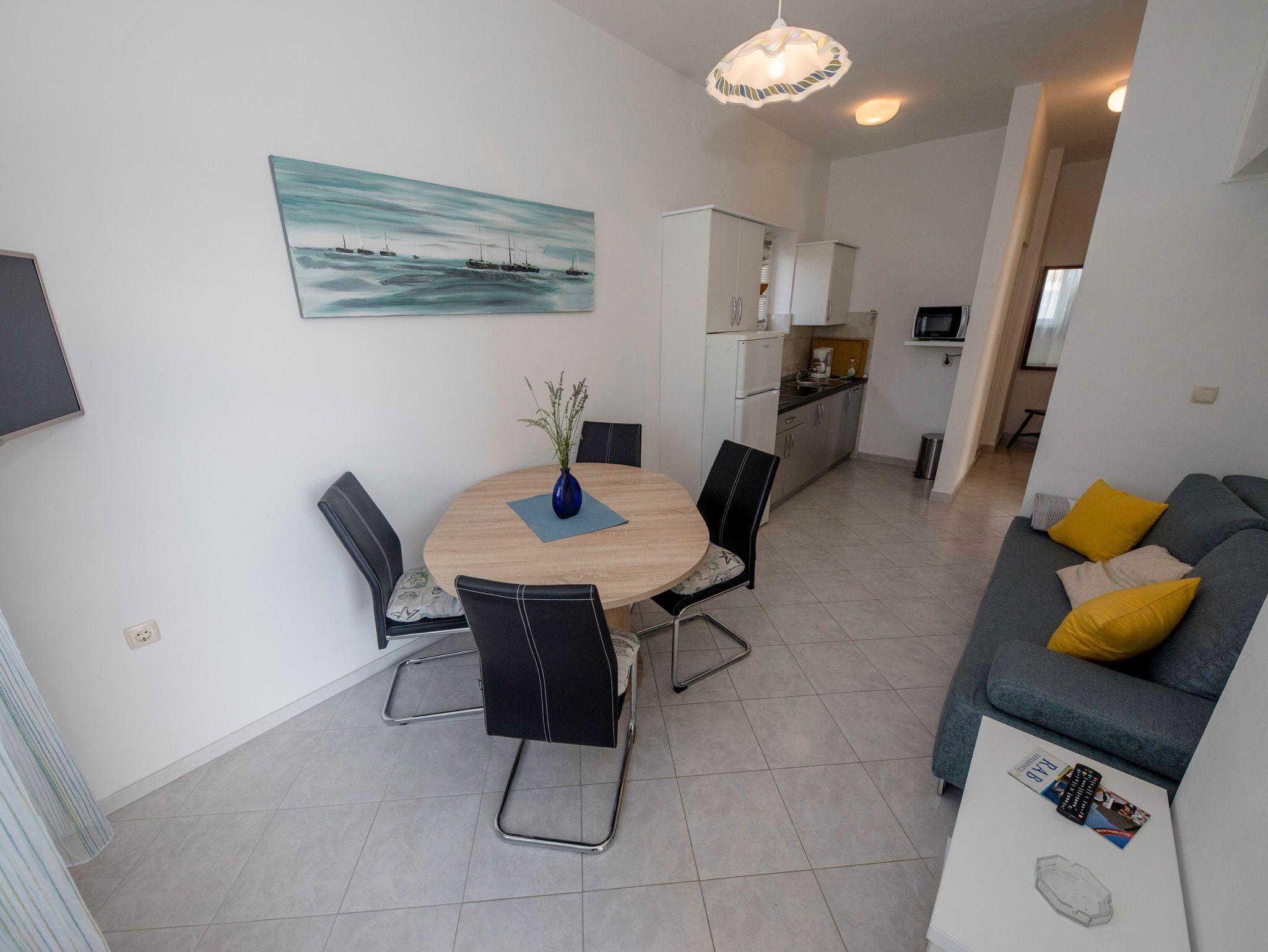 Ferienwohnung bietet Platz für 5 Gäste. Die Betten sind in Schlafzimmern, die es 2 gibt, innerhalb einer Gesamtfläche von 50m2, angeordnet. Die Gäste haben einen eigenen Balkon zur Verfügung, auf der sie in warmen Sommernächten genießen können. Das Apartment bietet Meerblick. Es ist erlaubt, Speisen auf dem Gemeinschafts-Grill vorzubereiten. In der Unterkunftseinheit besteht die Möglichkeit des Mitbringens von Haustieren gegen Aufpreis. IM PREIS INBEGRIFFEN: Kurtaxe, Endreinigung, Klimatisierung, Parkplatz, Internet, Wäschewaschen, Kinderbett, Bügeleisen, Föhn. VERBINDLICHE ZUSÄTZLICHE KOSTEN: Aufzahlung für Kurzaufenthalte (prozentualer Zuschlag pro Nächtigungsanzahl: 30% - 1, 20% - 2, 10% - 3). UNVERBINDLICHE ZUSÄTZLICHE KOSTEN: Bootsanlegeplatz (5,00 € pro Nacht), Haustiere (5,00 € pro Nacht). Die Verfügbarkeit zusätzlicher Dienstleistungen in Ihrem reservierten Termin und die Preise derselben (falls nicht aufgeführt) müssen im Voraus überprüft werden. Zusätzliche Dienstleistungen die in der Zahlungsaufforderung nicht aufgeführt sind werden direkt beim Vermieter bezahlt, angenommen der Gast nutzt auch diese.