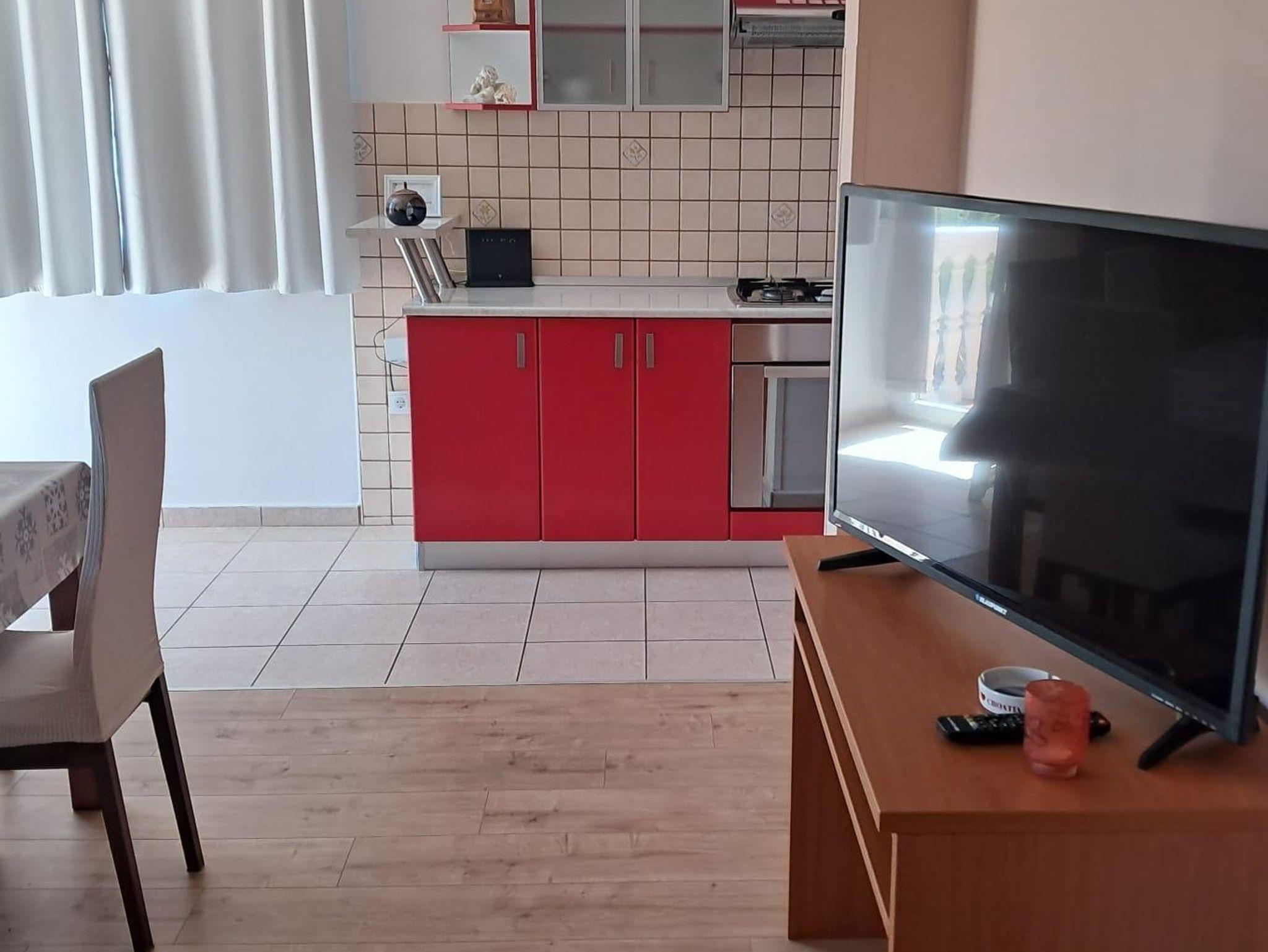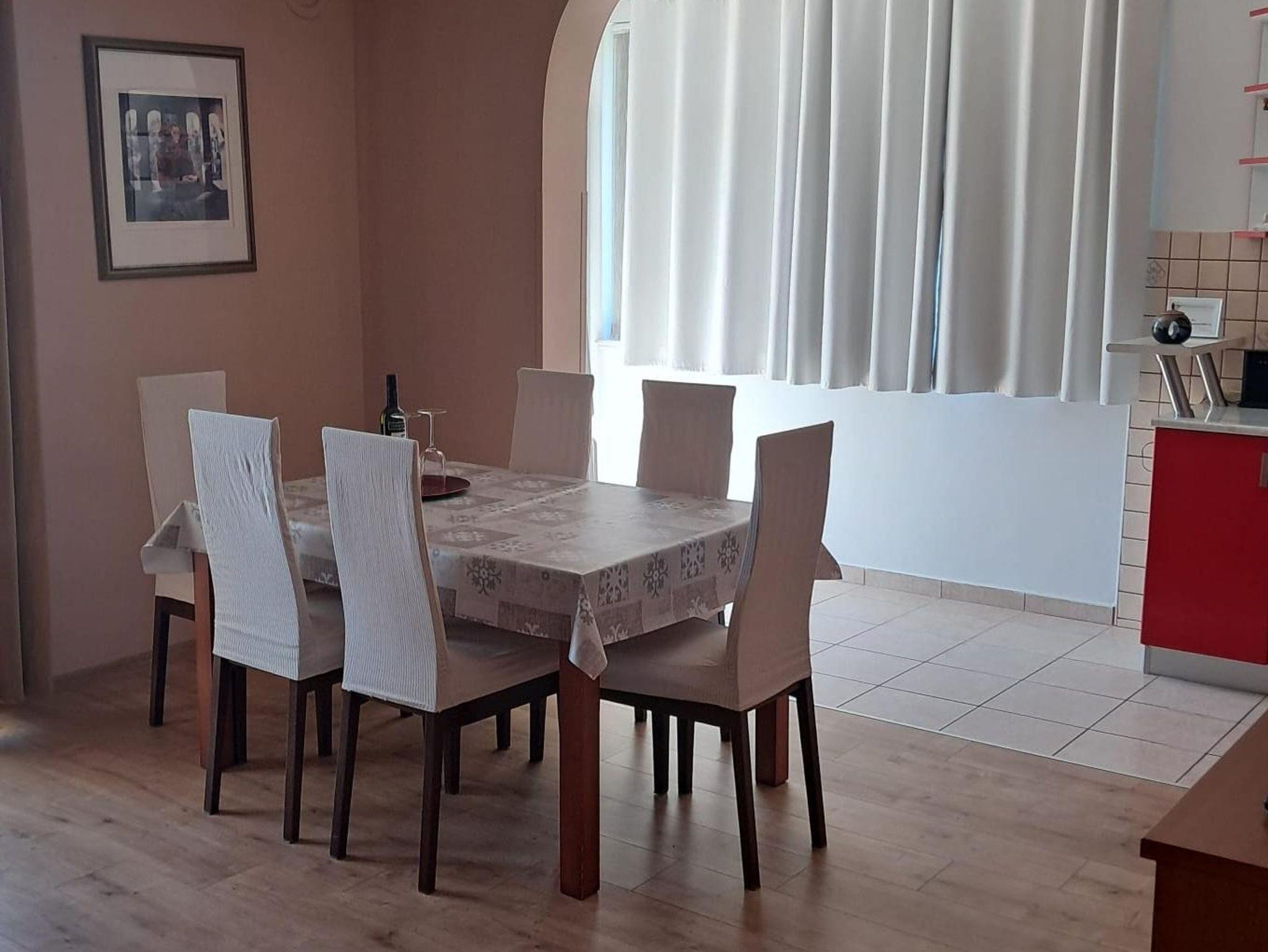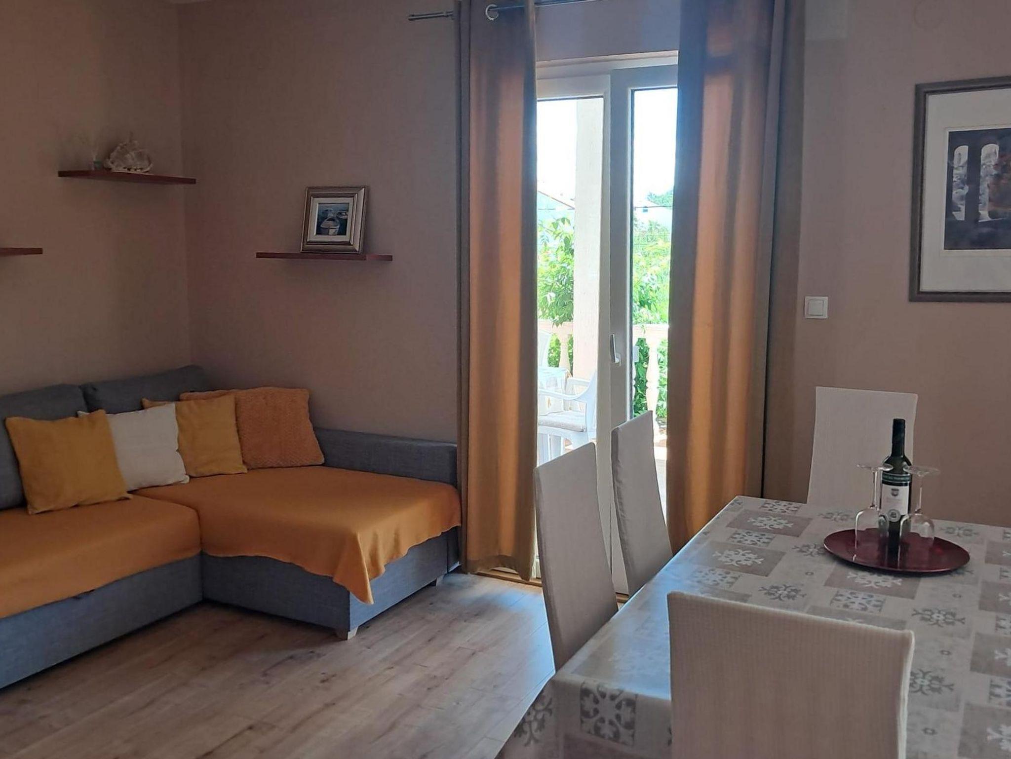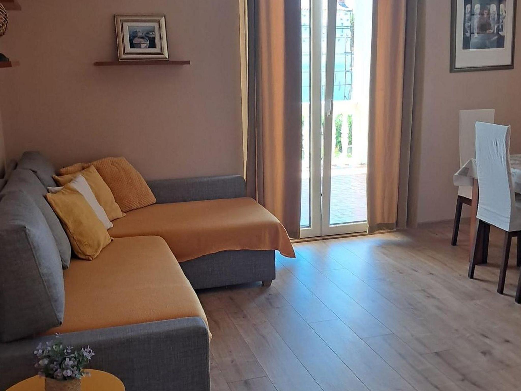 Ferienwohnung bietet Platz für 3 Gäste. Die Betten sind in Schlafzimmern, die es 1 gibt, und in Wohnzimmer, innerhalb einer Gesamtfläche von 58m2, angeordnet. Die Gäste haben eine eigene Terrasse zur Verfügung, auf der sie in warmen Sommernächten genießen können. Das Apartment bietet Meerblick. Es ist erlaubt, Speisen auf dem Gemeinschafts-Grill vorzubereiten. In der Unterkunftseinheit besteht die Möglichkeit des Mitbringens von Haustieren gegen Aufpreis. IM PREIS INBEGRIFFEN: Kurtaxe, Endreinigung, Parkplatz, Internet, Bügeleisen, Bügelbrett, Föhn. VERBINDLICHE ZUSÄTZLICHE KOSTEN: Aufzahlung für Kurzaufenthalte (prozentualer Zuschlag pro Nächtigungsanzahl: 30% - 1, 20% - 2, 10% - 3). UNVERBINDLICHE ZUSÄTZLICHE KOSTEN: Frühstück (15,00 €, 50% Nachlass für Kinder zwischen 4 und 12 Jahren, Kinder bis 4 Jahre sind frei.), Klimatisierung (5,00 € pro Nacht), Bootsanlegeplatz (10,00 € pro Nacht), Haustiere (10,00 € pro Nacht). Die Verfügbarkeit zusätzlicher Dienstleistungen in Ihrem reservierten Termin und die Preise derselben (falls nicht aufgeführt) müssen im Voraus überprüft werden. Zusätzliche Dienstleistungen die in der Zahlungsaufforderung nicht aufgeführt sind werden direkt beim Vermieter bezahlt, angenommen der Gast nutzt auch diese.