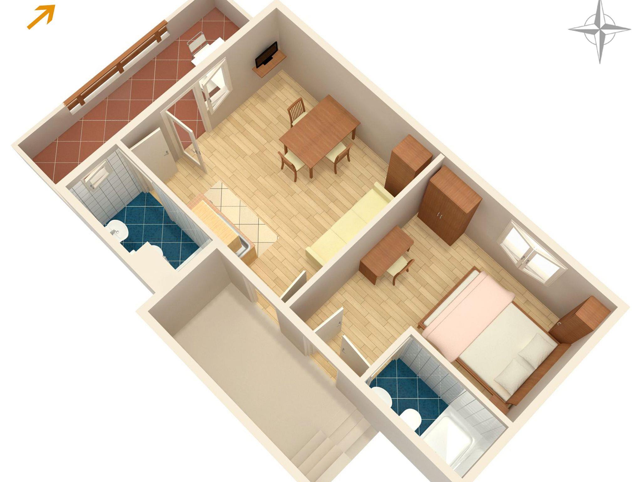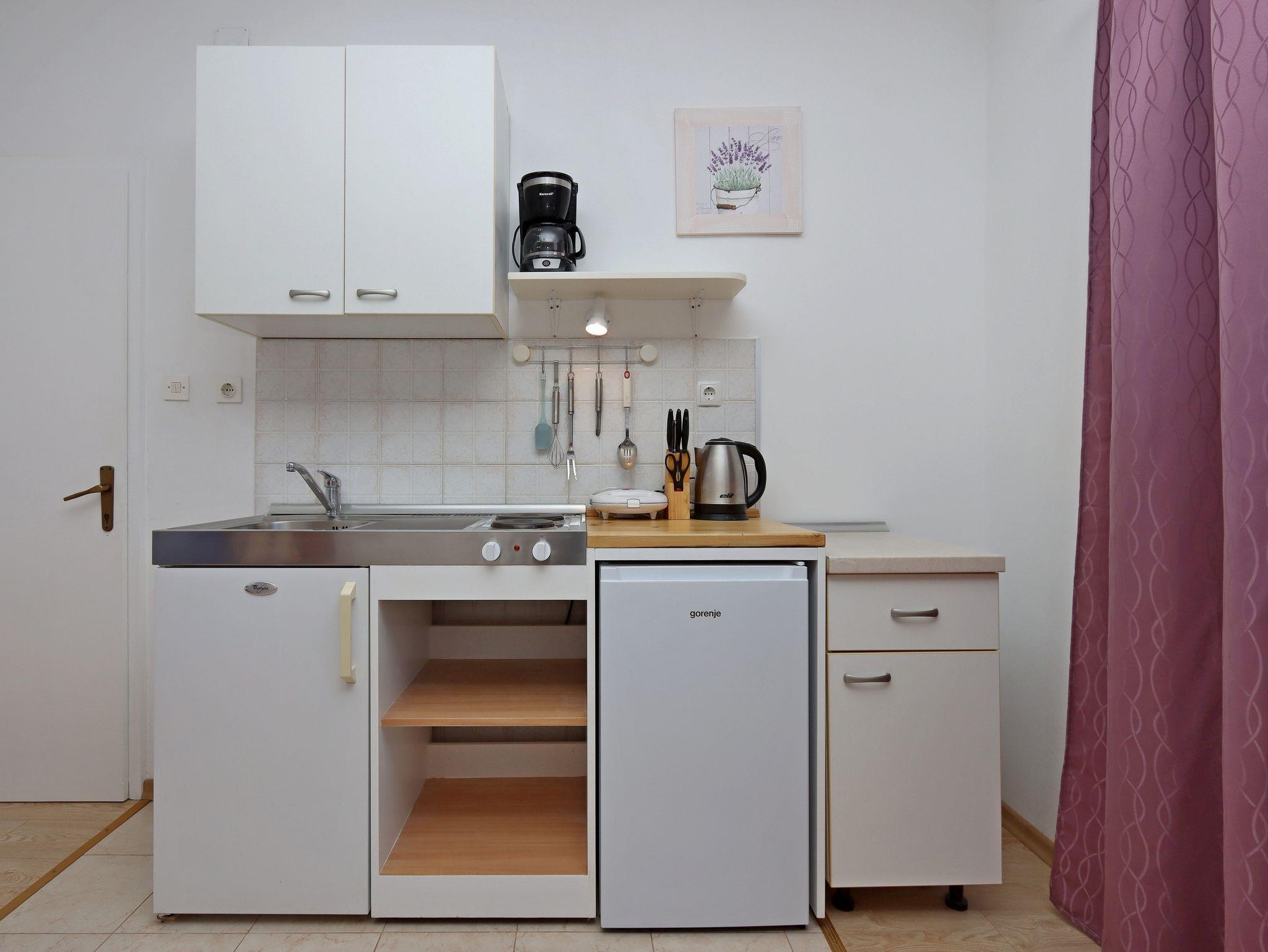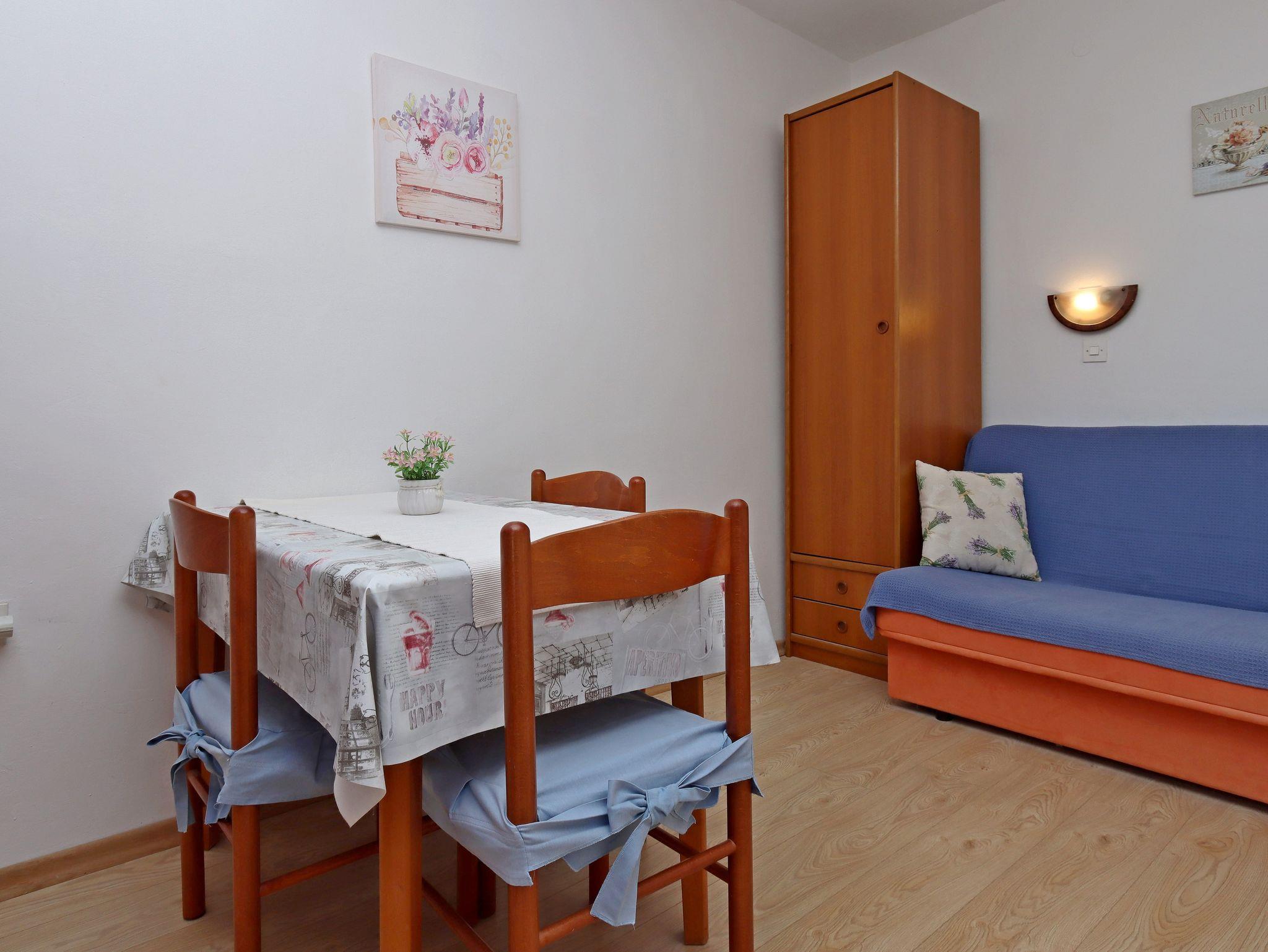 Ferienwohnung bietet Platz für 2 Gäste. Die Betten sind in Schlafzimmern, die es 1 gibt, innerhalb einer Gesamtfläche von 34m2, angeordnet. Die Gäste haben eine eigene Terrasse zur Verfügung, auf der sie in warmen Sommernächten genießen können. Das Apartment bietet Meerblick. Es ist erlaubt, Speisen auf dem Gemeinschafts-Grill vorzubereiten. In der Unterkunftseinheit besteht die Möglichkeit des Mitbringens von Haustieren gegen Aufpreis. Räume der gebuchten Unterkunftseinheit werden nicht in eine Ganze verbunden. Unterkunftseinheit hat Räume, die von dem Rest der Einheit abgetrennt werden. IM PREIS INBEGRIFFEN: Kurtaxe, Endreinigung, Parkplatz, Internet, Wäschewaschen, Bügeleisen. VERBINDLICHE ZUSÄTZLICHE KOSTEN: Aufzahlung für Kurzaufenthalte (prozentualer Zuschlag pro Nächtigungsanzahl: 30% - 1, 20% - 2, 10% - 3). UNVERBINDLICHE ZUSÄTZLICHE KOSTEN: Klimatisierung (5,00 € pro Nacht), Bootsanlegeplatz (7,00 € pro Nacht), Haustiere (3,00 € pro Nacht). Die Verfügbarkeit zusätzlicher Dienstleistungen in Ihrem reservierten Termin und die Preise derselben (falls nicht aufgeführt) müssen im Voraus überprüft werden. Zusätzliche Dienstleistungen die in der Zahlungsaufforderung nicht aufgeführt sind werden direkt beim Vermieter bezahlt, angenommen der Gast nutzt auch diese.