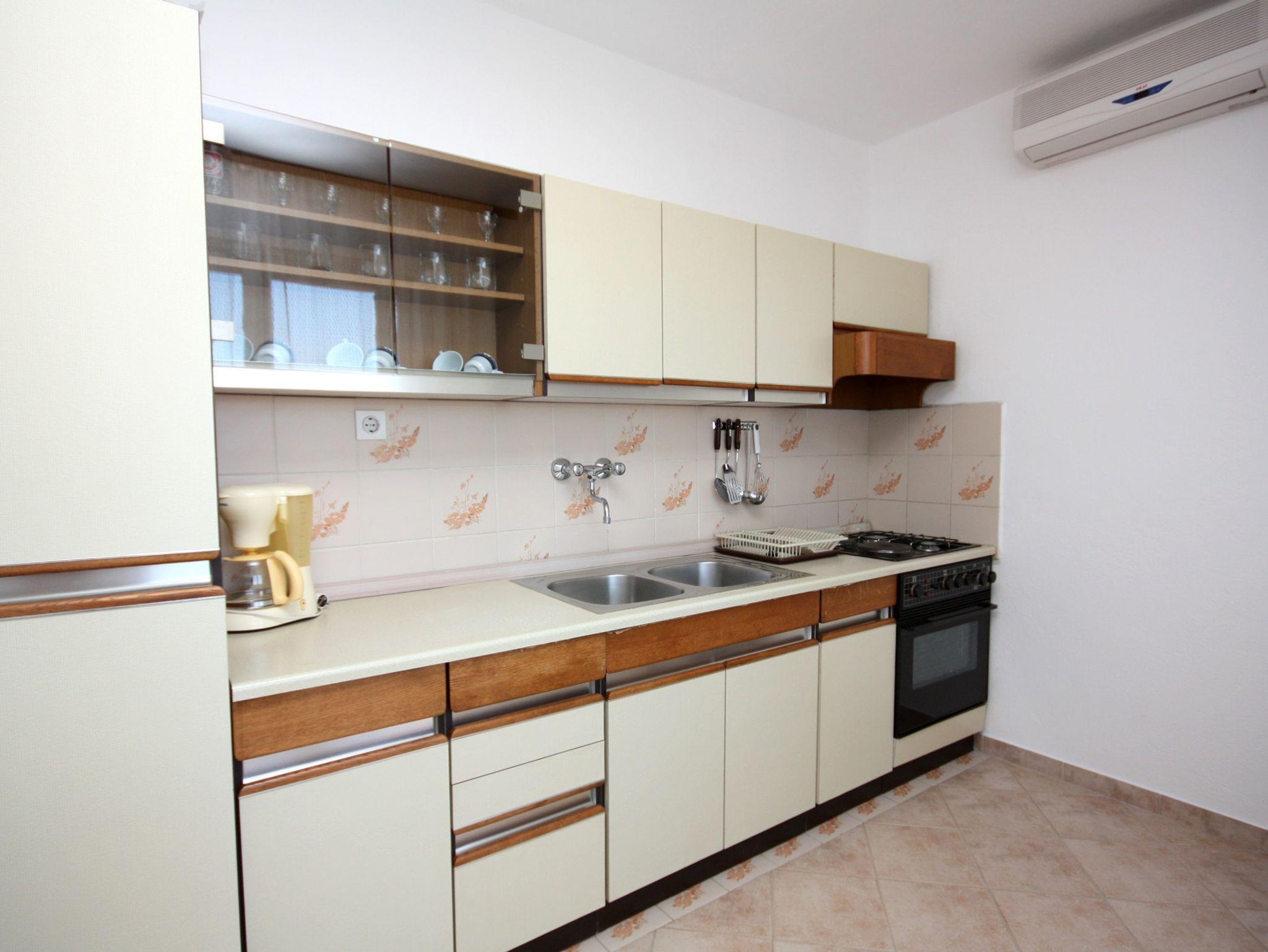 Ferienwohnung bietet Platz für 4 Gäste. Die Betten sind in Schlafzimmern, die es 2 gibt, innerhalb einer Gesamtfläche von 42m2, angeordnet. Die Gäste haben eine eigene Terrasse zur Verfügung, auf der sie in warmen Sommernächten genießen können. Das Apartment bietet Meerblick. Es ist erlaubt, Speisen auf dem Gemeinschafts-Grill vorzubereiten. In der Unterkunftseinheit besteht die Möglichkeit des Mitbringens von Haustieren gegen Aufpreis. IM PREIS INBEGRIFFEN: Kurtaxe, Endreinigung, Klimatisierung, Parkplatz, Internet. VERBINDLICHE ZUSÄTZLICHE KOSTEN: Aufzahlung für Kurzaufenthalte (prozentualer Zuschlag pro Nächtigungsanzahl: 30% - 1, 20% - 2, 10% - 3). UNVERBINDLICHE ZUSÄTZLICHE KOSTEN: Haustiere (5,00 € pro Nacht). Die Verfügbarkeit zusätzlicher Dienstleistungen in Ihrem reservierten Termin und die Preise derselben (falls nicht aufgeführt) müssen im Voraus überprüft werden. Zusätzliche Dienstleistungen die in der Zahlungsaufforderung nicht aufgeführt sind werden direkt beim Vermieter bezahlt, angenommen der Gast nutzt auch diese. Ermäßigung auf den Grundpreis: Gratistag 14=13 (bei einem Aufenthalt von 14 Tagen oder mehr erhalten Sie einen Gratistag für den Aufenthalt bis 31.12.26).