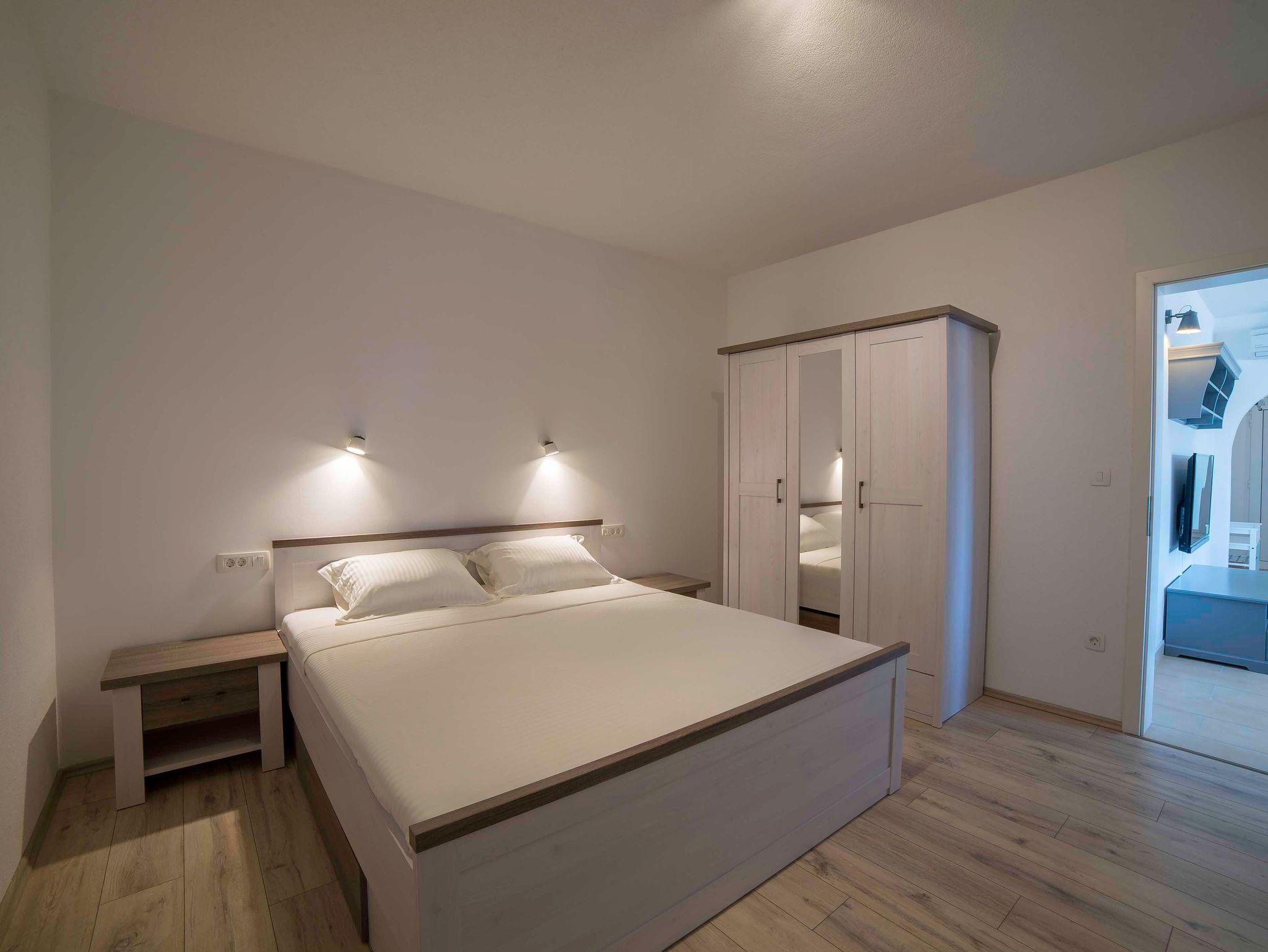 Ferienwohnung bietet Platz für 4 Gäste. Die Betten sind in Schlafzimmern, die es 2 gibt, innerhalb einer Gesamtfläche von 75m2, angeordnet. Die Gäste haben einen eigenen Balkon zur Verfügung, auf der sie in warmen Sommernächten genießen können. Das Apartment bietet Meerblick. Es ist erlaubt, Speisen auf dem Gemeinschafts-Grill vorzubereiten. In der Unterkunftseinheit besteht die Möglichkeit des Mitbringens von Haustieren, und die Dienstleistung ist im Preis der Unterkunft enthalten. IM PREIS INBEGRIFFEN: Kurtaxe, Endreinigung, Klimatisierung, Parkplatz, Internet, Haustiere, Kinderbett, Bügeleisen, Bügelbrett, Föhn, tragbarer Grill. UNVERBINDLICHE ZUSÄTZLICHE KOSTEN: Bootsanlegeplatz (10,00 € pro Nacht), Zusatzbett (10,00 € pro Nacht). Die Verfügbarkeit zusätzlicher Dienstleistungen in Ihrem reservierten Termin und die Preise derselben (falls nicht aufgeführt) müssen im Voraus überprüft werden. Zusätzliche Dienstleistungen die in der Zahlungsaufforderung nicht aufgeführt sind werden direkt beim Vermieter bezahlt, angenommen der Gast nutzt auch diese. Ermäßigung auf den Grundpreis: Gratistag 14=13 (bei einem Aufenthalt von 14 Tagen oder mehr erhalten Sie einen Gratistag für den Aufenthalt bis 31.12.26).