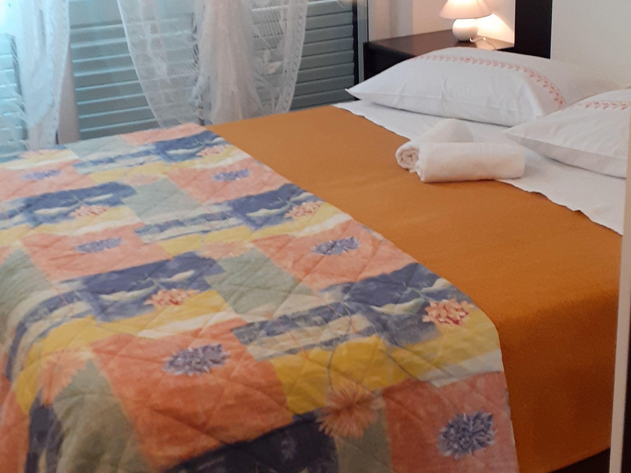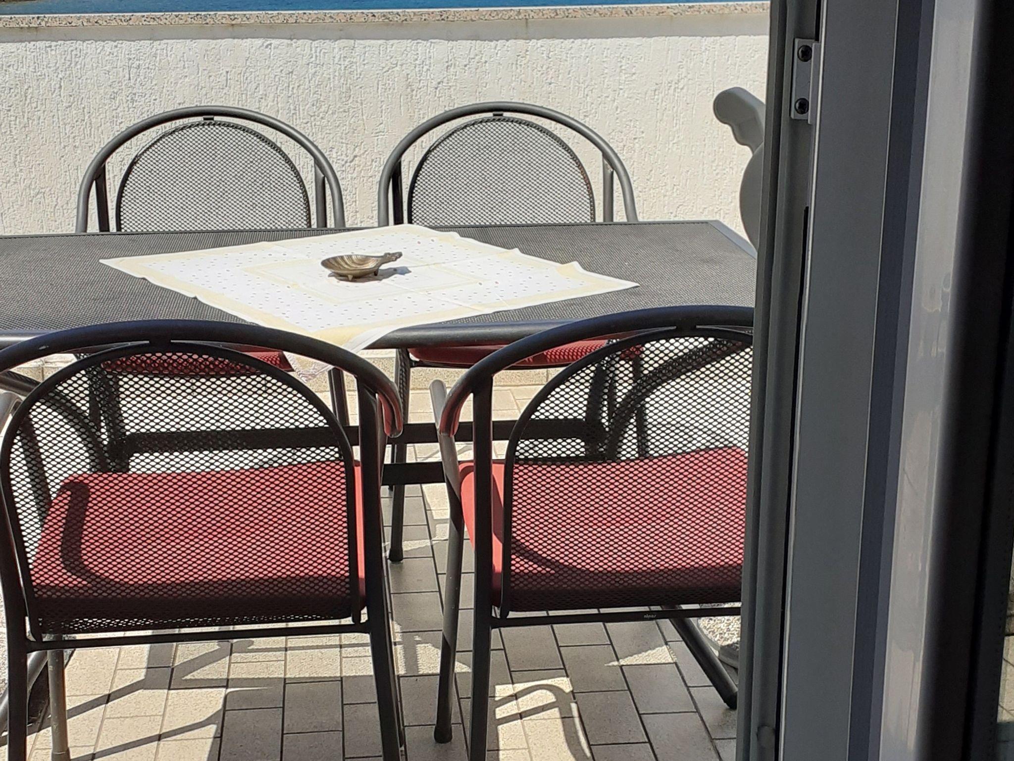Ferienwohnung bietet Platz für 4 Gäste. Die Betten sind in Schlafzimmern, die es 2 gibt, innerhalb einer Gesamtfläche von 46m2, angeordnet. Die Gäste haben eine eigene Terrasse zur Verfügung, auf der sie in warmen Sommernächten genießen können. Das Apartment bietet Meerblick. Es ist erlaubt, Speisen auf dem Gemeinschafts-Grill vorzubereiten. Räume der gebuchten Unterkunftseinheit werden nicht in eine Ganze verbunden. IM PREIS INBEGRIFFEN: Kurtaxe, Endreinigung, Klimatisierung, Parkplatz, Internet, Bootsanlegeplatz, Liegestühle. VERBINDLICHE ZUSÄTZLICHE KOSTEN: Aufzahlung für Kurzaufenthalte (prozentualer Zuschlag pro Nächtigungsanzahl: 30% - 1, 20% - 2, 10% - 3). UNVERBINDLICHE ZUSÄTZLICHE KOSTEN: Wäschewaschen (5,00 € Waschen). Die Verfügbarkeit zusätzlicher Dienstleistungen in Ihrem reservierten Termin und die Preise derselben (falls nicht aufgeführt) müssen im Voraus überprüft werden. Zusätzliche Dienstleistungen die in der Zahlungsaufforderung nicht aufgeführt sind werden direkt beim Vermieter bezahlt, angenommen der Gast nutzt auch diese. Ermäßigung auf den Grundpreis: Gratistag 14=13 (bei einem Aufenthalt von 14 Tagen oder mehr erhalten Sie einen Gratistag für den Aufenthalt bis 31.12.26).