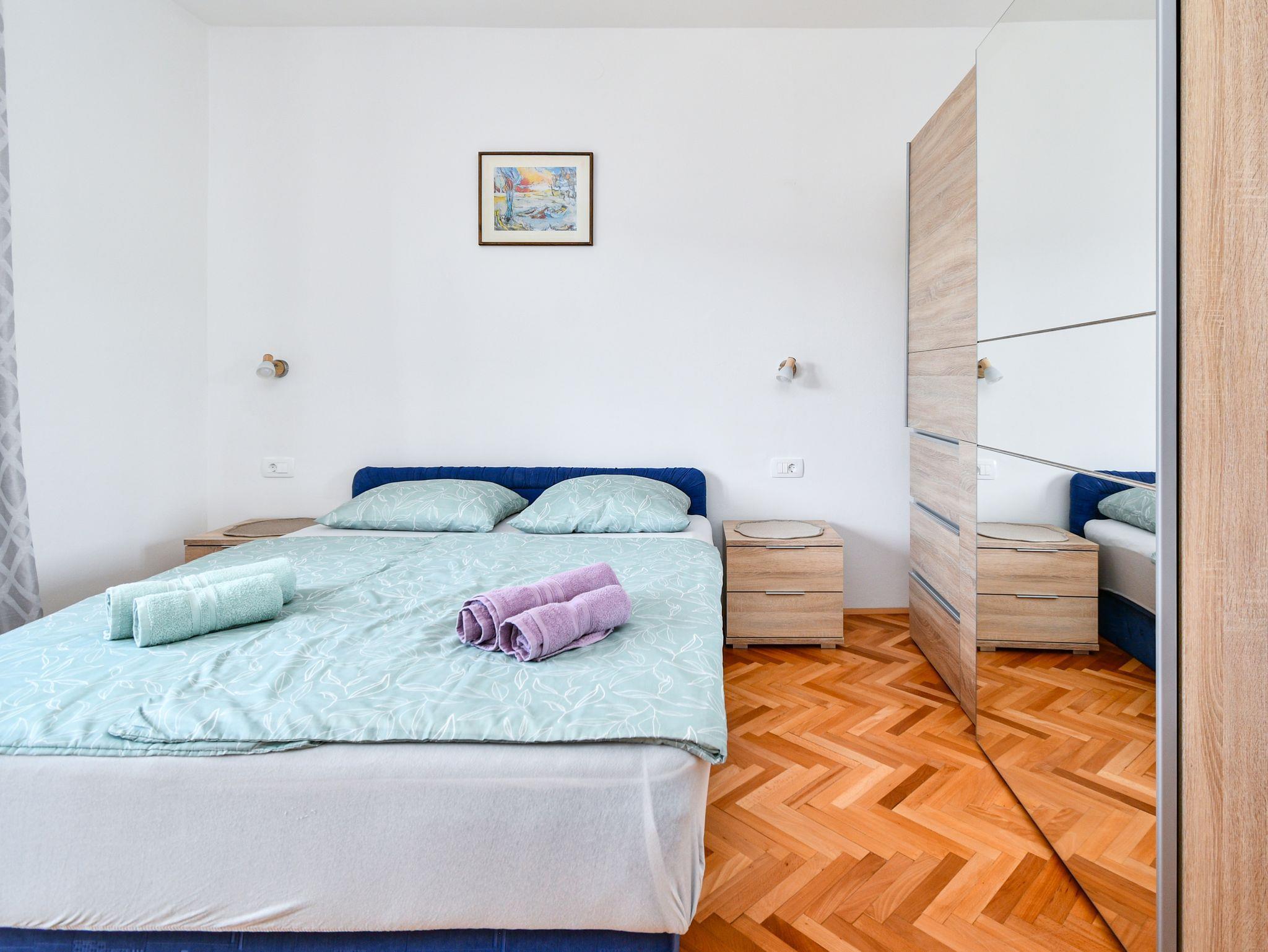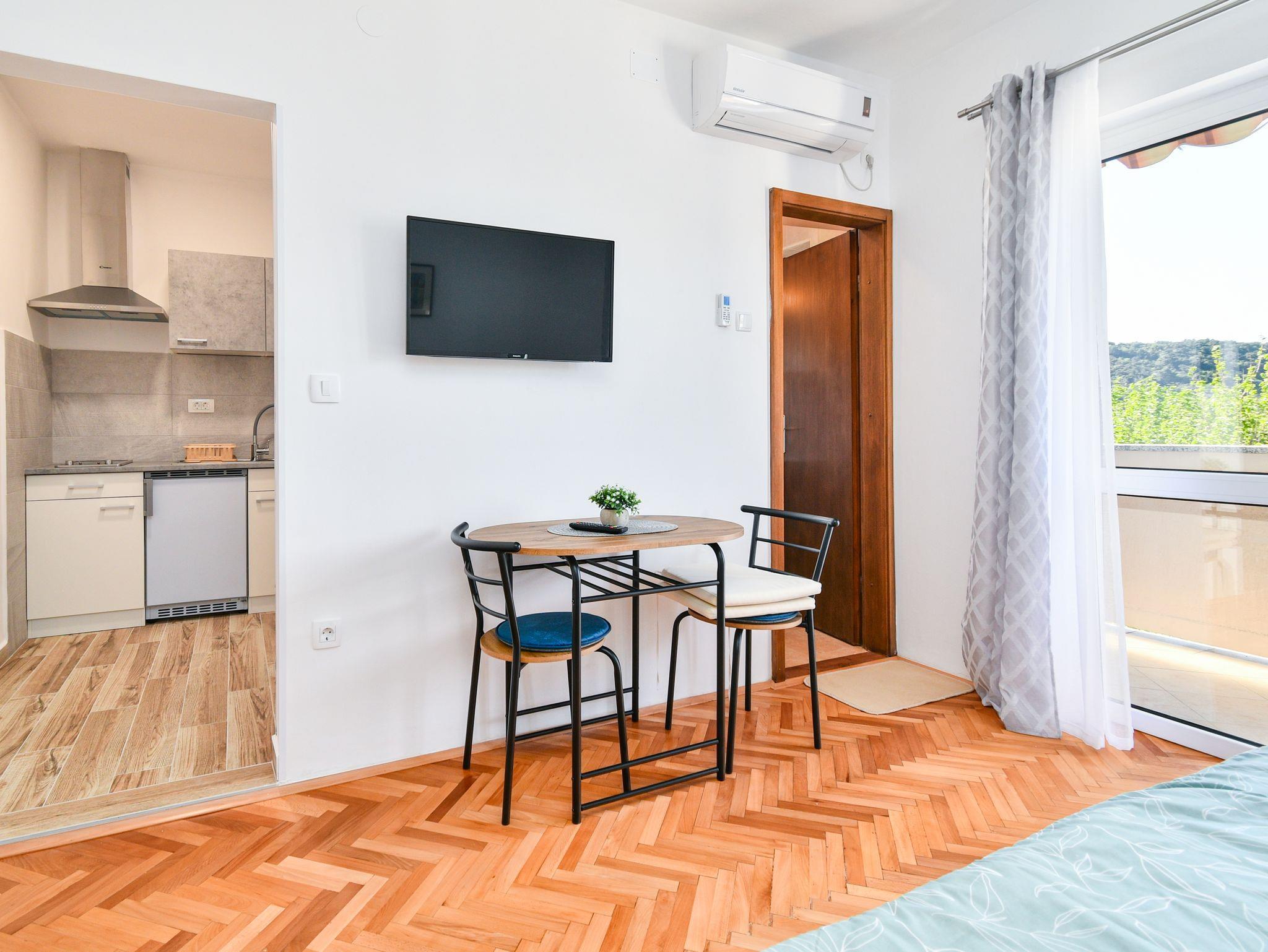 Studio bietet Platz für 2 Gäste. Die Betten sind in Schlafzimmern, die es 1 gibt, innerhalb einer Gesamtfläche von 20m2, angeordnet. Die Gäste haben einen eigenen Balkon zur Verfügung, auf der sie in warmen Sommernächten genießen können. Das Studio-Apartment bietet Meerblick. Es ist erlaubt, Speisen auf dem Gemeinschafts-Grill vorzubereiten. In der Unterkunftseinheit besteht die Möglichkeit des Mitbringens von Haustieren gegen Aufpreis. IM PREIS INBEGRIFFEN: Kurtaxe, Endreinigung, Klimatisierung, Parkplatz, Internet, Bootsanlegeplatz, Liegestühle. VERBINDLICHE ZUSÄTZLICHE KOSTEN: Aufzahlung für Kurzaufenthalte (prozentualer Zuschlag pro Nächtigungsanzahl: 30% - 1, 20% - 2, 10% - 3). UNVERBINDLICHE ZUSÄTZLICHE KOSTEN: Frühstück (10,00 €, 50% Nachlass für Kinder zwischen 4 und 12 Jahren, Kinder bis 4 Jahre sind frei.), Haustiere (7,00 € pro Nacht). Die Verfügbarkeit zusätzlicher Dienstleistungen in Ihrem reservierten Termin und die Preise derselben (falls nicht aufgeführt) müssen im Voraus überprüft werden. Zusätzliche Dienstleistungen die in der Zahlungsaufforderung nicht aufgeführt sind werden direkt beim Vermieter bezahlt, angenommen der Gast nutzt auch diese.