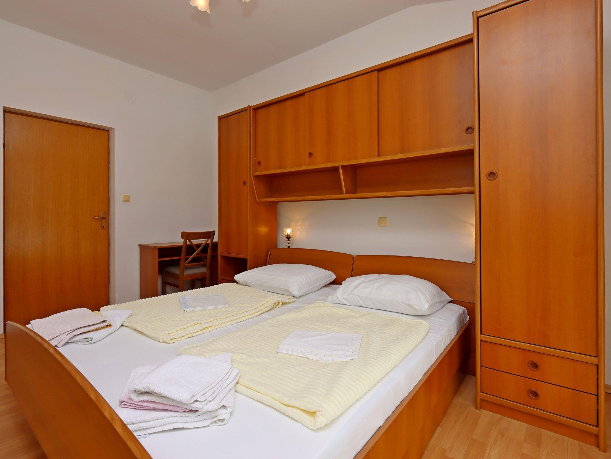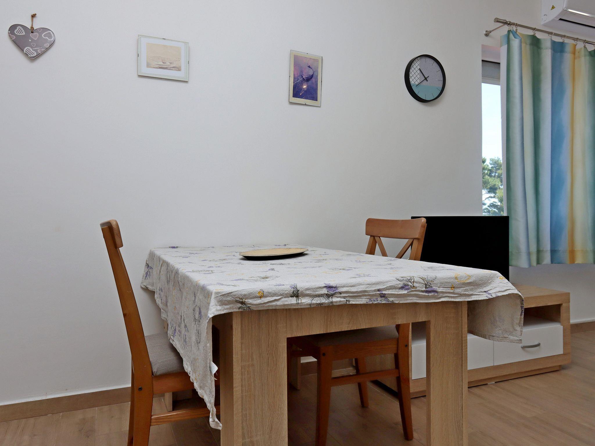 Ferienwohnung bietet Platz für 2 Gäste. Die Betten sind in Schlafzimmern, die es 1 gibt, innerhalb einer Gesamtfläche von 41m2, angeordnet. Die Gäste haben eine eigene Terrasse zur Verfügung, auf der sie in warmen Sommernächten genießen können. Das Apartment bietet Meerblick. Es ist erlaubt, Speisen auf dem Gemeinschafts-Grill vorzubereiten. IM PREIS INBEGRIFFEN: Kurtaxe, Endreinigung, Klimatisierung, Parkplatz, Internet, Kinderbett, Bügeleisen, Bügelbrett, Föhn. VERBINDLICHE ZUSÄTZLICHE KOSTEN: Aufzahlung für Kurzaufenthalte (prozentualer Zuschlag pro Nächtigungsanzahl: 30% - 1, 20% - 2, 10% - 3). UNVERBINDLICHE ZUSÄTZLICHE KOSTEN: Bootsanlegeplatz (10,00 € pro Nacht), Zusatzbett (15,00 € pro Nacht). Die Verfügbarkeit zusätzlicher Dienstleistungen in Ihrem reservierten Termin und die Preise derselben (falls nicht aufgeführt) müssen im Voraus überprüft werden. Zusätzliche Dienstleistungen die in der Zahlungsaufforderung nicht aufgeführt sind werden direkt beim Vermieter bezahlt, angenommen der Gast nutzt auch diese.