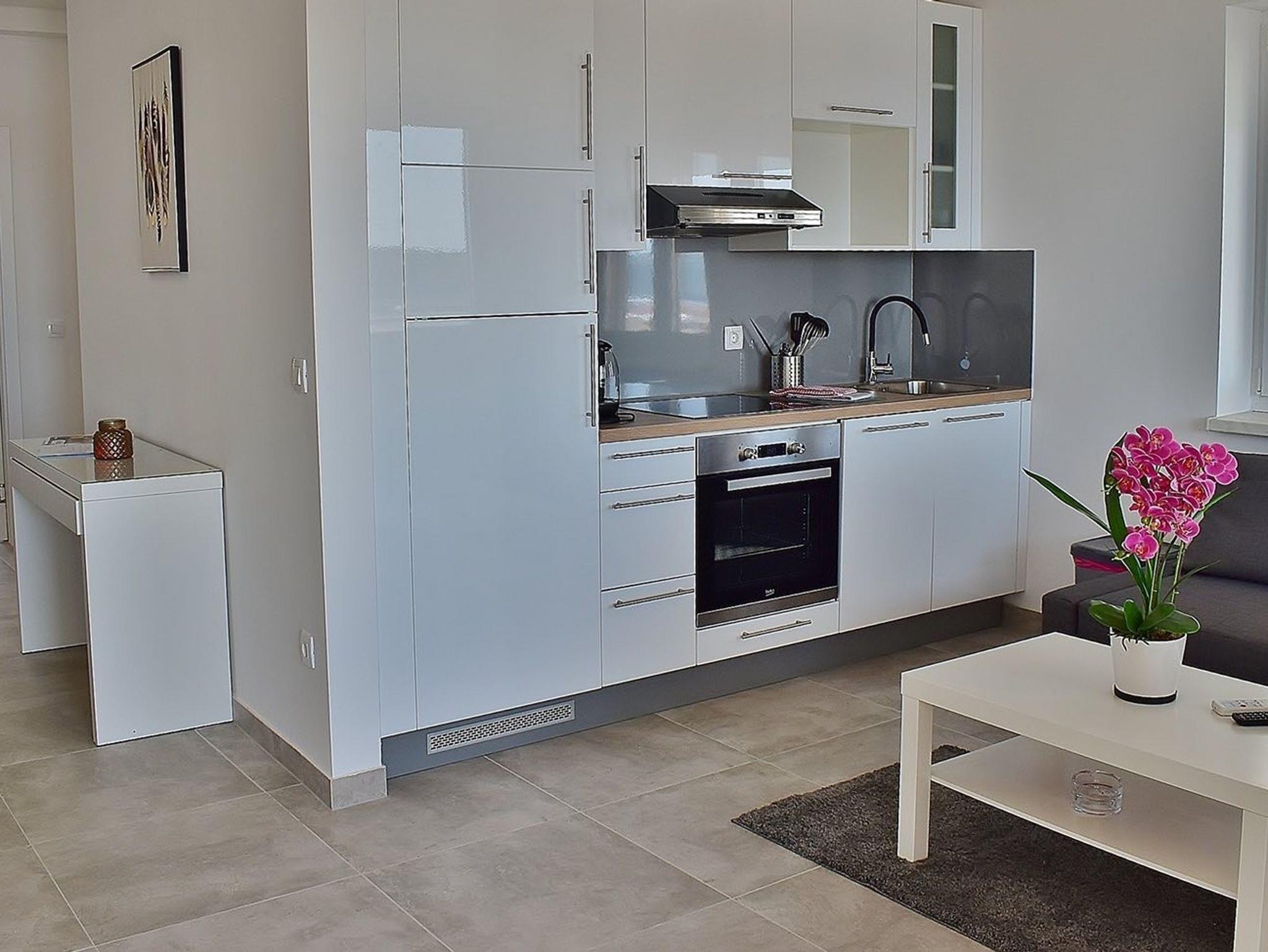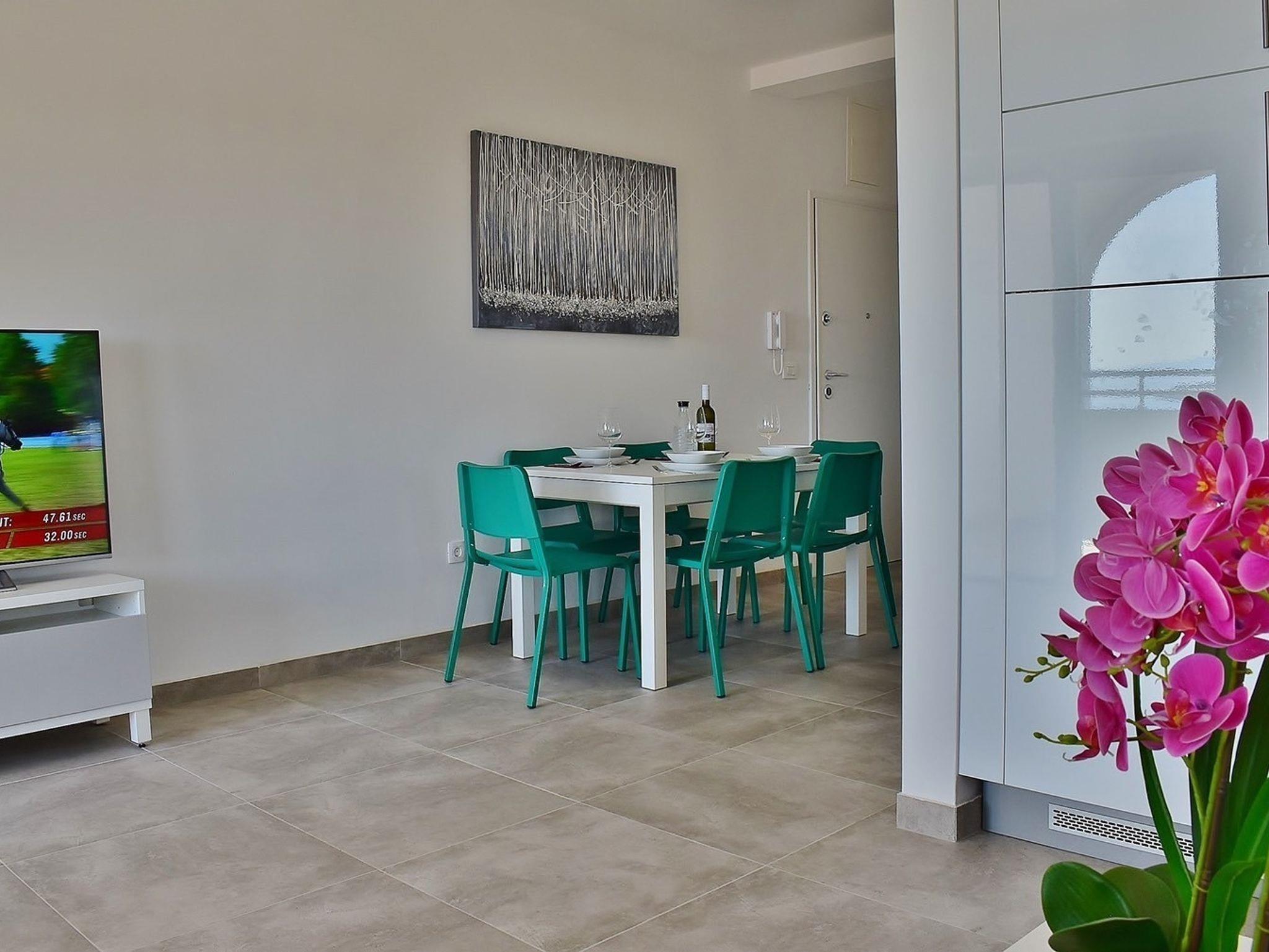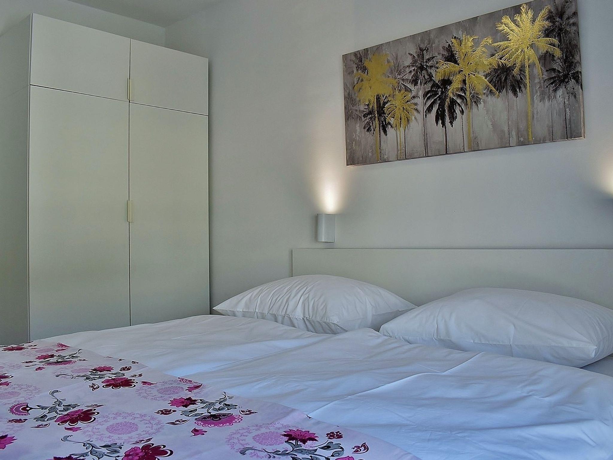 Ferienwohnung bietet Platz für 3 Gäste. Die Betten sind in Schlafzimmern, die es 2 gibt, innerhalb einer Gesamtfläche von 45m2, angeordnet. Die Gäste haben eine eigene Terrasse zur Verfügung, auf der sie in warmen Sommernächten genießen können. Das Apartment bietet Meerblick. Es ist erlaubt, Speisen auf dem Gemeinschafts-Grill vorzubereiten. IM PREIS INBEGRIFFEN: Kurtaxe, Endreinigung, Klimatisierung, Parkplatz, Internet, Kinderbett, Bügeleisen, Bügelbrett, Föhn, tragbarer Grill, 1 Bett für Kinder (im Preis enthalten). Die Verfügbarkeit zusätzlicher Dienstleistungen in Ihrem reservierten Termin und die Preise derselben (falls nicht aufgeführt) müssen im Voraus überprüft werden. Zusätzliche Dienstleistungen die in der Zahlungsaufforderung nicht aufgeführt sind werden direkt beim Vermieter bezahlt, angenommen der Gast nutzt auch diese.