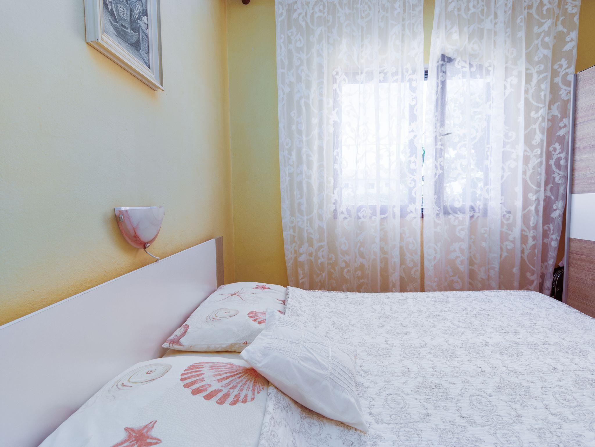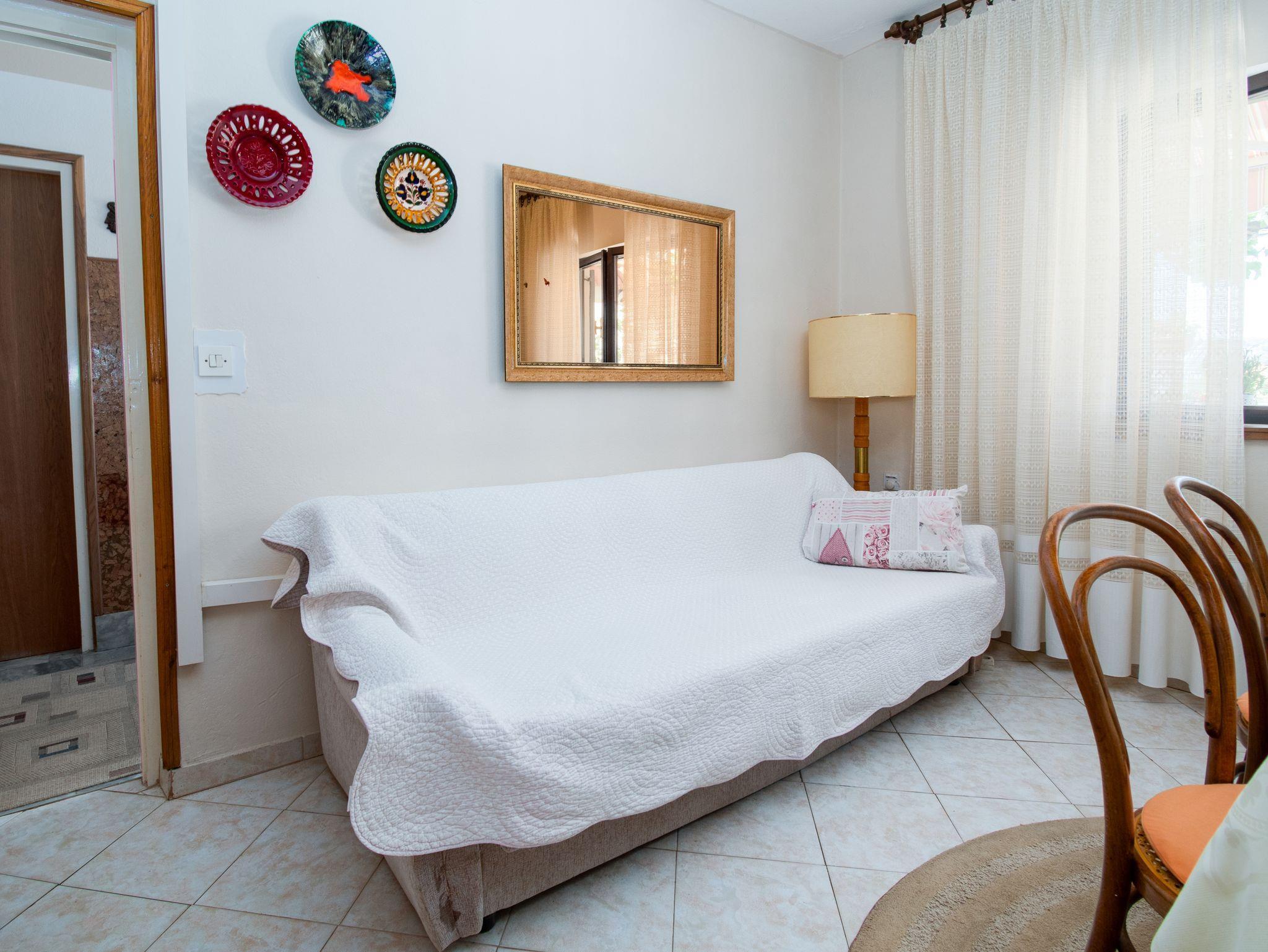 Ferienwohnung bietet Platz für 4 Gäste. Die Betten sind in Schlafzimmern, die es 2 gibt, innerhalb einer Gesamtfläche von 46m2, angeordnet. Die Gäste haben eine eigene Terrasse zur Verfügung, auf der sie in warmen Sommernächten genießen können. Es ist erlaubt, Speisen auf dem Gemeinschafts-Grill vorzubereiten. IM PREIS INBEGRIFFEN: Kurtaxe, Endreinigung, Klimatisierung, Parkplatz, Internet. VERBINDLICHE ZUSÄTZLICHE KOSTEN: Aufzahlung für Kurzaufenthalte (prozentualer Zuschlag pro Nächtigungsanzahl: 30% - 1, 20% - 2, 10% - 3). UNVERBINDLICHE ZUSÄTZLICHE KOSTEN: Frühstück (7,00 €, 50% Nachlass für Kinder zwischen 4 und 12 Jahren, Kinder bis 4 Jahre sind frei.), Wäschewaschen (3,00 € Waschen), Zusatzbett (10,00 € pro Nacht). Die Verfügbarkeit zusätzlicher Dienstleistungen in Ihrem reservierten Termin und die Preise derselben (falls nicht aufgeführt) müssen im Voraus überprüft werden. Zusätzliche Dienstleistungen die in der Zahlungsaufforderung nicht aufgeführt sind werden direkt beim Vermieter bezahlt, angenommen der Gast nutzt auch diese.