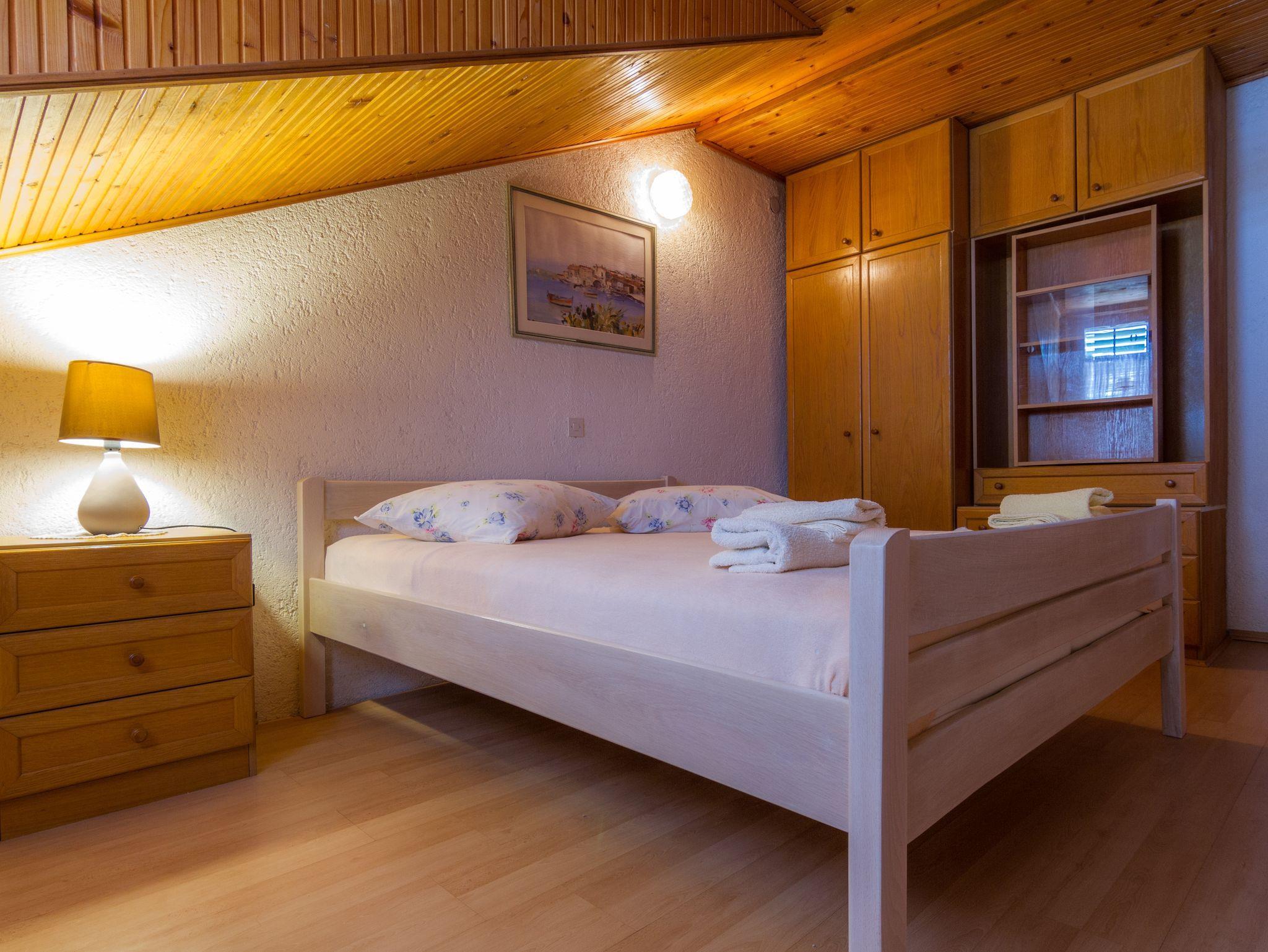 Ferienwohnung bietet Platz für 5 Gäste. Die Betten sind in Schlafzimmern, die es 2 gibt, innerhalb einer Gesamtfläche von 56m2, angeordnet. Die Gäste haben eine eigene Terrasse zur Verfügung, auf der sie in warmen Sommernächten genießen können. Das Apartment bietet Meerblick. Es ist erlaubt, Speisen auf dem Gemeinschafts-Grill vorzubereiten. IM PREIS INBEGRIFFEN: Kurtaxe, Endreinigung, Klimatisierung, Parkplatz, Internet, Kinderbett, Bügeleisen, Bügelbrett, Föhn. UNVERBINDLICHE ZUSÄTZLICHE KOSTEN: Wäschewaschen (7,00 € Waschen), Bootsanlegeplatz (10,00 € pro Nacht), Zusatzbett (7,00 € pro Nacht). Die Verfügbarkeit zusätzlicher Dienstleistungen in Ihrem reservierten Termin und die Preise derselben (falls nicht aufgeführt) müssen im Voraus überprüft werden. Zusätzliche Dienstleistungen die in der Zahlungsaufforderung nicht aufgeführt sind werden direkt beim Vermieter bezahlt, angenommen der Gast nutzt auch diese.