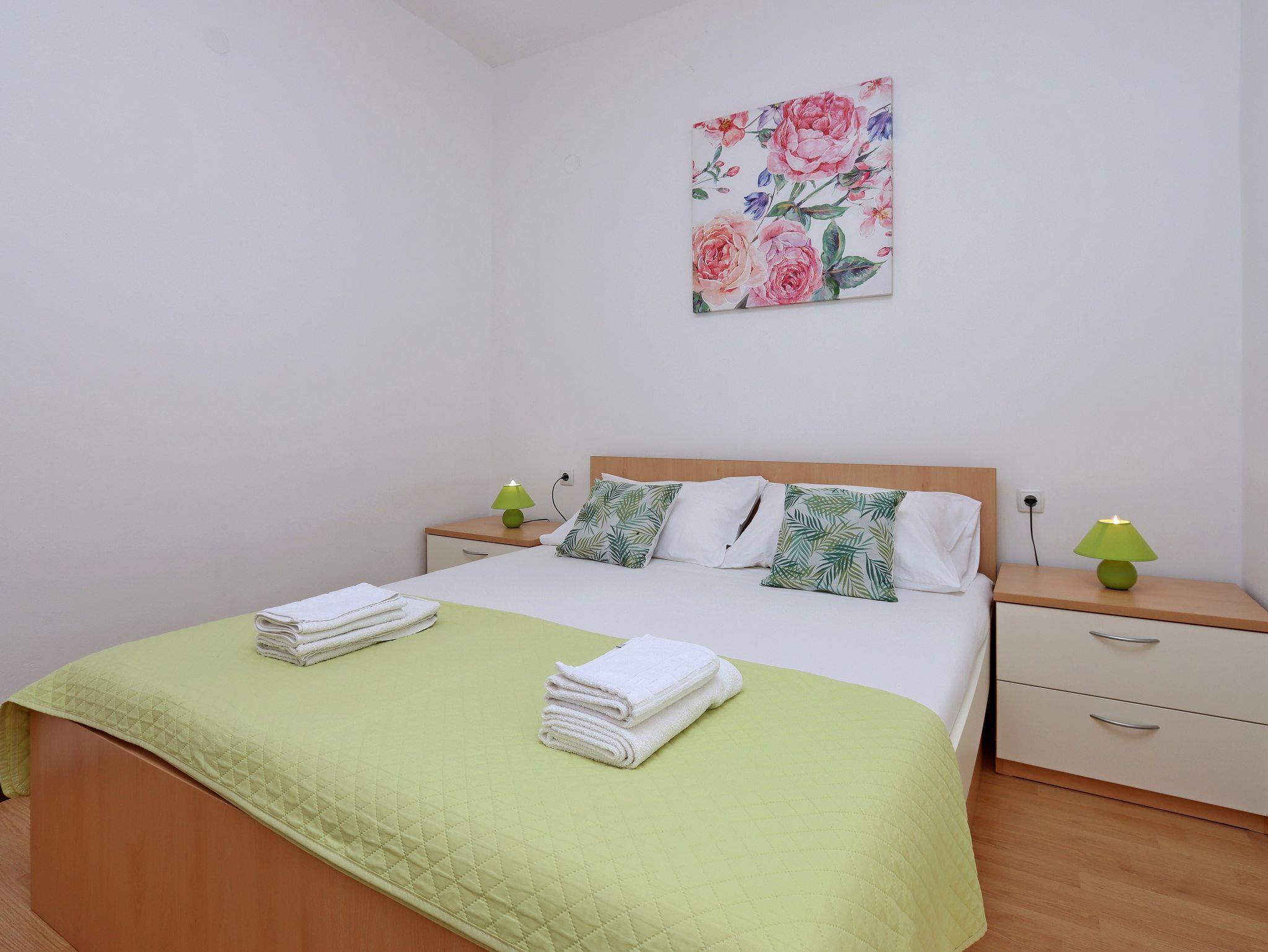 Ferienwohnung bietet Platz für 4 Gäste. Die Betten sind in Schlafzimmern, die es 2 gibt, innerhalb einer Gesamtfläche von 36m2, angeordnet. Die Gäste haben eine eigene Terrasse zur Verfügung, auf der sie in warmen Sommernächten genießen können. Das Apartment bietet Meerblick. Es ist erlaubt, Speisen auf dem Gemeinschafts-Grill vorzubereiten. In der Unterkunftseinheit besteht die Möglichkeit des Mitbringens von Haustieren gegen Aufpreis. IM PREIS INBEGRIFFEN: Kurtaxe, Endreinigung, Parkplatz, Internet, Wäschewaschen, Bügeleisen. VERBINDLICHE ZUSÄTZLICHE KOSTEN: Aufzahlung für Kurzaufenthalte (prozentualer Zuschlag pro Nächtigungsanzahl: 30% - 1, 20% - 2, 10% - 3). UNVERBINDLICHE ZUSÄTZLICHE KOSTEN: Klimatisierung (5,00 € pro Nacht), Bootsanlegeplatz (7,00 € pro Nacht), Haustiere (3,00 € pro Nacht). Die Verfügbarkeit zusätzlicher Dienstleistungen in Ihrem reservierten Termin und die Preise derselben (falls nicht aufgeführt) müssen im Voraus überprüft werden. Zusätzliche Dienstleistungen die in der Zahlungsaufforderung nicht aufgeführt sind werden direkt beim Vermieter bezahlt, angenommen der Gast nutzt auch diese.