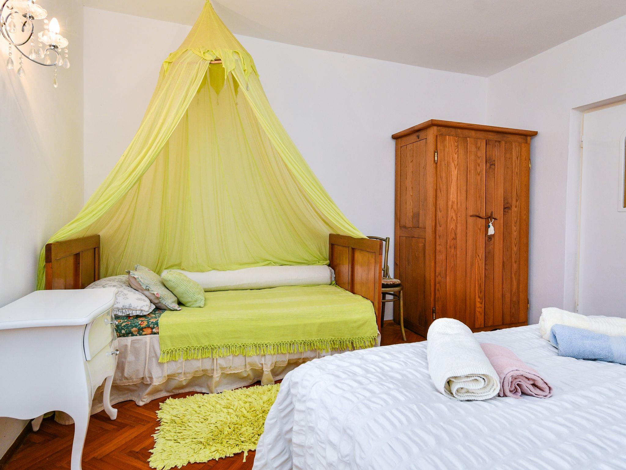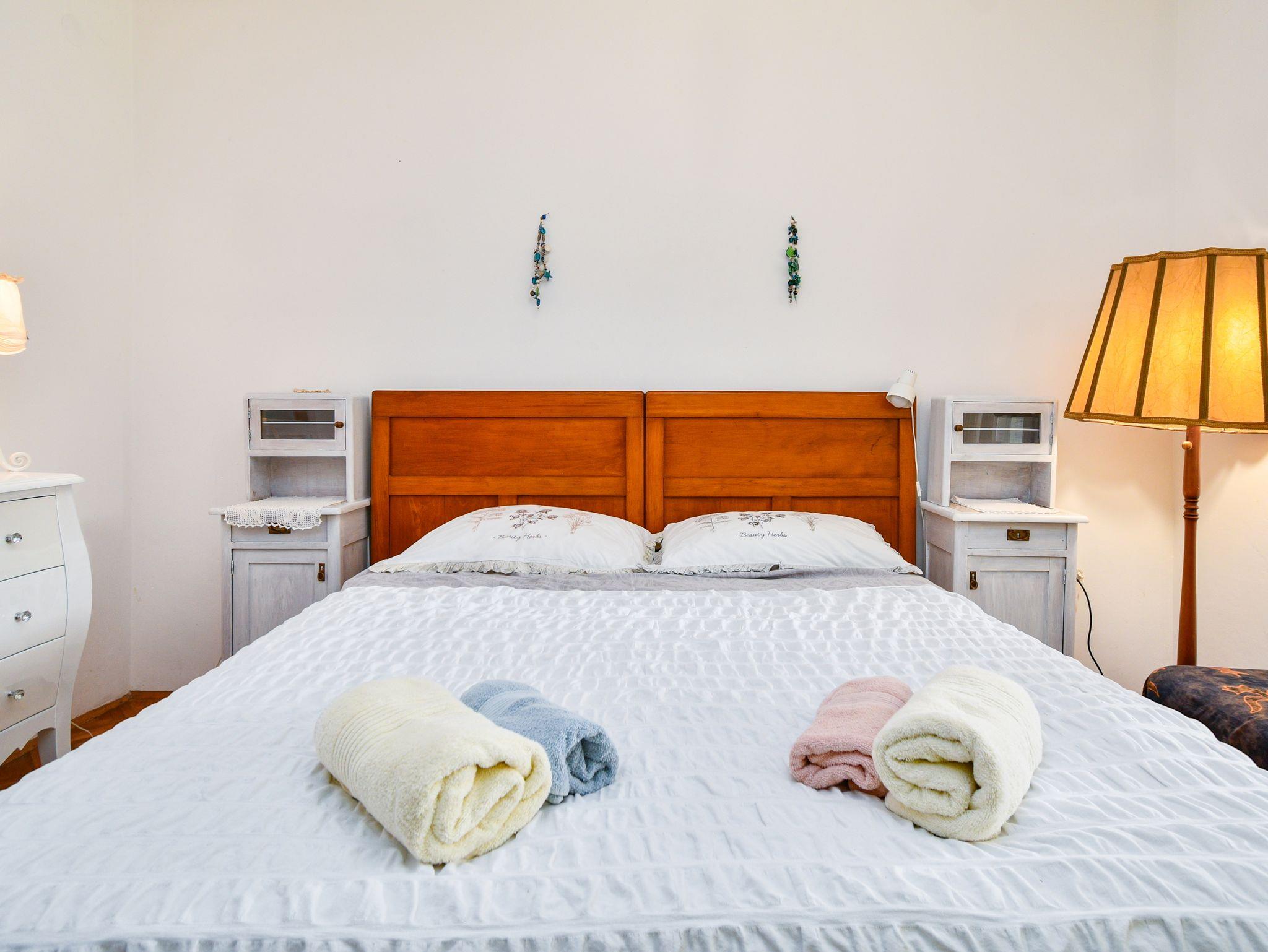 Ferienwohnung bietet Platz für 4 Gäste. Die Betten sind in Schlafzimmern, die es 2 gibt, innerhalb einer Gesamtfläche von 82m2, angeordnet. Die Gäste haben eine eigene Terrasse zur Verfügung, auf der sie in warmen Sommernächten genießen können. Es ist erlaubt, Speisen auf dem Gemeinschafts-Grill vorzubereiten. Während ihres Aufenthalts können Gäste das gemeinsam zur Nutzung stehende Schwimmbad benutzen. In der Unterkunftseinheit besteht die Möglichkeit des Mitbringens von Haustieren gegen Aufpreis. In der gebuchten Unterkunftseinheit zahlt man am Ort ein Depositum ( der Preis ist an der Internetseite angeführt ). IM PREIS INBEGRIFFEN: Kurtaxe, Endreinigung, Klimatisierung, Pool, Parkplatz, Internet, Kinderbett, Föhn, 1 Bett für Kinder (im Preis enthalten). VERBINDLICHE ZUSÄTZLICHE KOSTEN: Kaution (150,00 € Einmalzahlung). UNVERBINDLICHE ZUSÄTZLICHE KOSTEN: Haustiere (20,00 € pro Nacht), Fahrrad (10,00 € täglich (pro Stück)), Zusatzbett (10,00 € pro Nacht). Die Verfügbarkeit zusätzlicher Dienstleistungen in Ihrem reservierten Termin und die Preise derselben (falls nicht aufgeführt) müssen im Voraus überprüft werden. Zusätzliche Dienstleistungen die in der Zahlungsaufforderung nicht aufgeführt sind werden direkt beim Vermieter bezahlt, angenommen der Gast nutzt auch diese.
