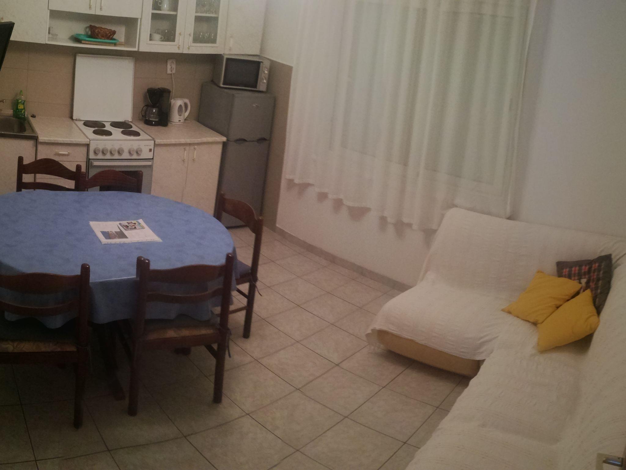 Ferienwohnung bietet Platz für 5 Gäste. Die Betten sind in Schlafzimmern, die es 2 gibt, innerhalb einer Gesamtfläche von 55m2, angeordnet. Die Gäste haben einen eigenen Balkon zur Verfügung, auf der sie in warmen Sommernächten genießen können. Das Apartment bietet Meerblick. Es ist erlaubt, Speisen auf dem Gemeinschafts-Grill vorzubereiten. IM PREIS INBEGRIFFEN: Kurtaxe, Endreinigung, Klimatisierung, Parkplatz, Internet, Wäschewaschen, Kinderbett, Bügeleisen, Bügelbrett, Föhn, Sonnenschirm. VERBINDLICHE ZUSÄTZLICHE KOSTEN: Aufzahlung für Kurzaufenthalte (prozentualer Zuschlag pro Nächtigungsanzahl: 30% - 1, 20% - 2, 10% - 3). Die Verfügbarkeit zusätzlicher Dienstleistungen in Ihrem reservierten Termin und die Preise derselben (falls nicht aufgeführt) müssen im Voraus überprüft werden. Zusätzliche Dienstleistungen die in der Zahlungsaufforderung nicht aufgeführt sind werden direkt beim Vermieter bezahlt, angenommen der Gast nutzt auch diese.