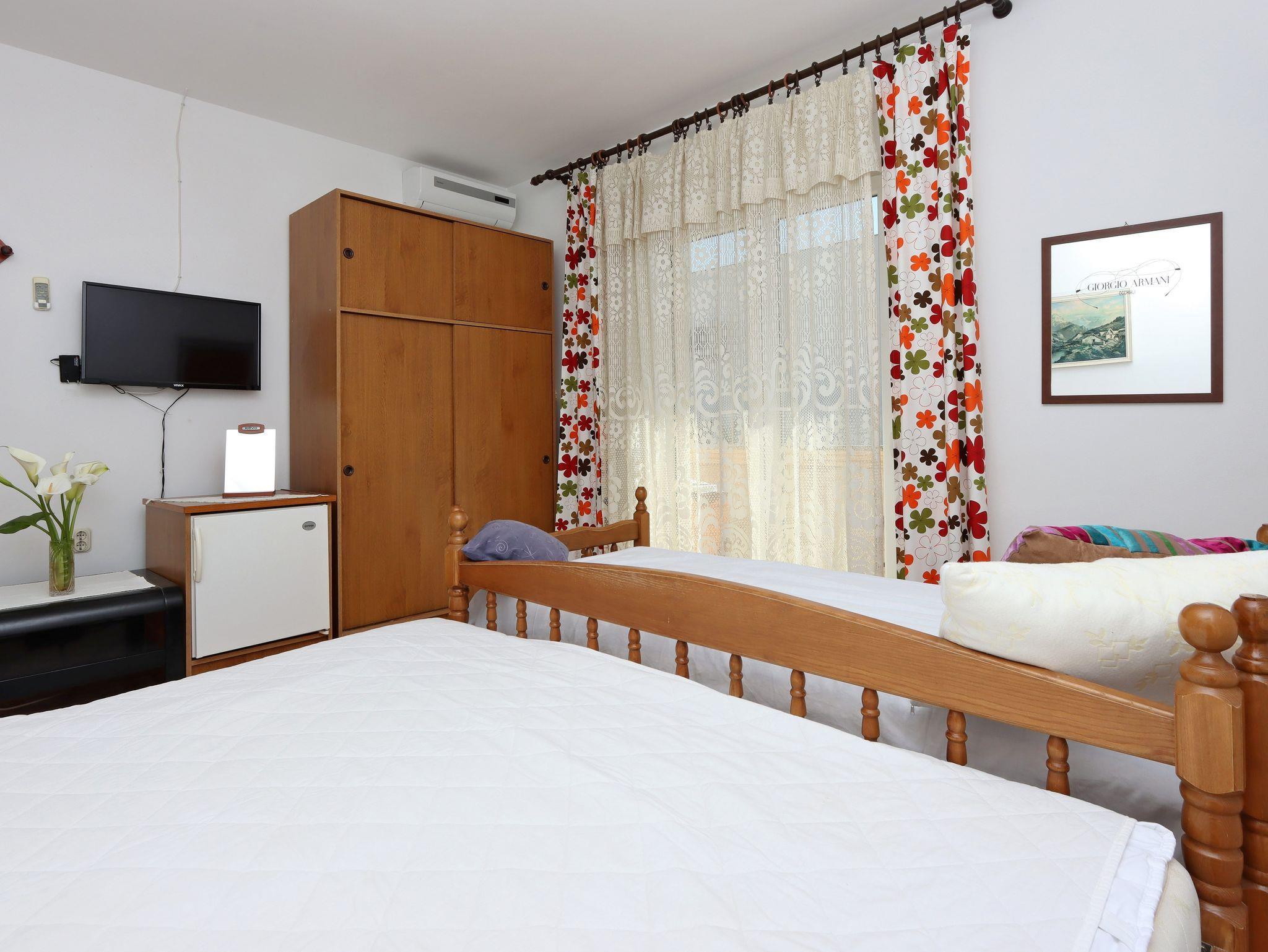 Zimmer bietet Platz für 2 Gäste. Die Betten sind in Schlafzimmern, die es 1 gibt, innerhalb einer Gesamtfläche von 19m2, angeordnet. Die Gäste haben einen eigenen Balkon zur Verfügung, auf der sie in warmen Sommernächten genießen können. Es ist erlaubt, Speisen auf dem Gemeinschafts-Grill vorzubereiten. Die reservierte Unterkunftseinheit ist ein Zimmer mit eigenem Badezimmer ohne die Möglichkeit der Nutzung einer Küche. IM PREIS INBEGRIFFEN: Kurtaxe, Endreinigung, Parkplatz, Internet, Bootsanlegeplatz, Kinderbett, Bügeleisen, Bügelbrett, Föhn, Sonnenschirm. VERBINDLICHE ZUSÄTZLICHE KOSTEN: Aufzahlung für Kurzaufenthalte (prozentualer Zuschlag pro Nächtigungsanzahl: 30% - 1, 20% - 2, 10% - 3). UNVERBINDLICHE ZUSÄTZLICHE KOSTEN: Frühstück (10,00 €, 50% Nachlass für Kinder zwischen 4 und 12 Jahren, Kinder bis 4 Jahre sind frei.), Klimatisierung (5,00 € pro Nacht), 1 Bett für Kinder (5,00 € Person/Tag). Die Verfügbarkeit zusätzlicher Dienstleistungen in Ihrem reservierten Termin und die Preise derselben (falls nicht aufgeführt) müssen im Voraus überprüft werden. Zusätzliche Dienstleistungen die in der Zahlungsaufforderung nicht aufgeführt sind werden direkt beim Vermieter bezahlt, angenommen der Gast nutzt auch diese.