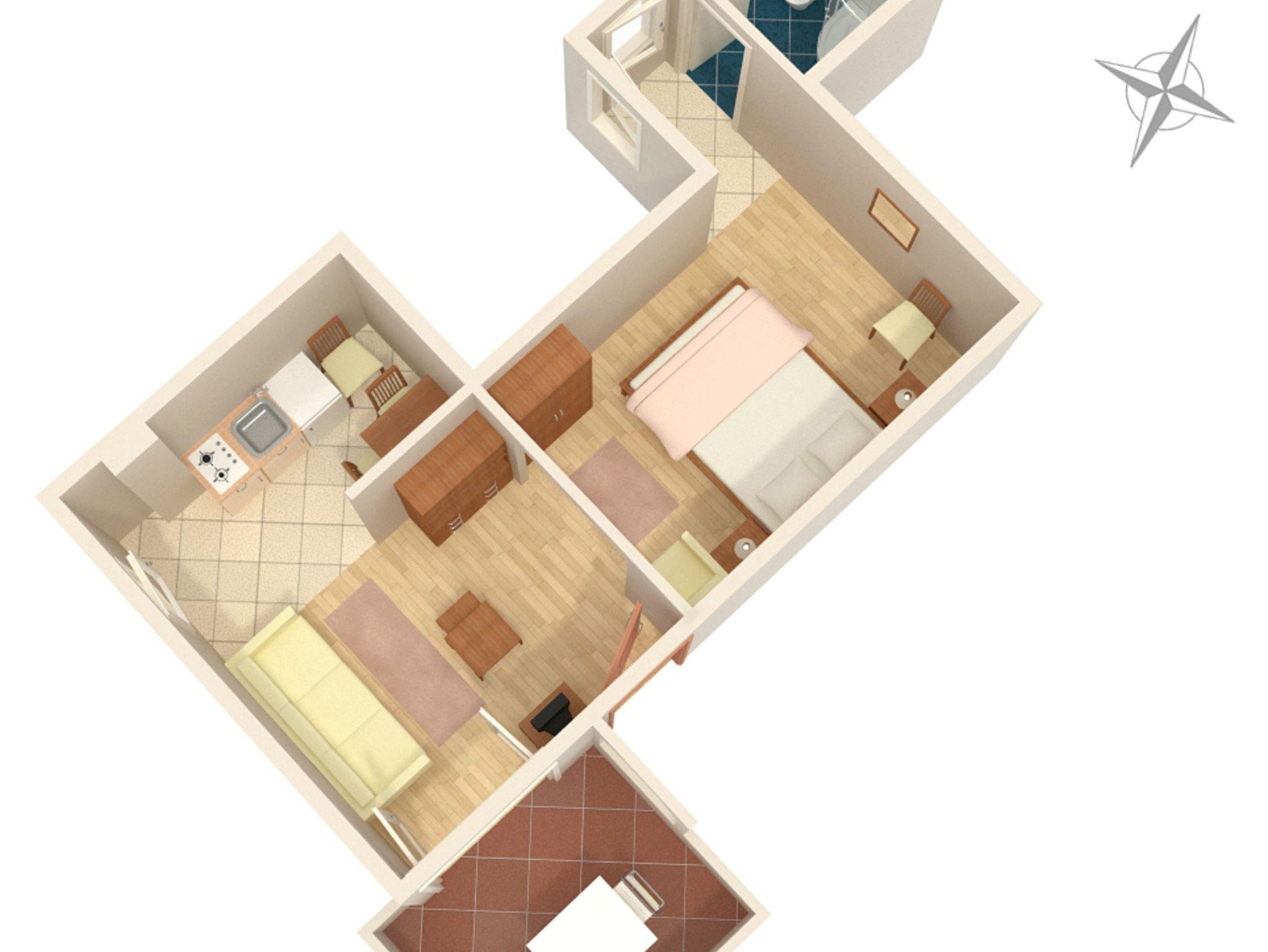 Studio bietet Platz für 3 Gäste. Die Betten sind in Schlafzimmern, die es 1 gibt, und in Wohnzimmer, innerhalb einer Gesamtfläche von 32m2, angeordnet. Die Gäste haben eine eigene Terrasse zur Verfügung, auf der sie in warmen Sommernächten genießen können. Es ist erlaubt, Speisen auf dem Gemeinschafts-Grill vorzubereiten. IM PREIS INBEGRIFFEN: Kurtaxe, Endreinigung, Klimatisierung, Zentralheizung, Parkplatz, Internet, Föhn. VERBINDLICHE ZUSÄTZLICHE KOSTEN: Aufzahlung für Kurzaufenthalte (prozentualer Zuschlag pro Nächtigungsanzahl: 30% - 1, 20% - 2, 10% - 3). UNVERBINDLICHE ZUSÄTZLICHE KOSTEN: Wäschewaschen (5,00 € Waschen), Bootsanlegeplatz (5,00 € pro Nacht). Die Verfügbarkeit zusätzlicher Dienstleistungen in Ihrem reservierten Termin und die Preise derselben (falls nicht aufgeführt) müssen im Voraus überprüft werden. Zusätzliche Dienstleistungen die in der Zahlungsaufforderung nicht aufgeführt sind werden direkt beim Vermieter bezahlt, angenommen der Gast nutzt auch diese. Ermäßigung auf den Grundpreis: Gratistag 21=19 (bei einem Aufenthalt von 21 Tagen oder mehr erhalten Sie 2 Gratistage für den Aufenthalt bis 31.12.26).