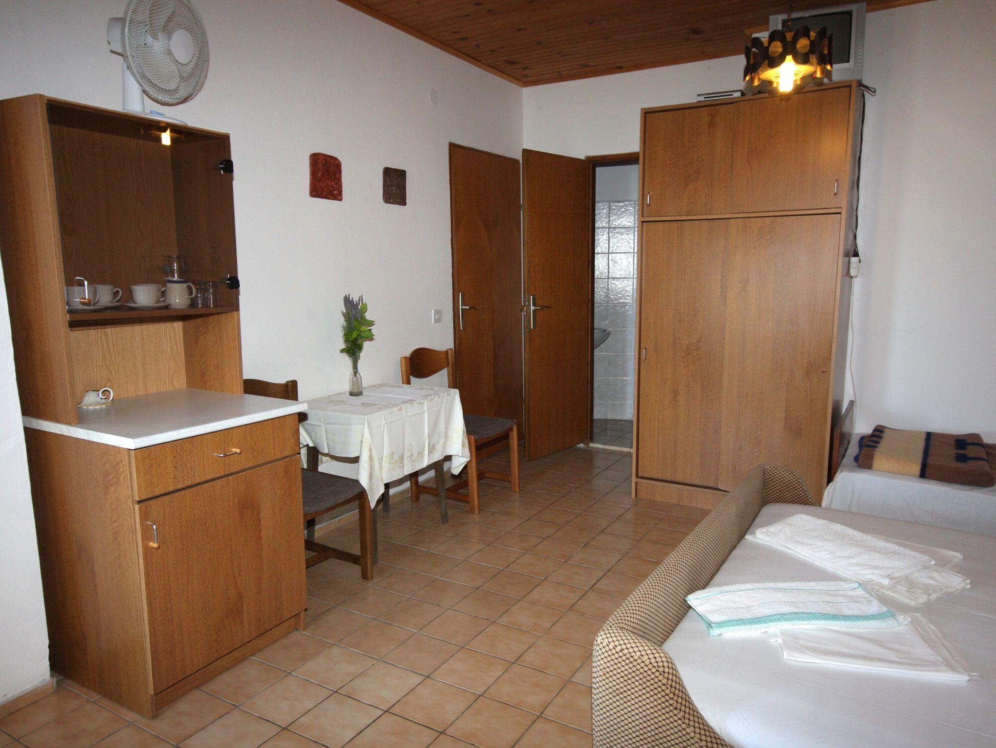 Studio bietet Platz für 3 Gäste. Die Betten sind in Schlafzimmern, die es 1 gibt, innerhalb einer Gesamtfläche von 25m2, angeordnet. Die Gäste haben eine eigene Terrasse zur Verfügung, auf der sie in warmen Sommernächten genießen können. Das Studio-Apartment bietet Meerblick. In der Unterkunftseinheit besteht die Möglichkeit des Mitbringens von Haustieren gegen Aufpreis. IM PREIS INBEGRIFFEN: Kurtaxe, Endreinigung, Parkplatz, Internet, Föhn. VERBINDLICHE ZUSÄTZLICHE KOSTEN: Aufzahlung für Kurzaufenthalte (prozentualer Zuschlag pro Nächtigungsanzahl: 30% - 1, 20% - 2, 10% - 3). UNVERBINDLICHE ZUSÄTZLICHE KOSTEN: Klimatisierung (7,00 € pro Nacht), Haustiere (15,00 € pro Nacht). Die Verfügbarkeit zusätzlicher Dienstleistungen in Ihrem reservierten Termin und die Preise derselben (falls nicht aufgeführt) müssen im Voraus überprüft werden. Zusätzliche Dienstleistungen die in der Zahlungsaufforderung nicht aufgeführt sind werden direkt beim Vermieter bezahlt, angenommen der Gast nutzt auch diese.