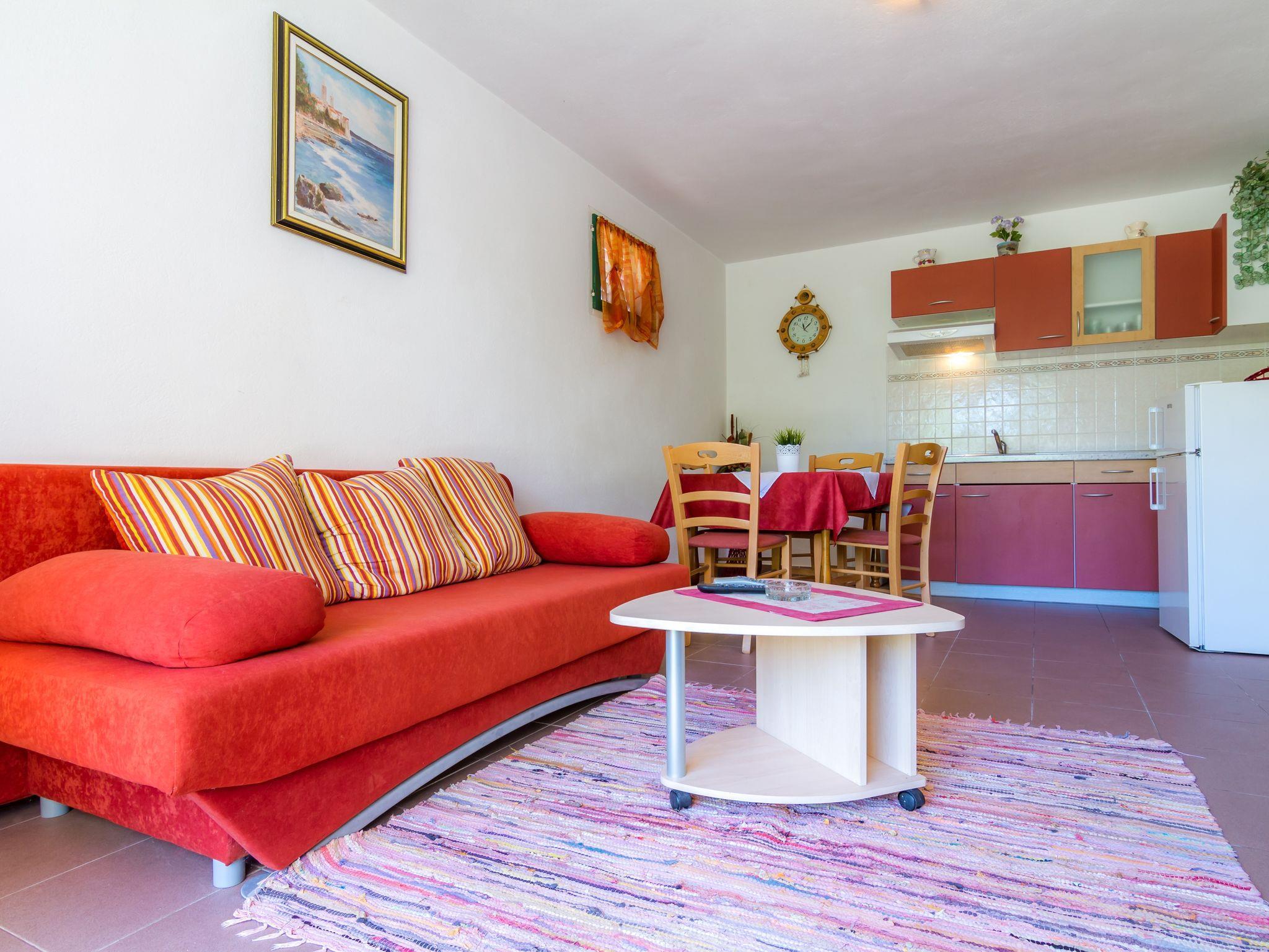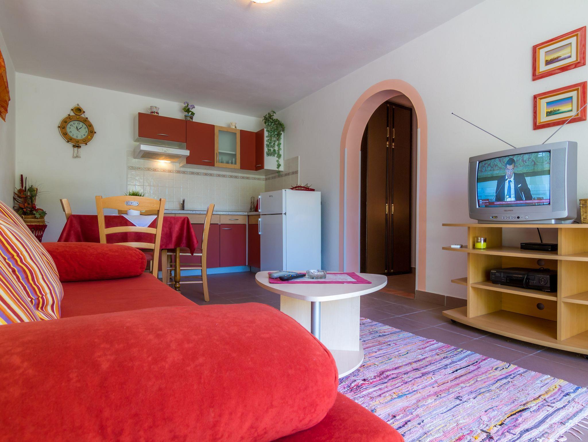 Ferienwohnung bietet Platz für 4 Gäste. Die Betten sind in Schlafzimmern, die es 1 gibt, und in Wohnzimmer, innerhalb einer Gesamtfläche von 31m2, angeordnet. Die Gäste haben eine eigene Terrasse zur Verfügung, auf der sie in warmen Sommernächten genießen können. Das Apartment bietet Meerblick. Es ist erlaubt, Speisen auf dem Gemeinschafts-Grill vorzubereiten. IM PREIS INBEGRIFFEN: Kurtaxe, Endreinigung, Klimatisierung, Parkplatz, Internet, Kinderbett, Bügeleisen, Bügelbrett, Föhn. UNVERBINDLICHE ZUSÄTZLICHE KOSTEN: Wäschewaschen (7,00 € Waschen), Bootsanlegeplatz (10,00 € pro Nacht), Zusatzbett (7,00 € pro Nacht). Die Verfügbarkeit zusätzlicher Dienstleistungen in Ihrem reservierten Termin und die Preise derselben (falls nicht aufgeführt) müssen im Voraus überprüft werden. Zusätzliche Dienstleistungen die in der Zahlungsaufforderung nicht aufgeführt sind werden direkt beim Vermieter bezahlt, angenommen der Gast nutzt auch diese.
