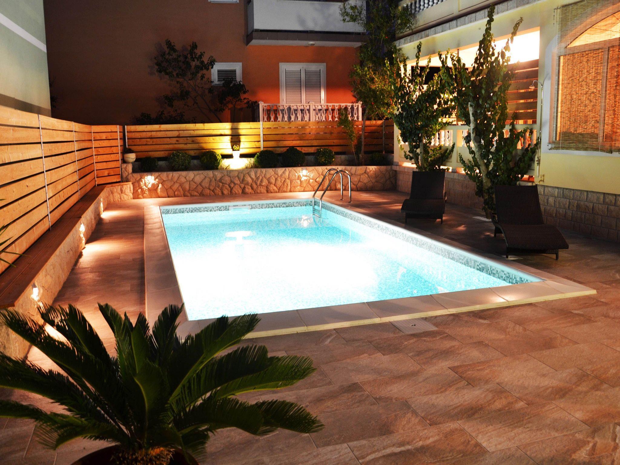 Ferienwohnung bietet Platz für 4 Gäste. Die Betten sind in Schlafzimmern, die es 1 gibt, und in Wohnzimmer, innerhalb einer Gesamtfläche von 38m2, angeordnet. Die Gäste haben eine eigene Terrasse zur Verfügung, auf der sie in warmen Sommernächten genießen können. Es ist erlaubt, Speisen auf dem Gemeinschafts-Grill vorzubereiten. Während ihres Aufenthalts können Gäste das gemeinsam zur Nutzung stehende Schwimmbad benutzen. In der Unterkunftseinheit besteht die Möglichkeit des Mitbringens von Haustieren gegen Aufpreis. In der gebuchten Unterkunftseinheit zahlt man am Ort ein Depositum ( der Preis ist an der Internetseite angeführt ). IM PREIS INBEGRIFFEN: Kurtaxe, Endreinigung, Pool, Parkplatz, Internet, Kinderbett, Bügeleisen, Bügelbrett, Föhn, Sonnenschirm, Liegestühle. VERBINDLICHE ZUSÄTZLICHE KOSTEN: Kaution (150,00 € Einmalzahlung), Aufzahlung für Kurzaufenthalte (prozentualer Zuschlag pro Nächtigungsanzahl: 30% - 1, 20% - 2, 10% - 3). UNVERBINDLICHE ZUSÄTZLICHE KOSTEN: Haustiere (15,00 € pro Nacht). Die Verfügbarkeit zusätzlicher Dienstleistungen in Ihrem reservierten Termin und die Preise derselben (falls nicht aufgeführt) müssen im Voraus überprüft werden. Zusätzliche Dienstleistungen die in der Zahlungsaufforderung nicht aufgeführt sind werden direkt beim Vermieter bezahlt, angenommen der Gast nutzt auch diese.