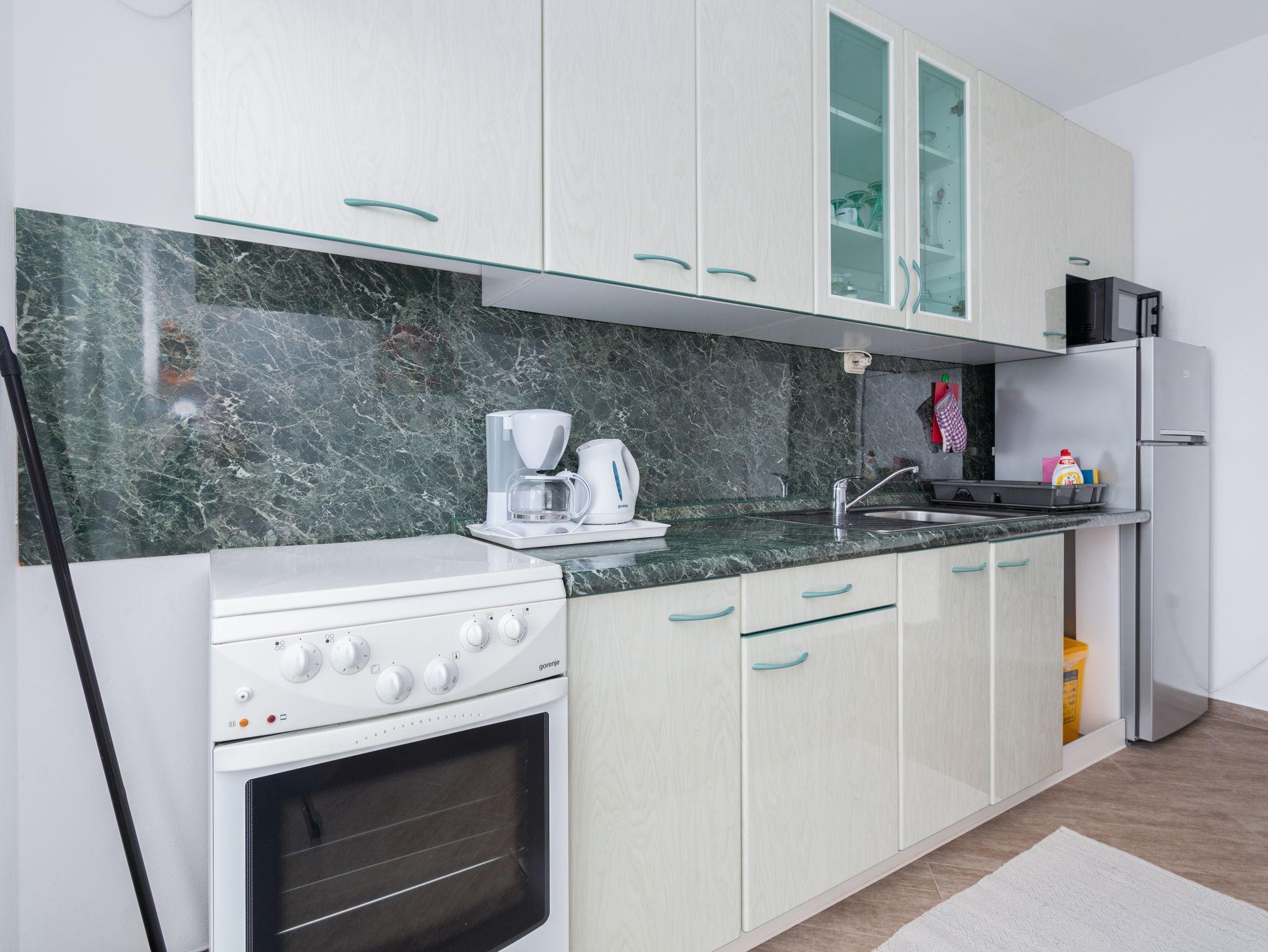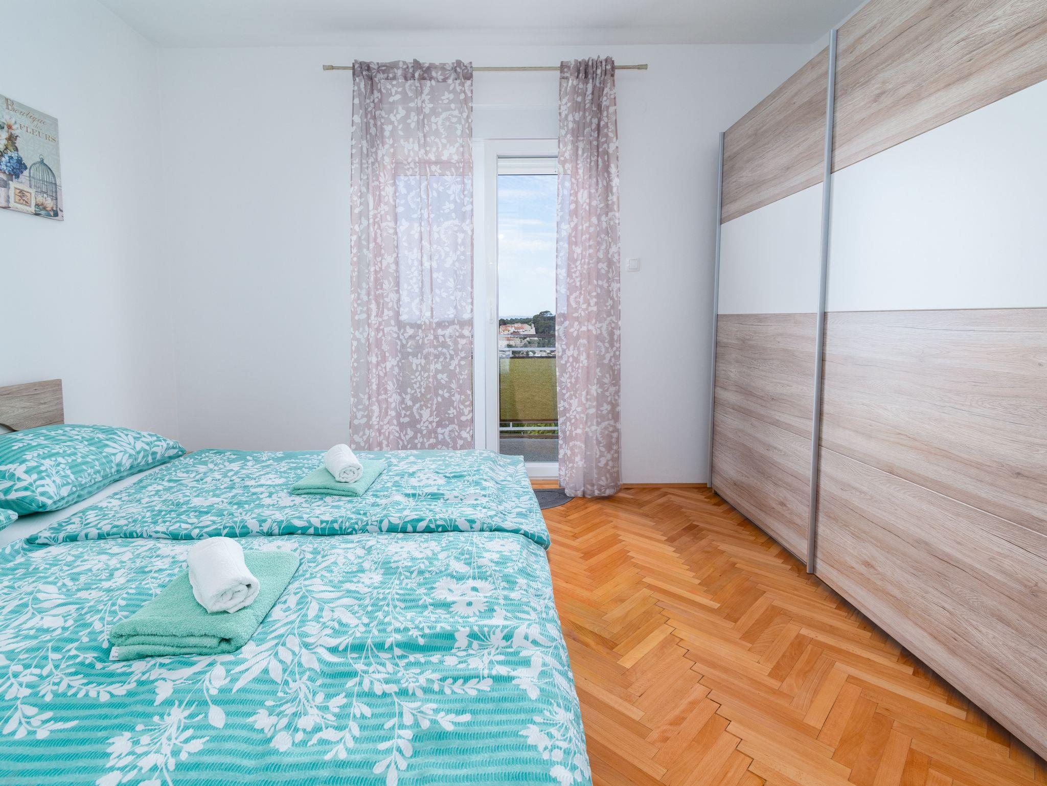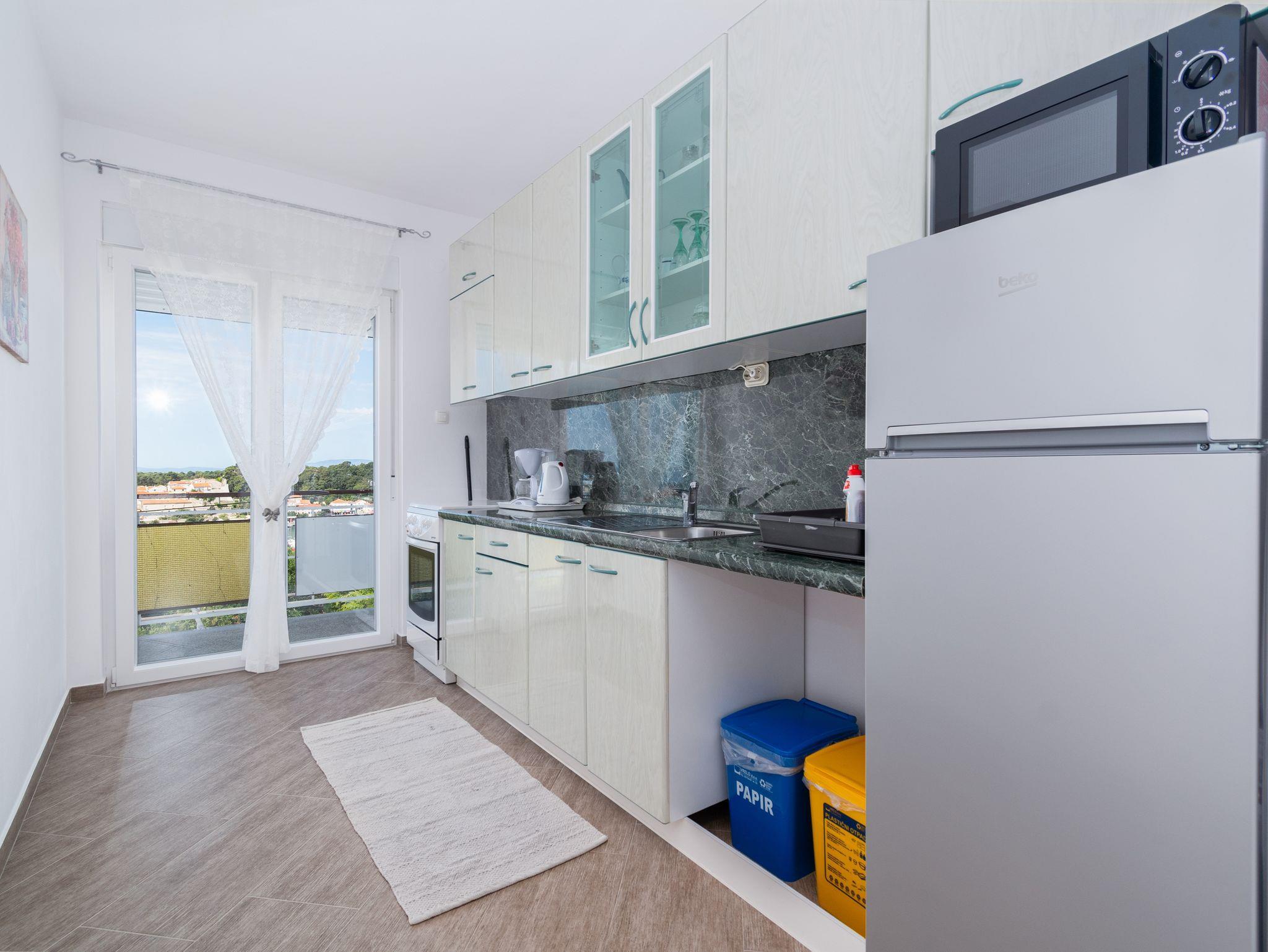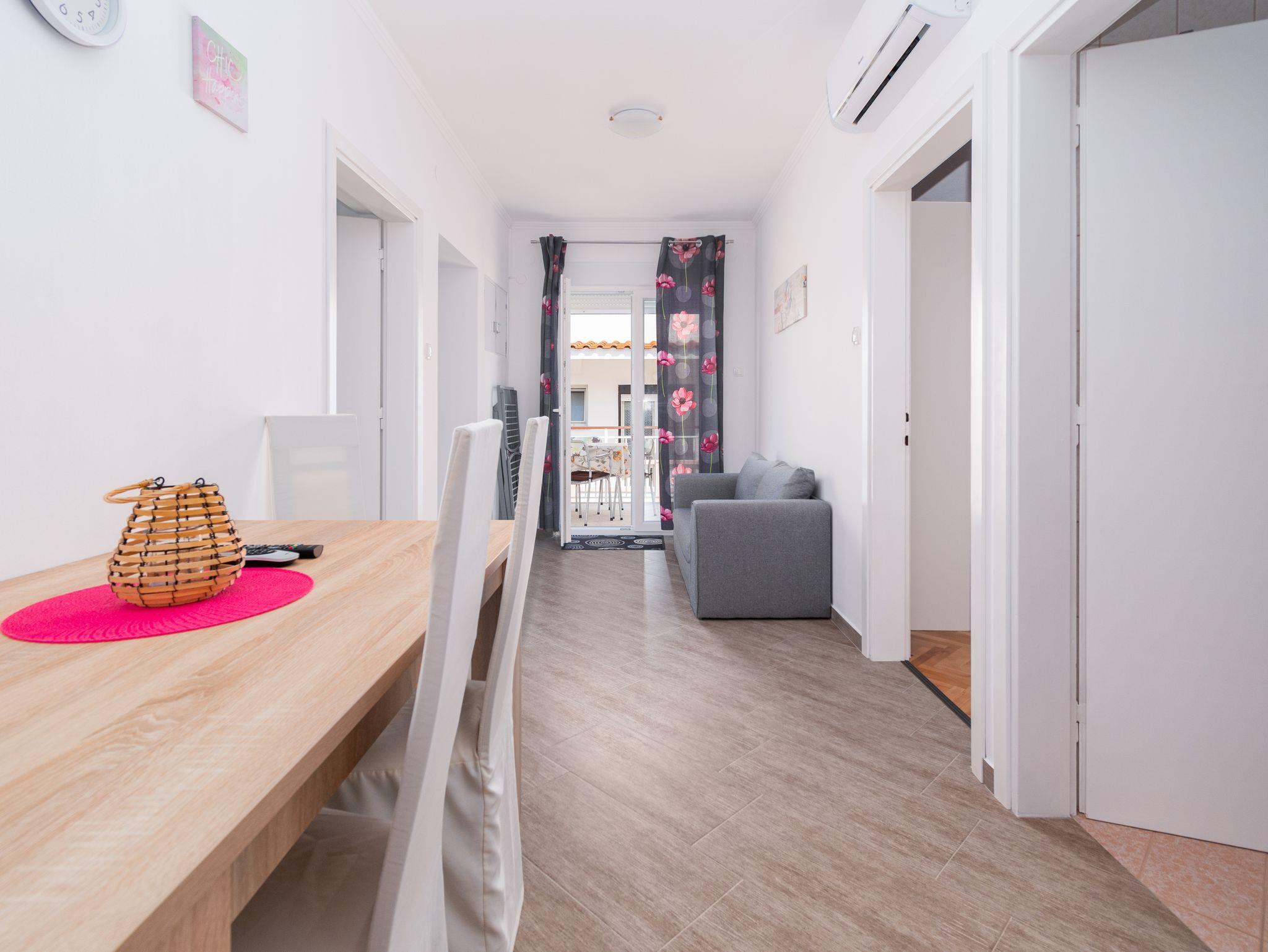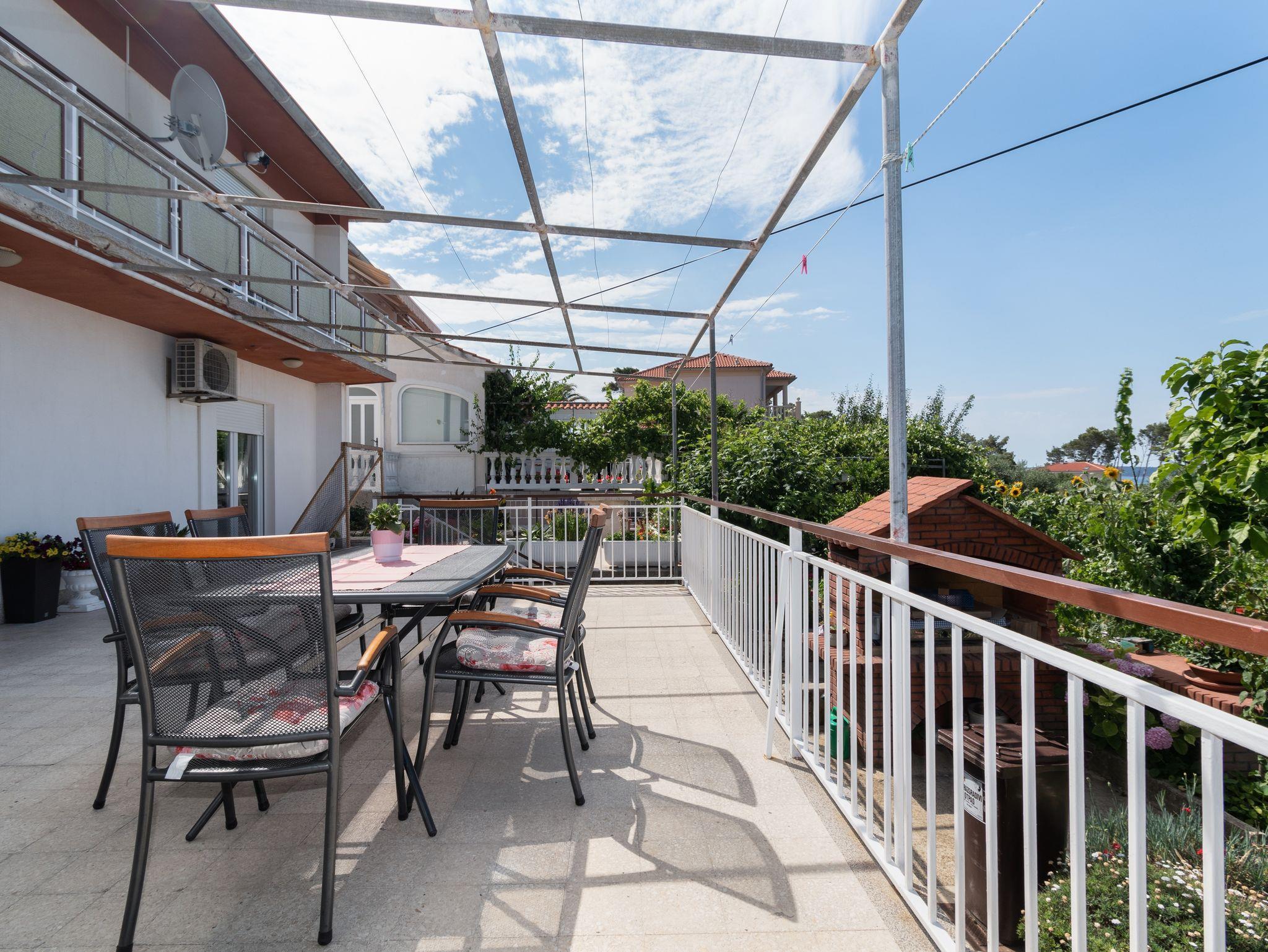 Ferienwohnung bietet Platz für 4 Gäste. Die Betten sind in Schlafzimmern, die es 2 gibt, innerhalb einer Gesamtfläche von 49m2, angeordnet. Die Gäste haben eine eigene Terrasse zur Verfügung, auf der sie in warmen Sommernächten genießen können. Das Apartment bietet Meerblick. Für vollen Genuss und Entspannung gibt es einen privaten Grill für Gäste dieser Unterkunft. IM PREIS INBEGRIFFEN: Kurtaxe, Endreinigung, Klimatisierung, Parkplatz, Internet, Kinderbett, Föhn. VERBINDLICHE ZUSÄTZLICHE KOSTEN: Aufzahlung für Kurzaufenthalte (prozentualer Zuschlag pro Nächtigungsanzahl: 30% - 1, 20% - 2, 10% - 3). Die Verfügbarkeit zusätzlicher Dienstleistungen in Ihrem reservierten Termin und die Preise derselben (falls nicht aufgeführt) müssen im Voraus überprüft werden. Zusätzliche Dienstleistungen die in der Zahlungsaufforderung nicht aufgeführt sind werden direkt beim Vermieter bezahlt, angenommen der Gast nutzt auch diese.