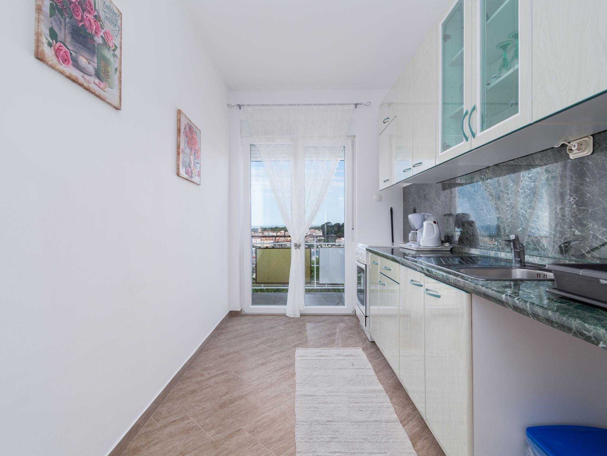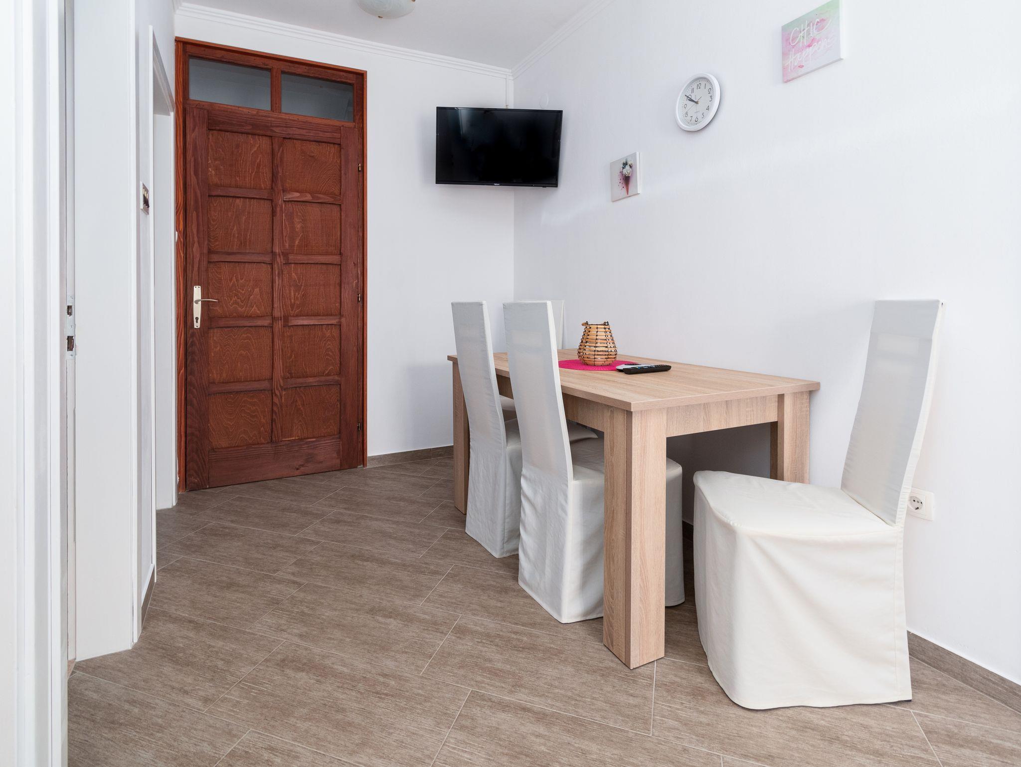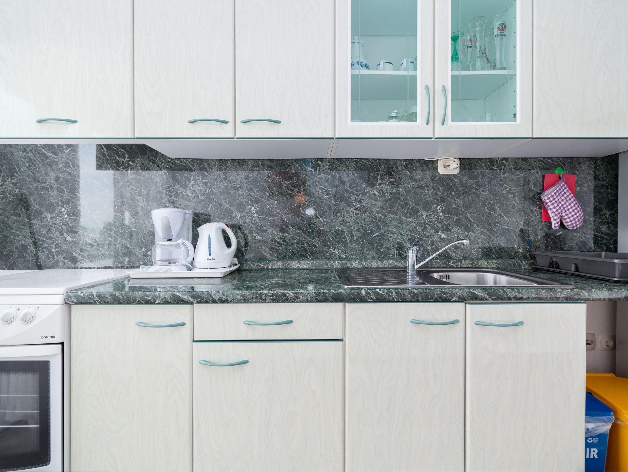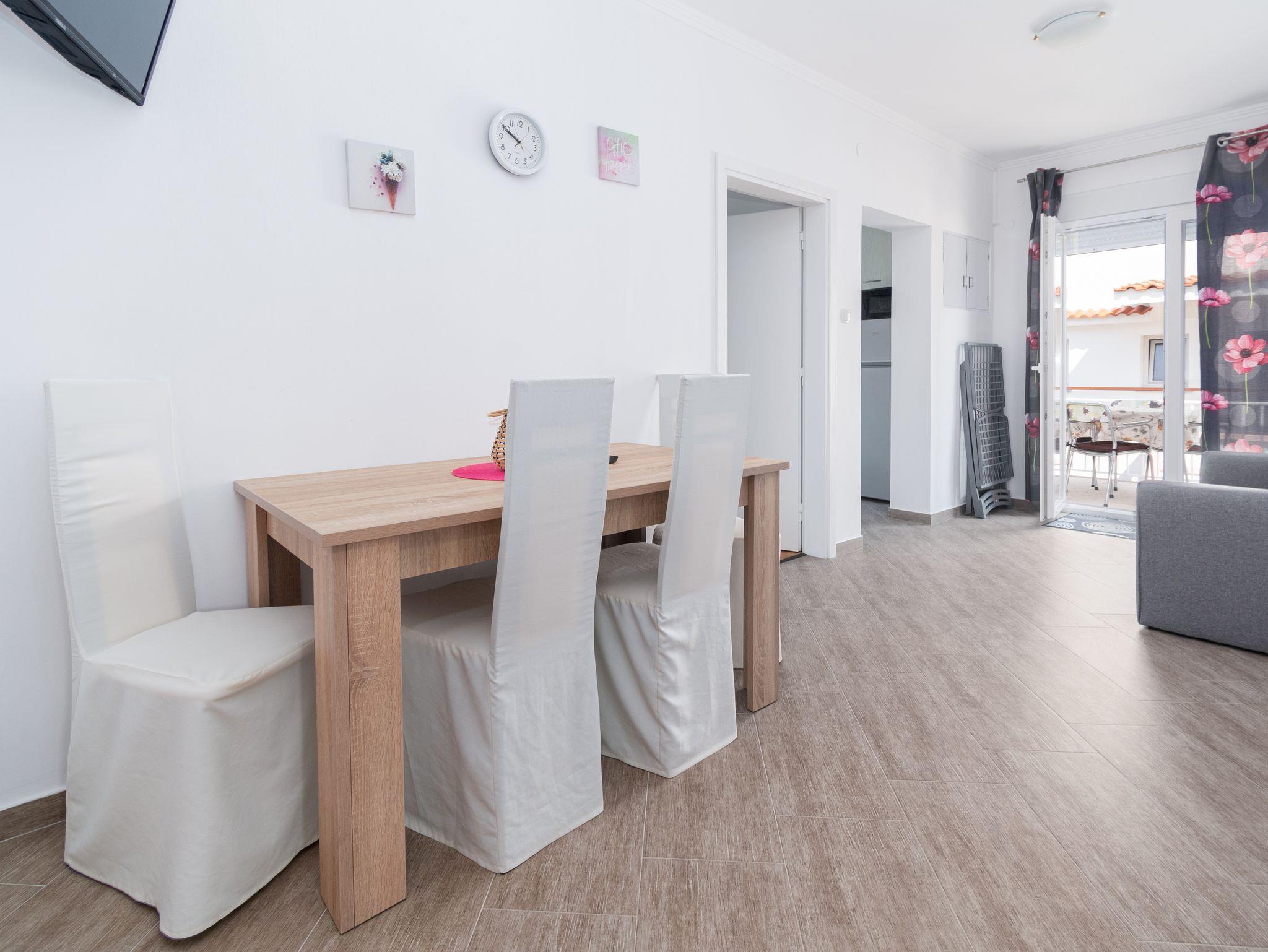 Ferienwohnung bietet Platz für 4 Gäste. Die Betten sind in Schlafzimmern, die es 2 gibt, innerhalb einer Gesamtfläche von 49m2, angeordnet. Die Gäste haben eine eigene Terrasse zur Verfügung, auf der sie in warmen Sommernächten genießen können. Das Apartment bietet Meerblick. Für vollen Genuss und Entspannung gibt es einen privaten Grill für Gäste dieser Unterkunft. IM PREIS INBEGRIFFEN: Kurtaxe, Endreinigung, Klimatisierung, Parkplatz, Internet, Kinderbett, Föhn. VERBINDLICHE ZUSÄTZLICHE KOSTEN: Aufzahlung für Kurzaufenthalte (prozentualer Zuschlag pro Nächtigungsanzahl: 30% - 1, 20% - 2, 10% - 3). Die Verfügbarkeit zusätzlicher Dienstleistungen in Ihrem reservierten Termin und die Preise derselben (falls nicht aufgeführt) müssen im Voraus überprüft werden. Zusätzliche Dienstleistungen die in der Zahlungsaufforderung nicht aufgeführt sind werden direkt beim Vermieter bezahlt, angenommen der Gast nutzt auch diese.