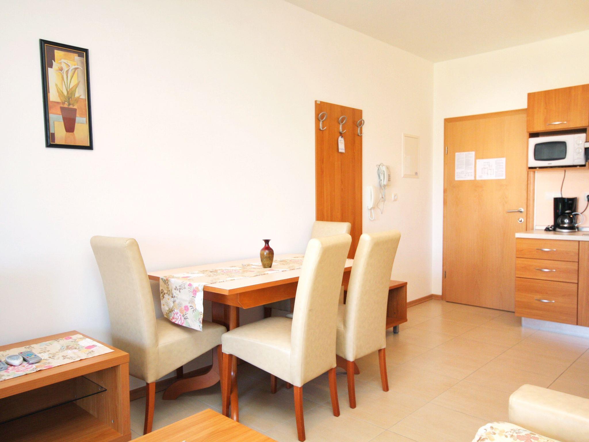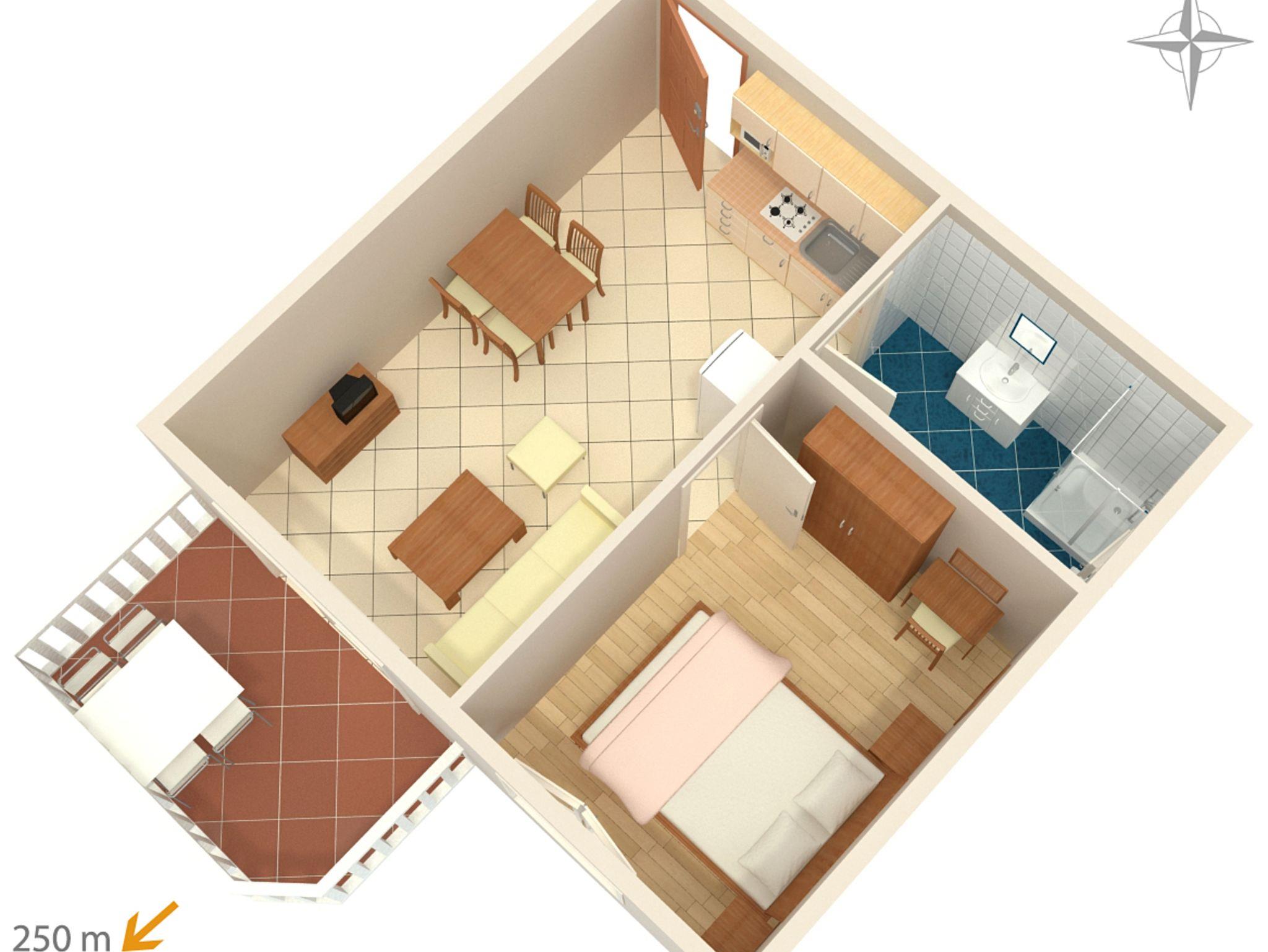 Ferienwohnung bietet Platz für 4 Gäste. Die Betten sind in Schlafzimmern, die es 1 gibt, und in Wohnzimmer, innerhalb einer Gesamtfläche von 33m2, angeordnet. Die Gäste haben eine eigene Terrasse zur Verfügung, auf der sie in warmen Sommernächten genießen können. Das Apartment bietet Meerblick. Es ist erlaubt, Speisen auf dem Gemeinschafts-Grill vorzubereiten. Während ihres Aufenthalts können Gäste das gemeinsam zur Nutzung stehende Schwimmbad benutzen. In der gebuchten Unterkunftseinheit zahlt man am Ort ein Depositum ( der Preis ist an der Internetseite angeführt ). IM PREIS INBEGRIFFEN: Endreinigung, Klimatisierung, Pool, Parkplatz, Internet, Föhn. VERBINDLICHE ZUSÄTZLICHE KOSTEN: Kurtaxe (Erwachsene 0,93 € - 1,90 € Nacht/Person, Kinderermäßigung 12 - 17 Jahre), Kaution (100,00 € Einmalzahlung). Die Verfügbarkeit zusätzlicher Dienstleistungen in Ihrem reservierten Termin und die Preise derselben (falls nicht aufgeführt) müssen im Voraus überprüft werden. Zusätzliche Dienstleistungen die in der Zahlungsaufforderung nicht aufgeführt sind werden direkt beim Vermieter bezahlt, angenommen der Gast nutzt auch diese.
