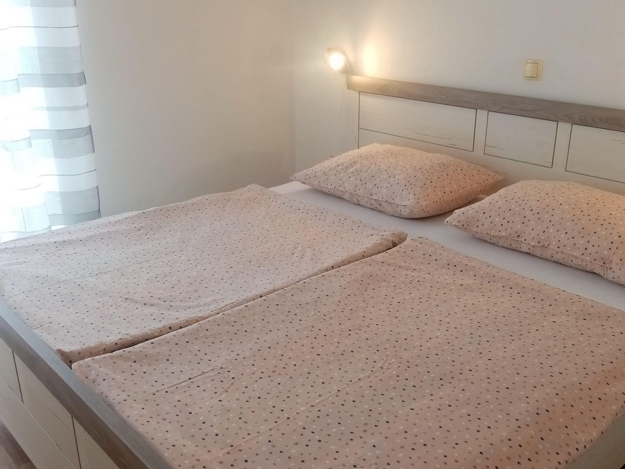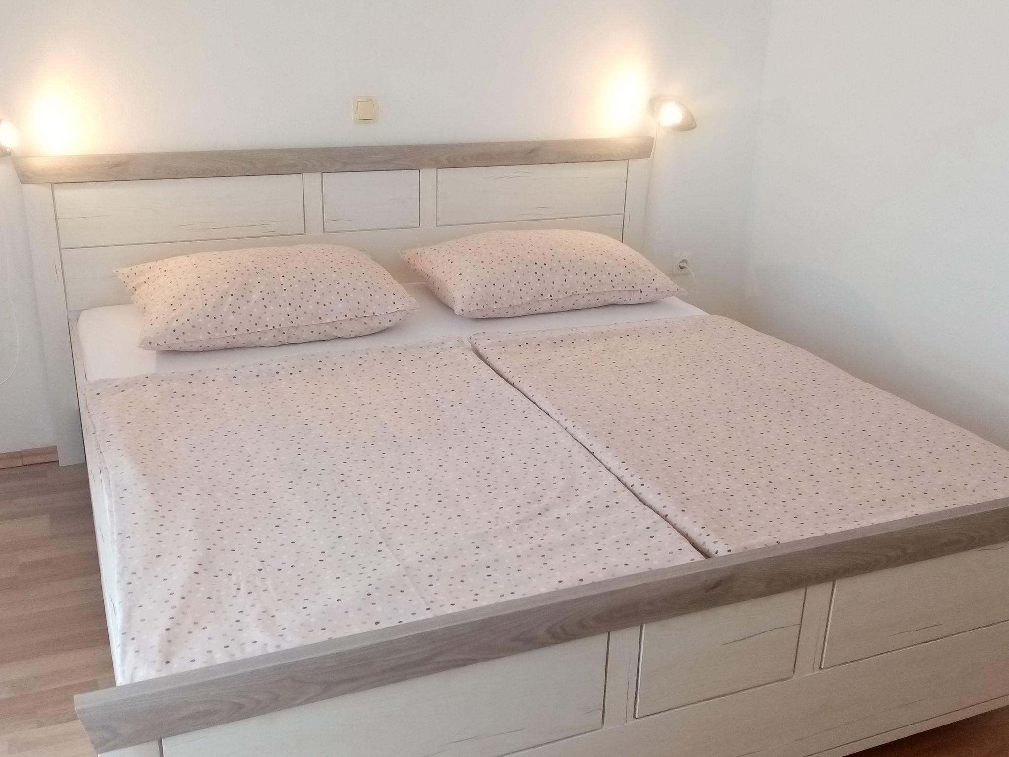 Ferienwohnung bietet Platz für 4 Gäste. Die Betten sind in Schlafzimmern, die es 2 gibt, innerhalb einer Gesamtfläche von 31m2, angeordnet. Die Gäste haben einen eigenen Balkon zur Verfügung, auf der sie in warmen Sommernächten genießen können. Das Apartment bietet Meerblick. Es ist erlaubt, Speisen auf dem Gemeinschafts-Grill vorzubereiten. IM PREIS INBEGRIFFEN: Kurtaxe, Endreinigung, Klimatisierung, Internet. VERBINDLICHE ZUSÄTZLICHE KOSTEN: Aufzahlung für Kurzaufenthalte (prozentualer Zuschlag pro Nächtigungsanzahl: 30% - 1, 20% - 2, 10% - 3). UNVERBINDLICHE ZUSÄTZLICHE KOSTEN: Bootsanlegeplatz (10,00 € pro Nacht). Die Verfügbarkeit zusätzlicher Dienstleistungen in Ihrem reservierten Termin und die Preise derselben (falls nicht aufgeführt) müssen im Voraus überprüft werden. Zusätzliche Dienstleistungen die in der Zahlungsaufforderung nicht aufgeführt sind werden direkt beim Vermieter bezahlt, angenommen der Gast nutzt auch diese. Ermäßigung auf den Grundpreis: Gratistag 14=13 (bei einem Aufenthalt von 14 Tagen oder mehr erhalten Sie einen Gratistag für den Aufenthalt bis 31.12.26).