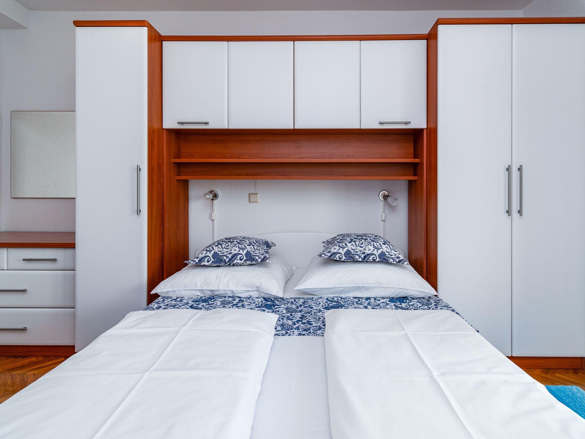 Ferienwohnung bietet Platz für 5 Gäste. Die Betten sind in Schlafzimmern, die es 2 gibt, und in Wohnzimmer, innerhalb einer Gesamtfläche von 92m2, angeordnet. Die Gäste haben eine eigene Terrasse zur Verfügung, auf der sie in warmen Sommernächten genießen können. Das Apartment bietet Meerblick. Es ist erlaubt, Speisen auf dem Gemeinschafts-Grill vorzubereiten. IM PREIS INBEGRIFFEN: Kurtaxe, Endreinigung, Klimatisierung, Zentralheizung, Parkplatz, Internet, Bügeleisen, Föhn. UNVERBINDLICHE ZUSÄTZLICHE KOSTEN: Zusatzbett (10,00 € pro Nacht). Die Verfügbarkeit zusätzlicher Dienstleistungen in Ihrem reservierten Termin und die Preise derselben (falls nicht aufgeführt) müssen im Voraus überprüft werden. Zusätzliche Dienstleistungen die in der Zahlungsaufforderung nicht aufgeführt sind werden direkt beim Vermieter bezahlt, angenommen der Gast nutzt auch diese.