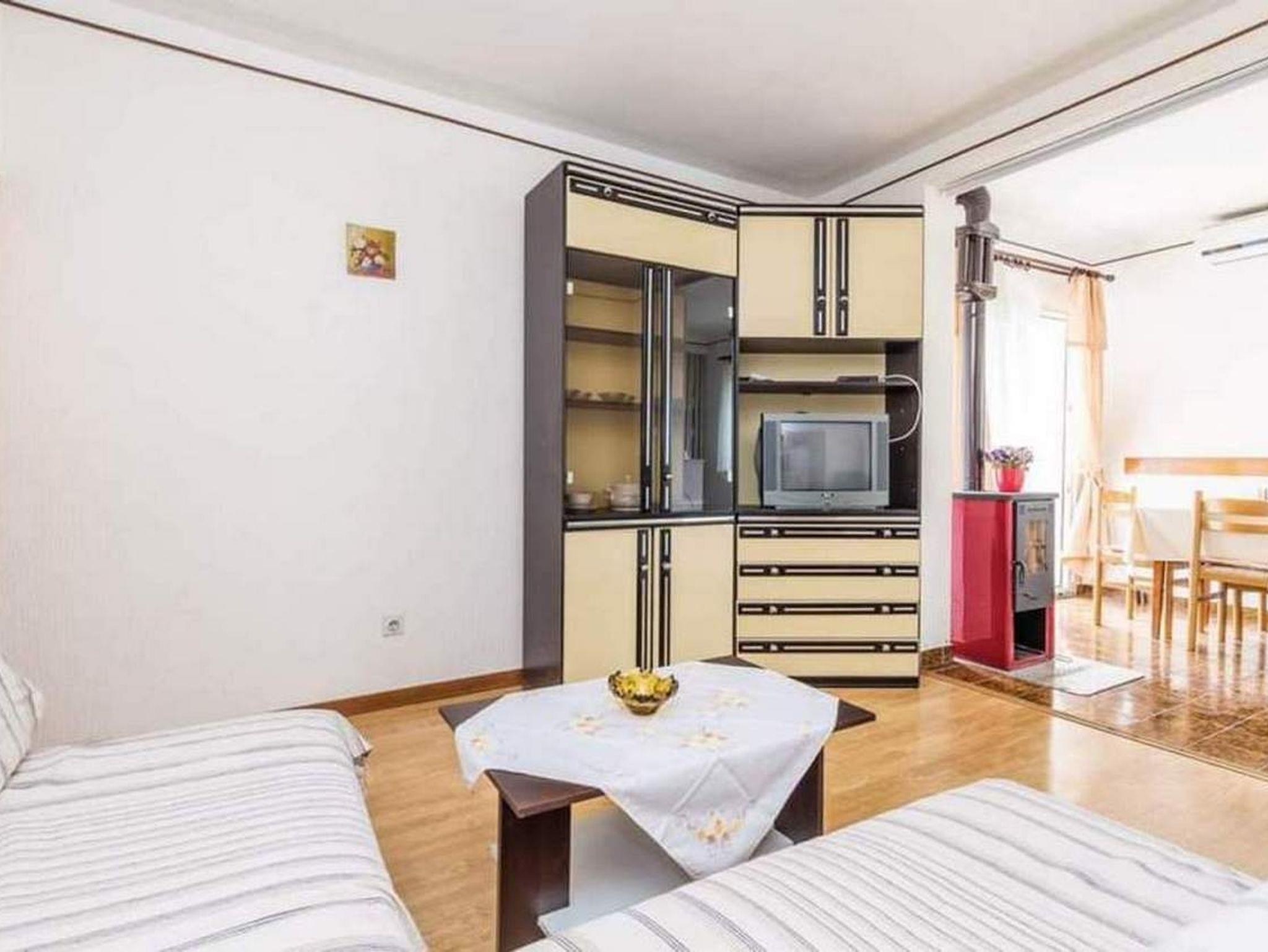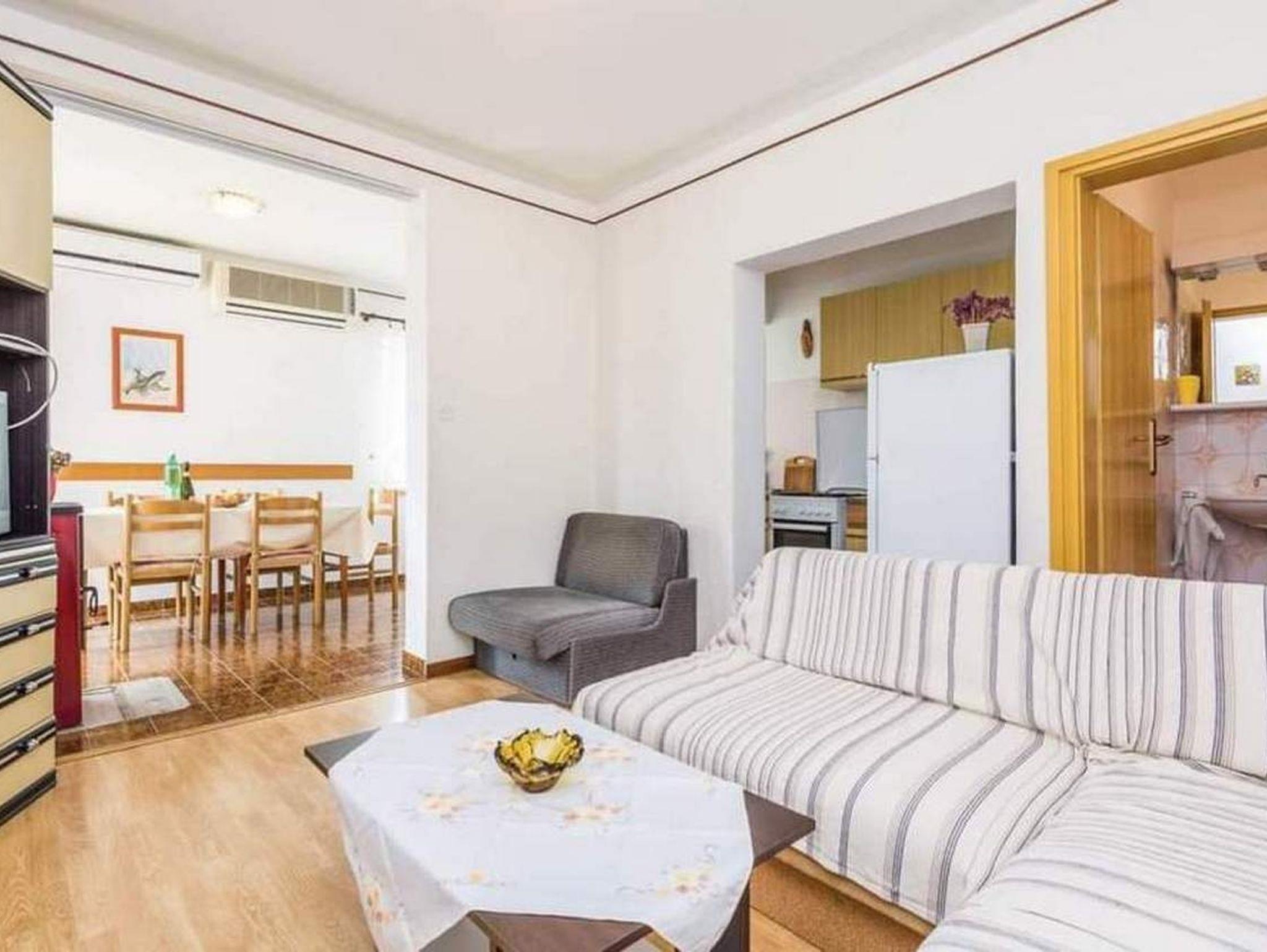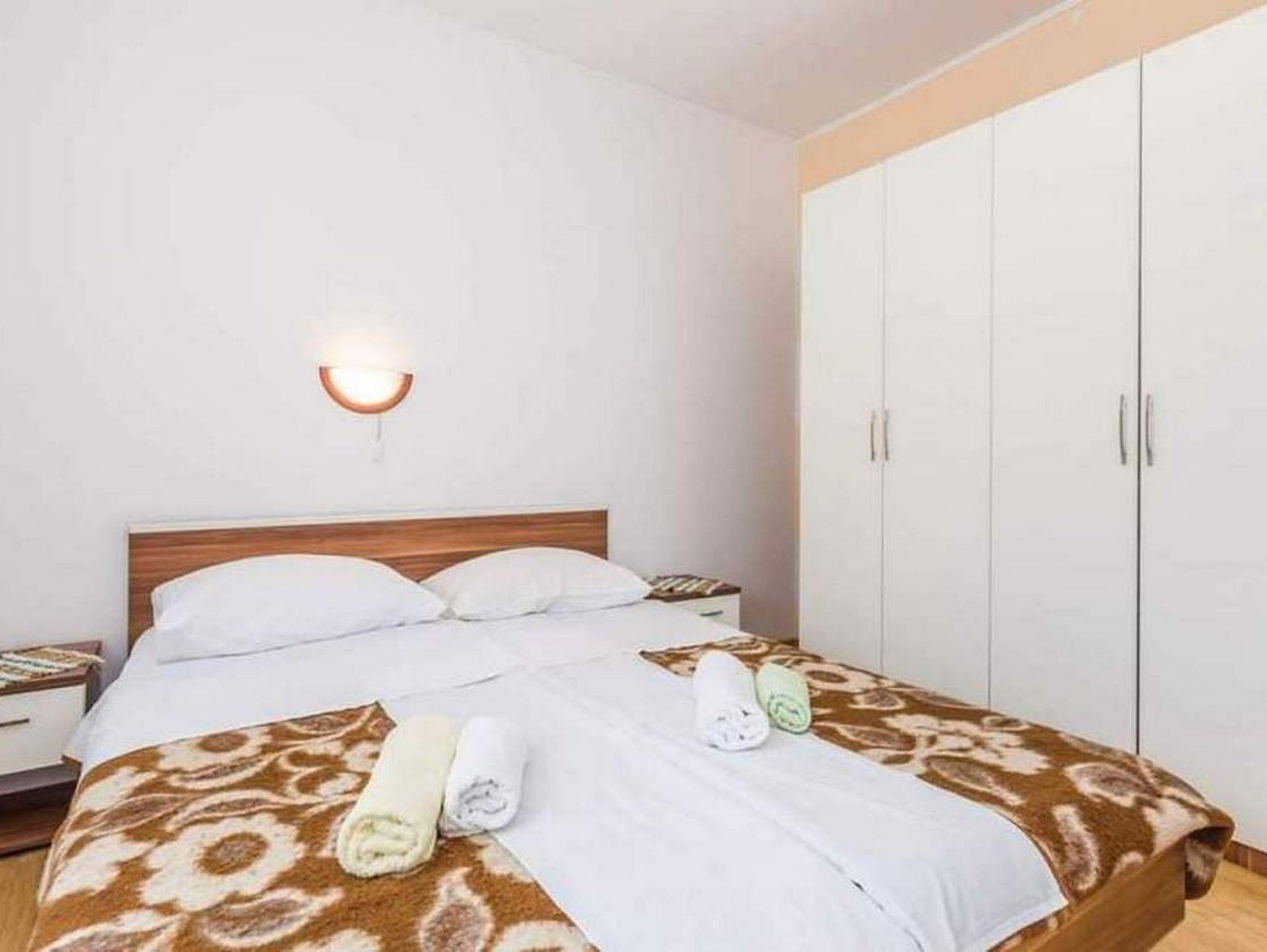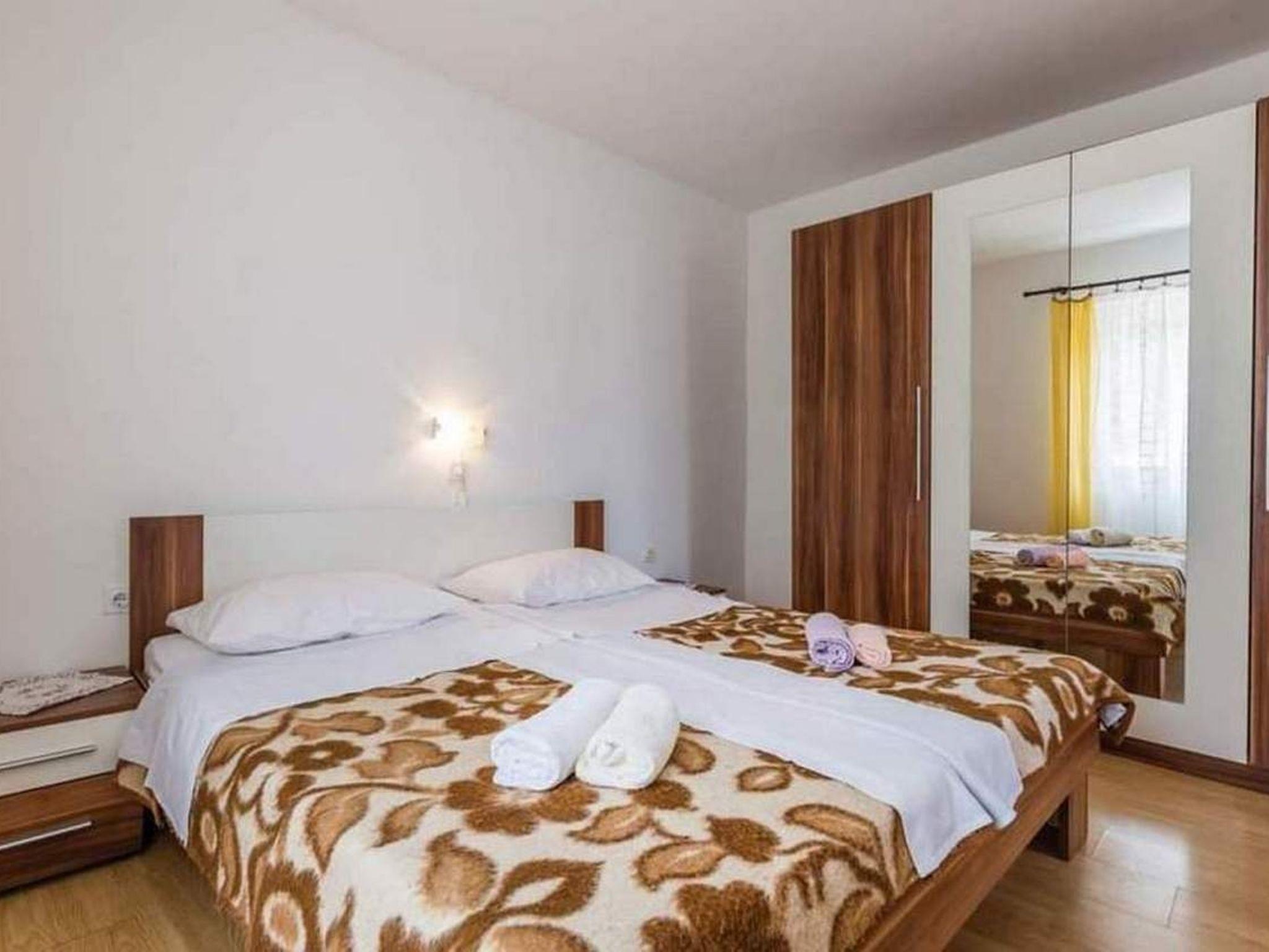 Ferienwohnung bietet Platz für 5 Gäste. Die Betten sind in Schlafzimmern, die es 2 gibt, und in Wohnzimmer, innerhalb einer Gesamtfläche von 64m2, angeordnet. Die Gäste haben eine eigene Terrasse zur Verfügung, auf der sie in warmen Sommernächten genießen können. Das Apartment bietet Meerblick. Für vollen Genuss und Entspannung gibt es einen privaten Grill für Gäste dieser Unterkunft. In der Unterkunftseinheit besteht die Möglichkeit des Mitbringens von Haustieren gegen Aufpreis. IM PREIS INBEGRIFFEN: Kurtaxe, Endreinigung, Klimatisierung, Parkplatz, Internet. VERBINDLICHE ZUSÄTZLICHE KOSTEN: Aufzahlung für Kurzaufenthalte (prozentualer Zuschlag pro Nächtigungsanzahl: 30% - 1, 20% - 2, 10% - 3). UNVERBINDLICHE ZUSÄTZLICHE KOSTEN: Bootsanlegeplatz (8,00 € pro Nacht), Haustiere (5,00 € pro Nacht). Die Verfügbarkeit zusätzlicher Dienstleistungen in Ihrem reservierten Termin und die Preise derselben (falls nicht aufgeführt) müssen im Voraus überprüft werden. Zusätzliche Dienstleistungen die in der Zahlungsaufforderung nicht aufgeführt sind werden direkt beim Vermieter bezahlt, angenommen der Gast nutzt auch diese.