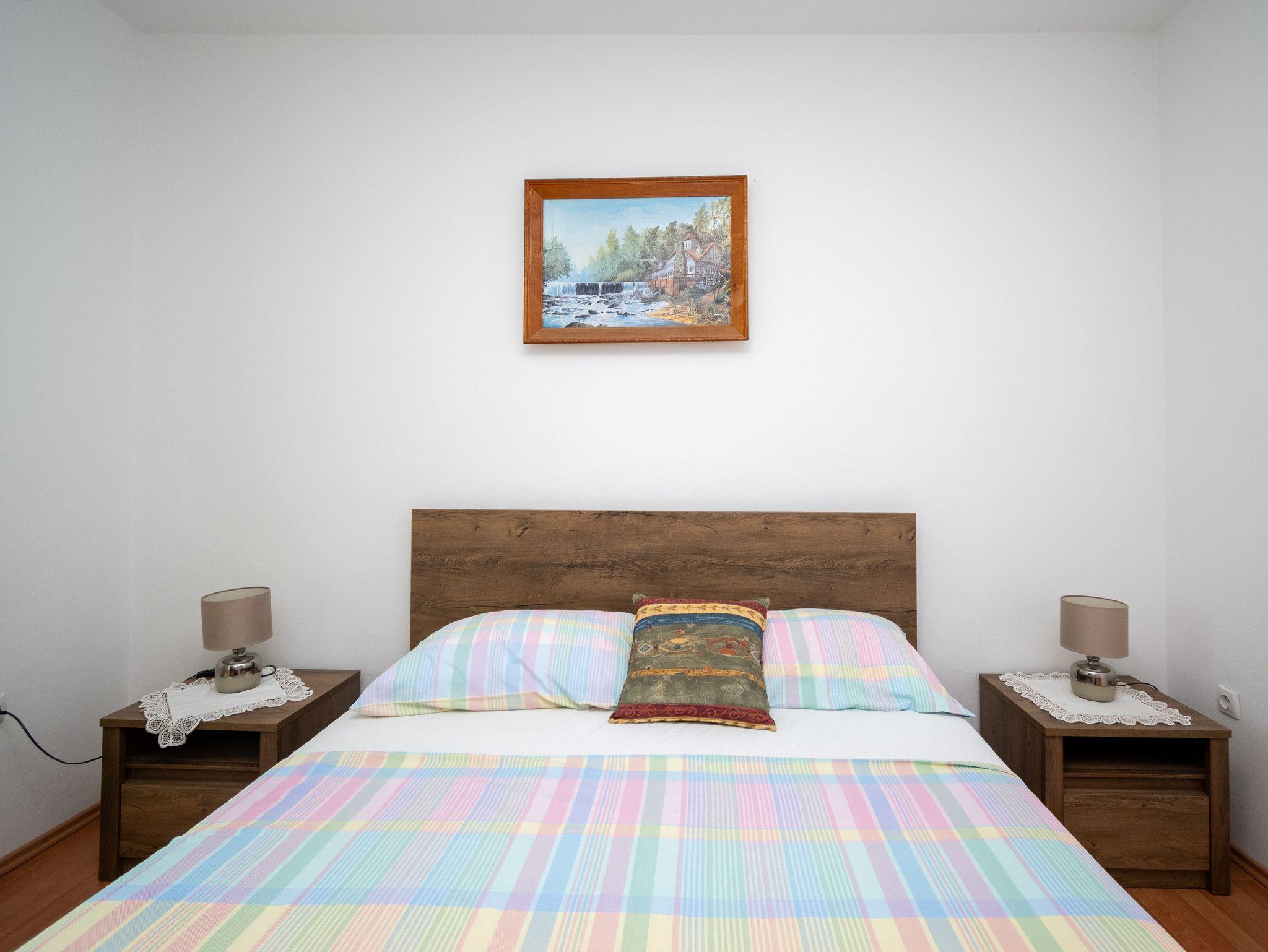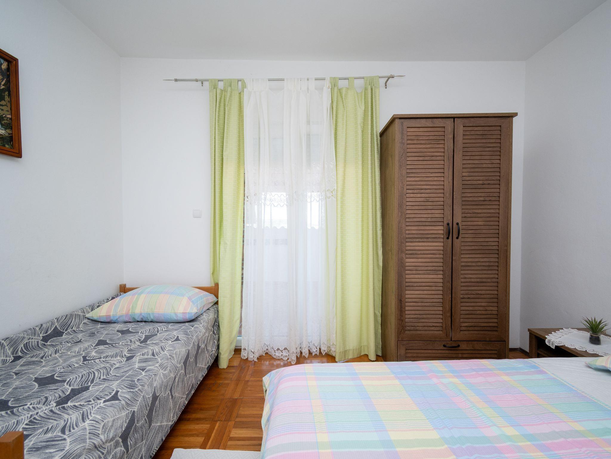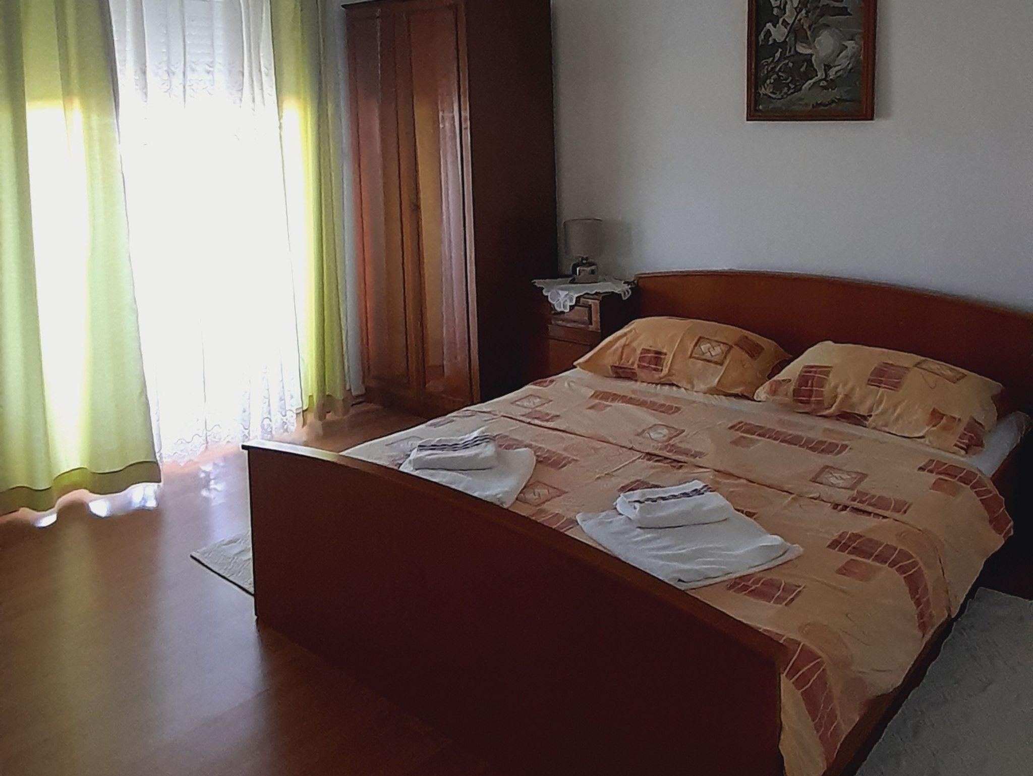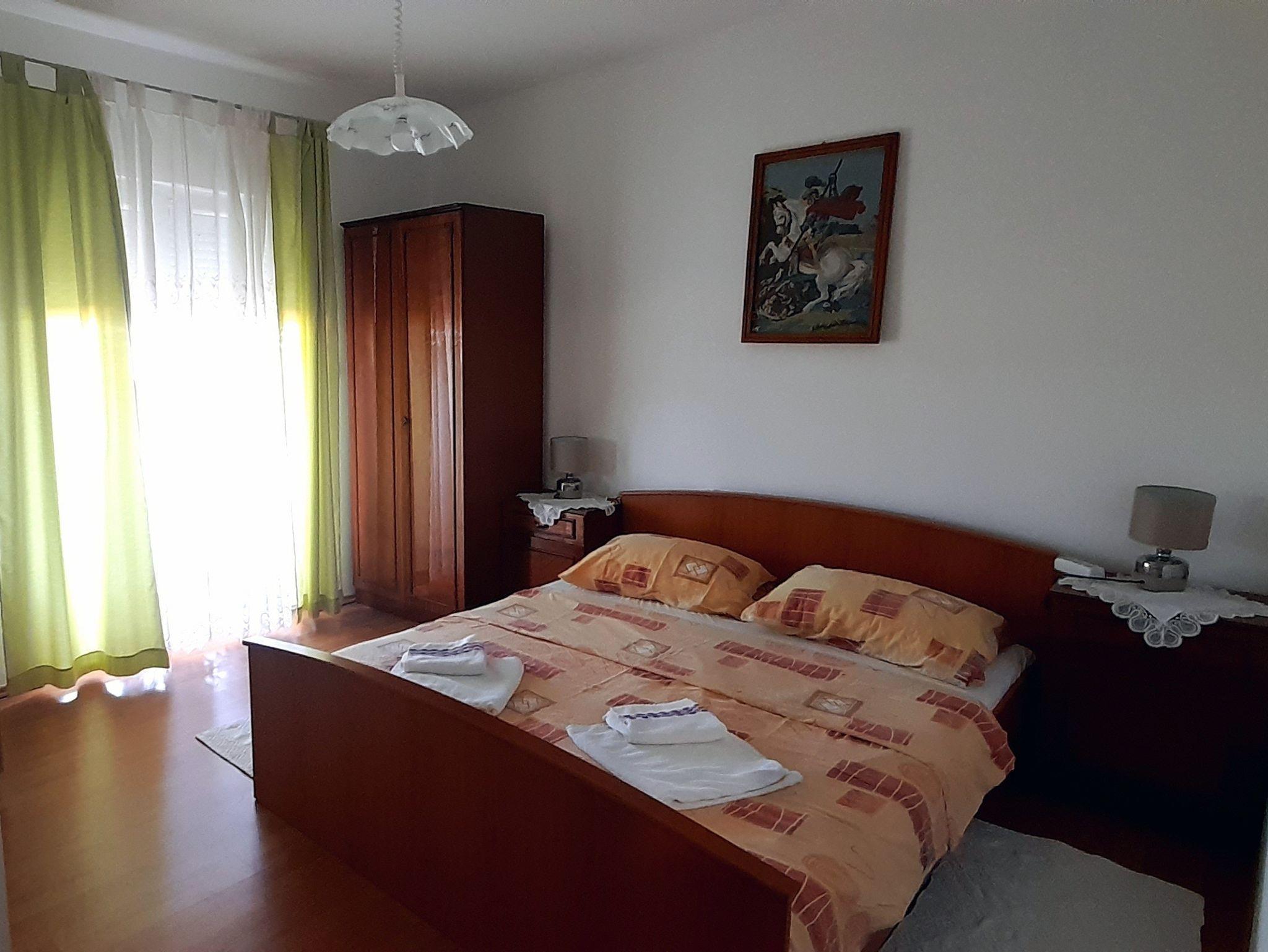 Ferienwohnung bietet Platz für 5 Gäste. Die Betten sind in Schlafzimmern, die es 2 gibt, innerhalb einer Gesamtfläche von 47m2, angeordnet. Die Gäste haben eine eigene Terrasse zur Verfügung, auf der sie in warmen Sommernächten genießen können. Das Apartment bietet Meerblick. Für vollen Genuss und Entspannung gibt es einen privaten Grill für Gäste dieser Unterkunft. In der Unterkunftseinheit besteht die Möglichkeit des Mitbringens von Haustieren gegen Aufpreis. IM PREIS INBEGRIFFEN: Kurtaxe, Endreinigung, Klimatisierung, Parkplatz, Internet, Bootsanlegeplatz, Kinderbett, Bügeleisen, Bügelbrett, Föhn. VERBINDLICHE ZUSÄTZLICHE KOSTEN: Aufzahlung für Kurzaufenthalte (prozentualer Zuschlag pro Nächtigungsanzahl: 30% - 1, 20% - 2, 10% - 3). UNVERBINDLICHE ZUSÄTZLICHE KOSTEN: Haustiere (5,00 € pro Nacht), Zusatzbett (10,00 € pro Nacht). Die Verfügbarkeit zusätzlicher Dienstleistungen in Ihrem reservierten Termin und die Preise derselben (falls nicht aufgeführt) müssen im Voraus überprüft werden. Zusätzliche Dienstleistungen die in der Zahlungsaufforderung nicht aufgeführt sind werden direkt beim Vermieter bezahlt, angenommen der Gast nutzt auch diese.