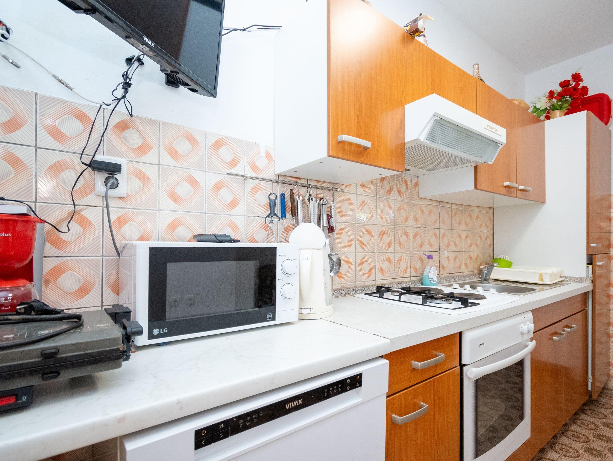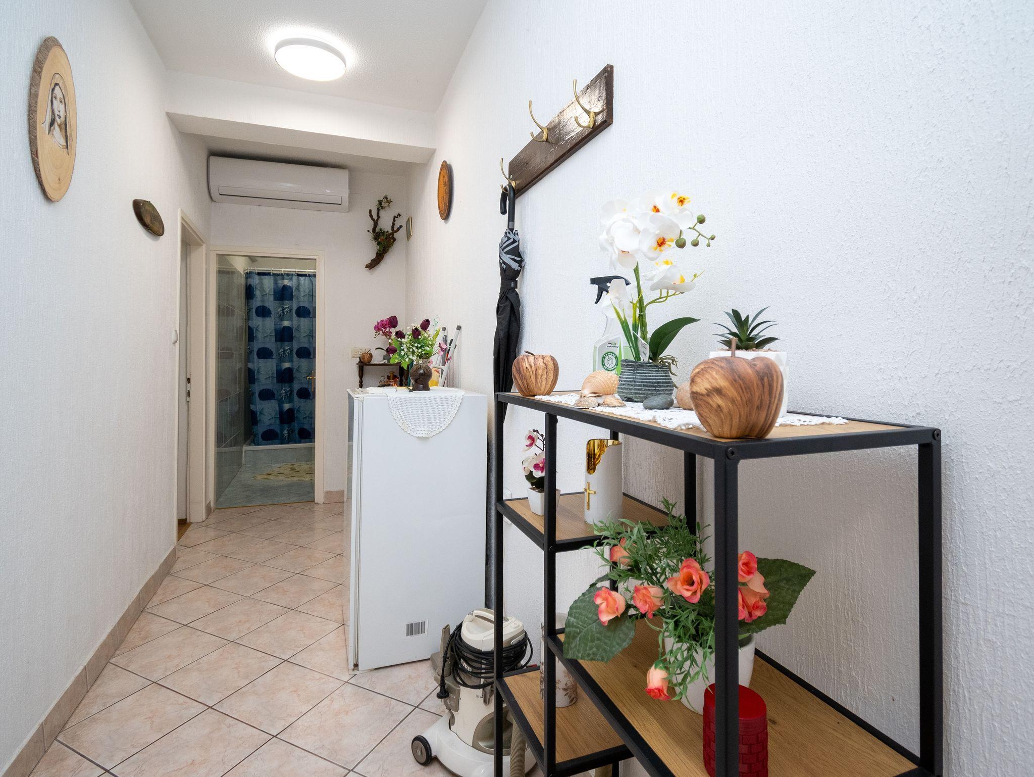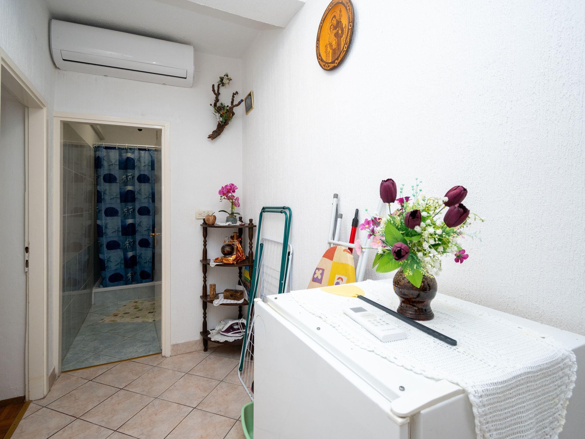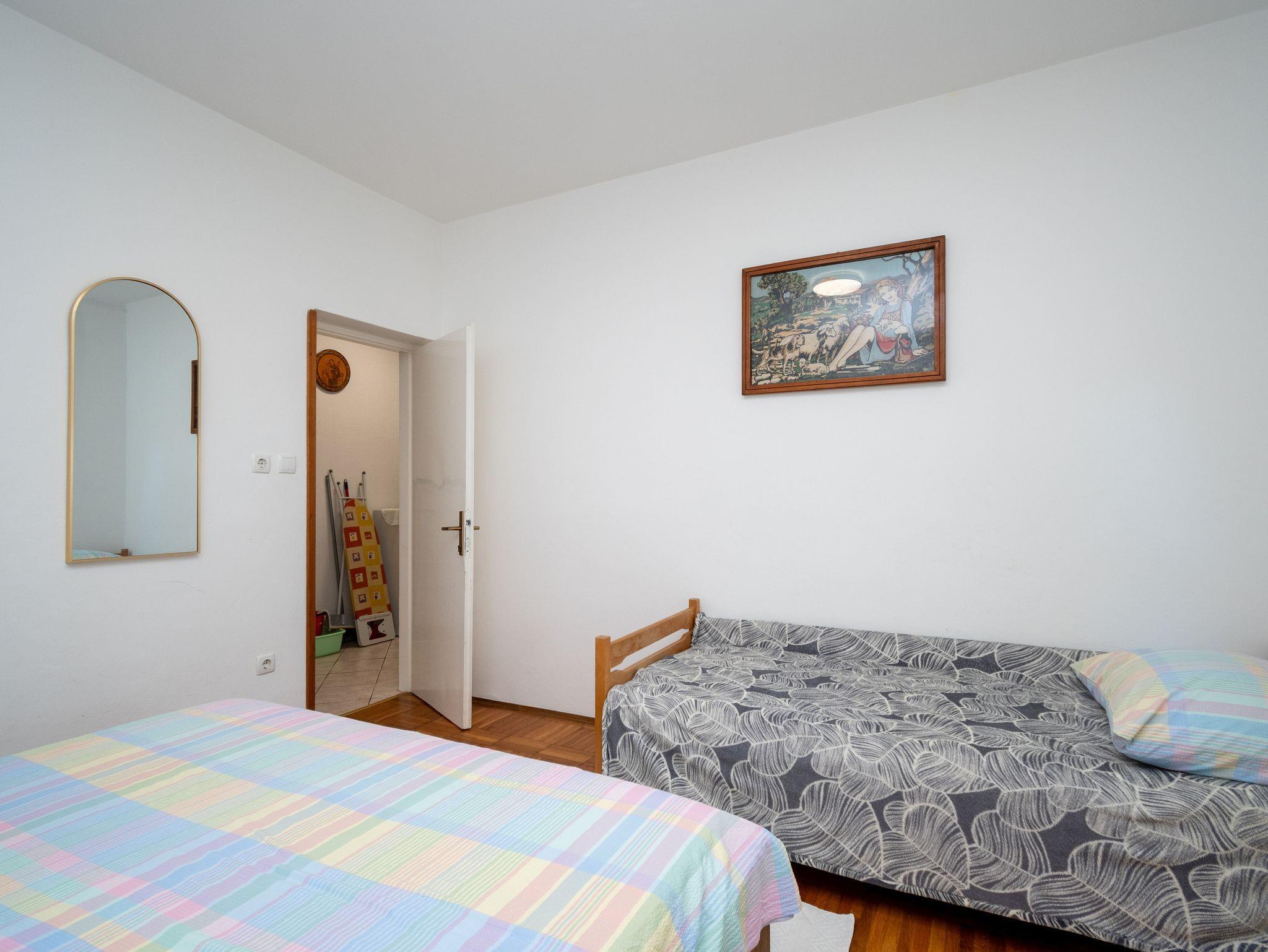 Ferienwohnung bietet Platz für 5 Gäste. Die Betten sind in Schlafzimmern, die es 2 gibt, innerhalb einer Gesamtfläche von 47m2, angeordnet. Die Gäste haben eine eigene Terrasse zur Verfügung, auf der sie in warmen Sommernächten genießen können. Das Apartment bietet Meerblick. Für vollen Genuss und Entspannung gibt es einen privaten Grill für Gäste dieser Unterkunft. In der Unterkunftseinheit besteht die Möglichkeit des Mitbringens von Haustieren gegen Aufpreis. IM PREIS INBEGRIFFEN: Kurtaxe, Endreinigung, Klimatisierung, Parkplatz, Internet, Bootsanlegeplatz, Kinderbett, Bügeleisen, Bügelbrett, Föhn. VERBINDLICHE ZUSÄTZLICHE KOSTEN: Aufzahlung für Kurzaufenthalte (prozentualer Zuschlag pro Nächtigungsanzahl: 30% - 1, 20% - 2, 10% - 3). UNVERBINDLICHE ZUSÄTZLICHE KOSTEN: Haustiere (5,00 € pro Nacht), Zusatzbett (10,00 € pro Nacht). Die Verfügbarkeit zusätzlicher Dienstleistungen in Ihrem reservierten Termin und die Preise derselben (falls nicht aufgeführt) müssen im Voraus überprüft werden. Zusätzliche Dienstleistungen die in der Zahlungsaufforderung nicht aufgeführt sind werden direkt beim Vermieter bezahlt, angenommen der Gast nutzt auch diese.