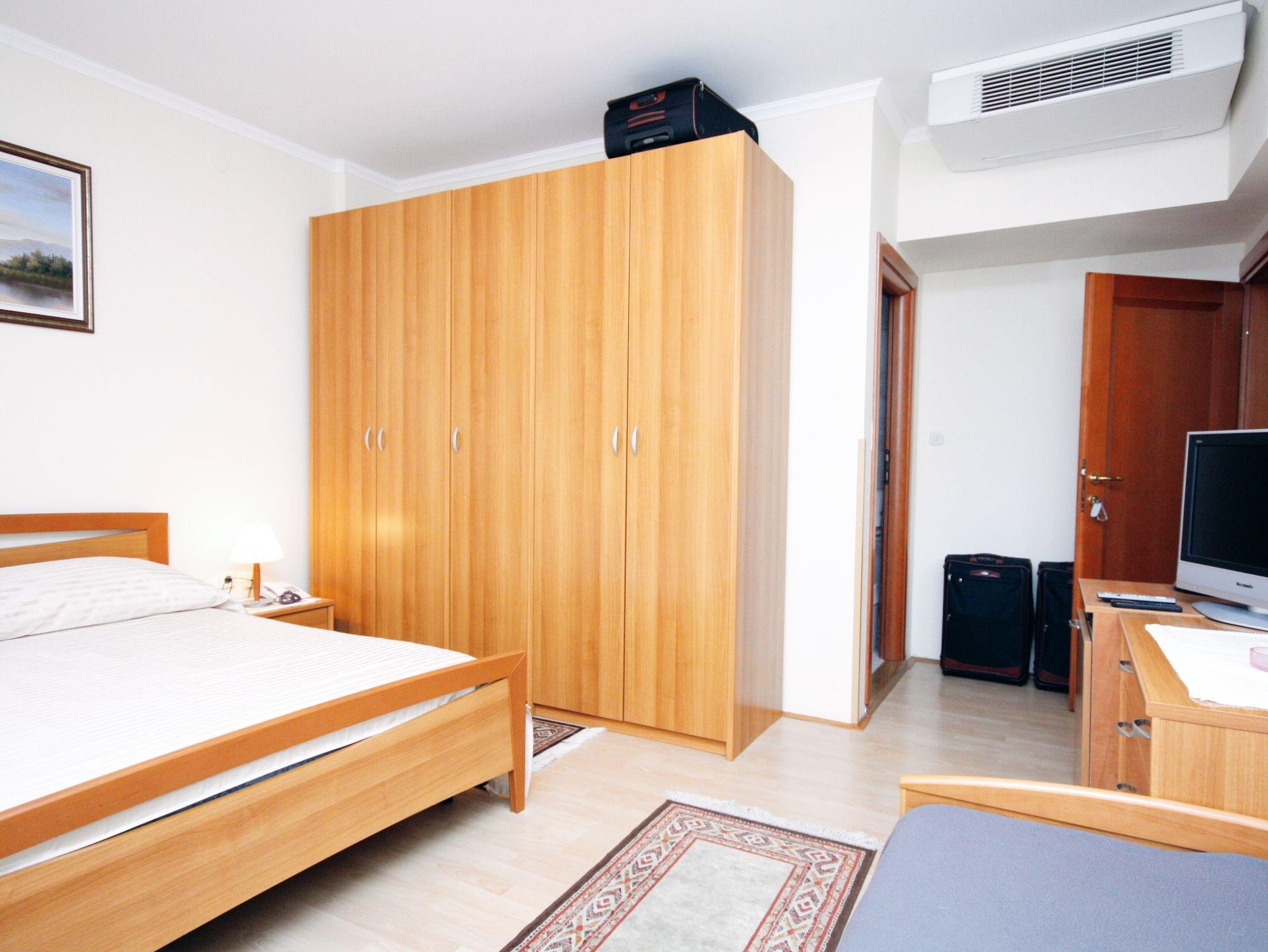 Zimmer bietet Platz für 3 Gäste. Die Betten sind in Schlafzimmern, die es 1 gibt, innerhalb einer Gesamtfläche von 20m2, angeordnet. Die Gäste haben einen eigenen Balkon zur Verfügung, auf der sie in warmen Sommernächten genießen können. Das Zimmer bietet Meerblick. Es ist erlaubt, Speisen auf dem Gemeinschafts-Grill vorzubereiten. In der Unterkunftseinheit besteht die Möglichkeit des Mitbringens von Haustieren gegen Aufpreis. Die reservierte Unterkunftseinheit ist ein Zimmer mit eigenem Badezimmer ohne die Möglichkeit der Nutzung einer Küche. IM PREIS INBEGRIFFEN: Kurtaxe, Endreinigung, Klimatisierung, Parkplatz, Garage, Internet, Kinderbett, Föhn. VERBINDLICHE ZUSÄTZLICHE KOSTEN: Aufzahlung für Kurzaufenthalte (prozentualer Zuschlag pro Nächtigungsanzahl: 30% - 1, 20% - 2, 10% - 3). UNVERBINDLICHE ZUSÄTZLICHE KOSTEN: Frühstück (15,00 €, 50% Nachlass für Kinder zwischen 4 und 12 Jahren, Kinder bis 4 Jahre sind frei.), Bootsanlegeplatz (6,00 € pro Nacht), Haustiere (10,00 € pro Nacht). Die Verfügbarkeit zusätzlicher Dienstleistungen in Ihrem reservierten Termin und die Preise derselben (falls nicht aufgeführt) müssen im Voraus überprüft werden. Zusätzliche Dienstleistungen die in der Zahlungsaufforderung nicht aufgeführt sind werden direkt beim Vermieter bezahlt, angenommen der Gast nutzt auch diese.