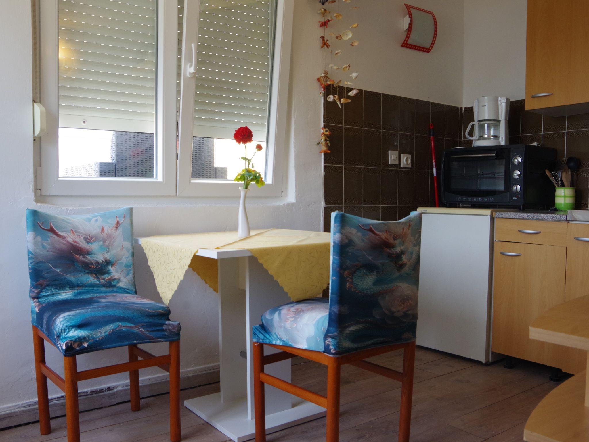 Ferienwohnung bietet Platz für 2 Gäste. Die Betten sind in Schlafzimmern, die es 1 gibt, innerhalb einer Gesamtfläche von 18m2, angeordnet. Die Gäste haben eine eigene Terrasse zur Verfügung, auf der sie in warmen Sommernächten genießen können. Das Apartment bietet Meerblick. Es ist erlaubt, Speisen auf dem Gemeinschafts-Grill vorzubereiten. Während ihres Aufenthalts können Gäste das gemeinsam zur Nutzung stehende Schwimmbad benutzen. In der Unterkunftseinheit besteht die Möglichkeit des Mitbringens von Haustieren gegen Aufpreis. IM PREIS INBEGRIFFEN: Kurtaxe, Endreinigung, Klimatisierung, Pool, Parkplatz, Internet, Kinderbett, Sonnenschirm. VERBINDLICHE ZUSÄTZLICHE KOSTEN: Aufzahlung für Kurzaufenthalte (prozentualer Zuschlag pro Nächtigungsanzahl: 30% - 1, 20% - 2, 10% - 3). UNVERBINDLICHE ZUSÄTZLICHE KOSTEN: Haustiere (10,00 € pro Nacht). Die Verfügbarkeit zusätzlicher Dienstleistungen in Ihrem reservierten Termin und die Preise derselben (falls nicht aufgeführt) müssen im Voraus überprüft werden. Zusätzliche Dienstleistungen die in der Zahlungsaufforderung nicht aufgeführt sind werden direkt beim Vermieter bezahlt, angenommen der Gast nutzt auch diese. Ermäßigung auf den Grundpreis: Gratistag 28=25 (bei einem Aufenthalt von 28 oder mehr Tagen erhalten Sie 3 kostenlose Tage für den Aufenthalt bis 31.12.26).