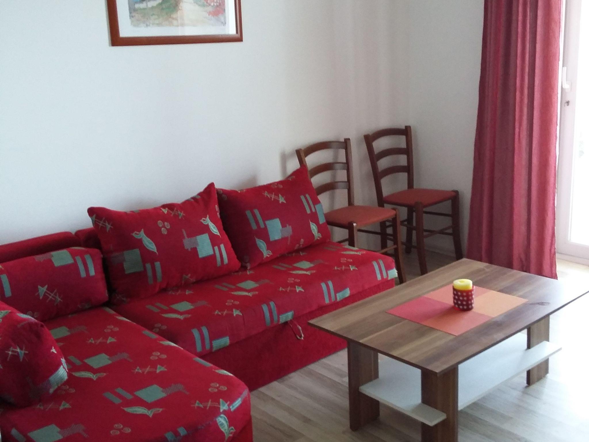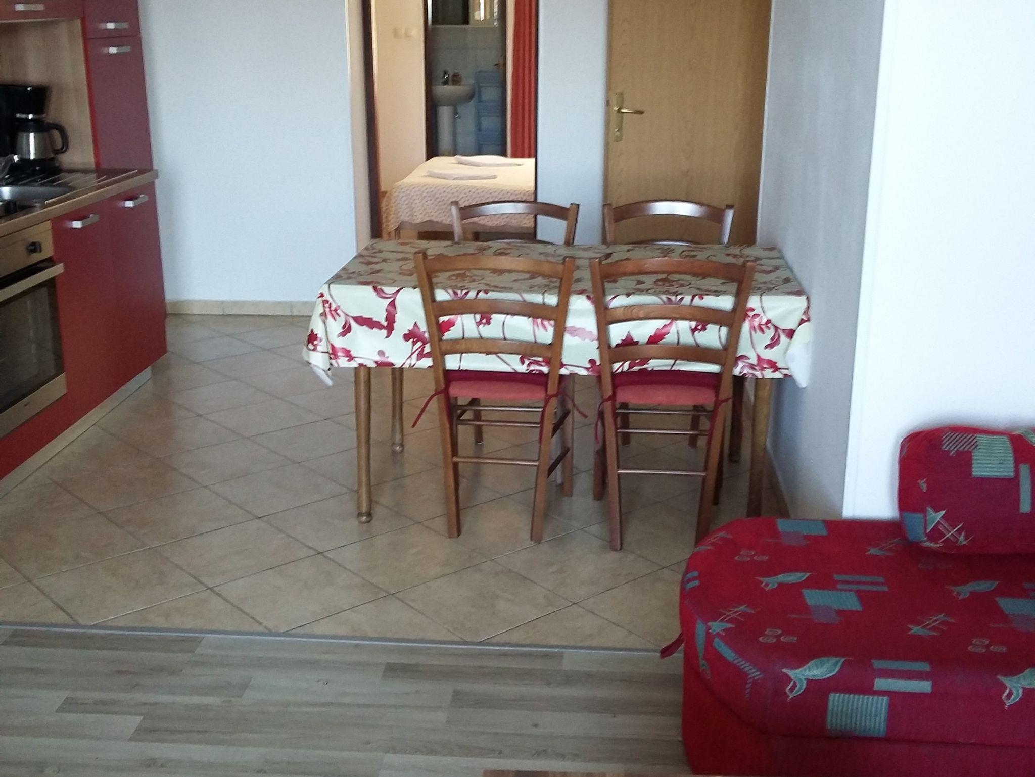 Ferienwohnung bietet Platz für 4 Gäste. Die Betten sind in Schlafzimmern, die es 1 gibt, und in Wohnzimmer, innerhalb einer Gesamtfläche von 39m2, angeordnet. Die Gäste haben eine eigene Terrasse zur Verfügung, auf der sie in warmen Sommernächten genießen können. Das Apartment bietet Meerblick. Es ist erlaubt, Speisen auf dem Gemeinschafts-Grill vorzubereiten. In der Unterkunftseinheit besteht die Möglichkeit des Mitbringens von Haustieren gegen Aufpreis. IM PREIS INBEGRIFFEN: Kurtaxe, Endreinigung, Klimatisierung, Parkplatz, Internet, Bügeleisen, Föhn, tragbarer Grill, Liegestühle. VERBINDLICHE ZUSÄTZLICHE KOSTEN: Aufzahlung für Kurzaufenthalte (prozentualer Zuschlag pro Nächtigungsanzahl: 30% - 1, 20% - 2, 10% - 3). UNVERBINDLICHE ZUSÄTZLICHE KOSTEN: Wäschewaschen (10,00 € Waschen), Boot (180,00 € pro Nacht), Bootsanlegeplatz (15,00 € pro Nacht), Haustiere (10,00 € pro Nacht), Zusatzbett (10,00 € pro Nacht). Die Verfügbarkeit zusätzlicher Dienstleistungen in Ihrem reservierten Termin und die Preise derselben (falls nicht aufgeführt) müssen im Voraus überprüft werden. Zusätzliche Dienstleistungen die in der Zahlungsaufforderung nicht aufgeführt sind werden direkt beim Vermieter bezahlt, angenommen der Gast nutzt auch diese.