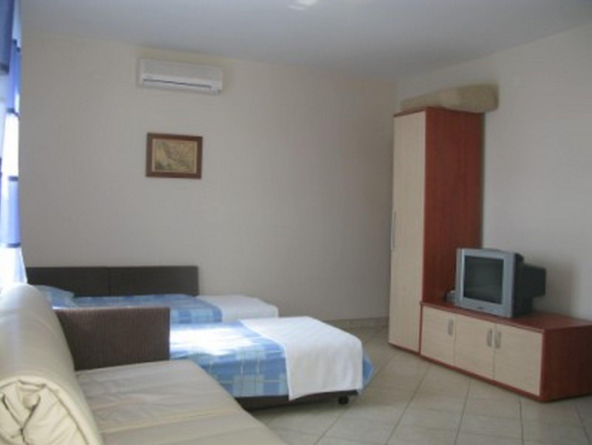 Studio bietet Platz für 4 Gäste. Die Betten sind in Schlafzimmern, die es 1 gibt, innerhalb einer Gesamtfläche von 22m2, angeordnet. Die Gäste haben eine eigene Terrasse zur Verfügung, auf der sie in warmen Sommernächten genießen können. Das Studio-Apartment bietet Meerblick. Es ist erlaubt, Speisen auf dem Gemeinschafts-Grill vorzubereiten. In der Unterkunftseinheit besteht die Möglichkeit des Mitbringens von Haustieren gegen Aufpreis. IM PREIS INBEGRIFFEN: Kurtaxe, Endreinigung, Klimatisierung, Parkplatz, Internet, Kinderbett, Bügeleisen, Bügelbrett, Föhn. VERBINDLICHE ZUSÄTZLICHE KOSTEN: Aufzahlung für Kurzaufenthalte (prozentualer Zuschlag pro Nächtigungsanzahl: 30% - 1, 20% - 2, 10% - 3). UNVERBINDLICHE ZUSÄTZLICHE KOSTEN: Bootsanlegeplatz (10,00 € pro Nacht), Haustiere (10,00 € pro Nacht), Fahrrad (15,00 € täglich (pro Stück)). Die Verfügbarkeit zusätzlicher Dienstleistungen in Ihrem reservierten Termin und die Preise derselben (falls nicht aufgeführt) müssen im Voraus überprüft werden. Zusätzliche Dienstleistungen die in der Zahlungsaufforderung nicht aufgeführt sind werden direkt beim Vermieter bezahlt, angenommen der Gast nutzt auch diese.