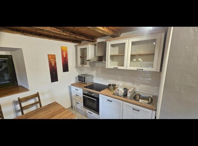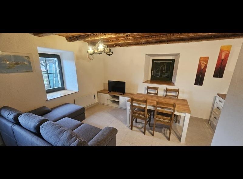 Haus ist mit zwei Etagen. Im Obergeschoss sind zwei große, schöne Schlafzimmer, jedes mit Doppelbett und ein Einzelbett. Unten befindet sich eine voll ausgestattete Küche mit Wohnbereich und Standortwahl statt conected. Hier ist auch ein Bad mit Dusche. Küche und Wohnzimmer ist im rustikalen Stil mit dicken Mauern etwa einen Meter, die Temperatur sehr angeneh m zu halten dekoriert. In der vor dem Haus gibt es große Terasse mit Meerblick, Tisch und Stühlen unter natürlichen Schatten. Dieses Haus ist ein Teil des großen Grundstück, umgeben von Olivenbäumen und anderen Bäumen. Der Stein- und Betonstrand ist nur 300 Meter vom Haus entfernt. Und der erste Sandstrand liegt zwei Kilometer entfernt. In fünf Kilometern erreichen Sie die Altstadt von Rab. Ein Einkaufsmarkt und eine Bäckerei sind nur 200 Meter entfernt.